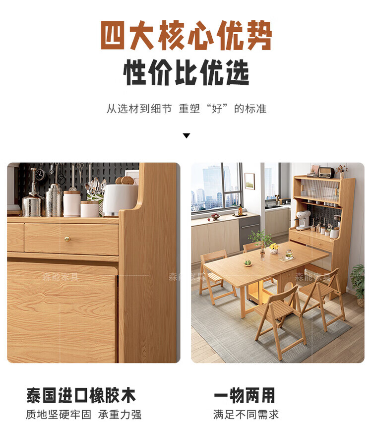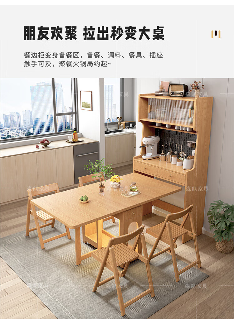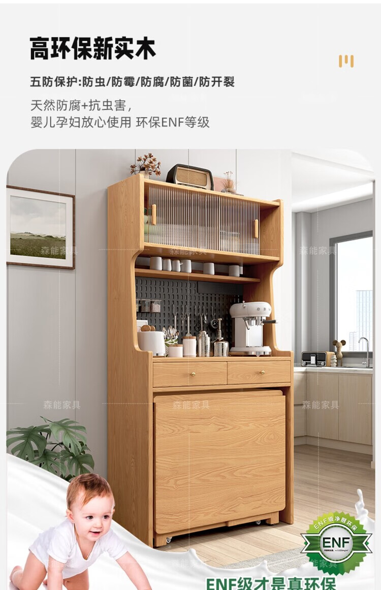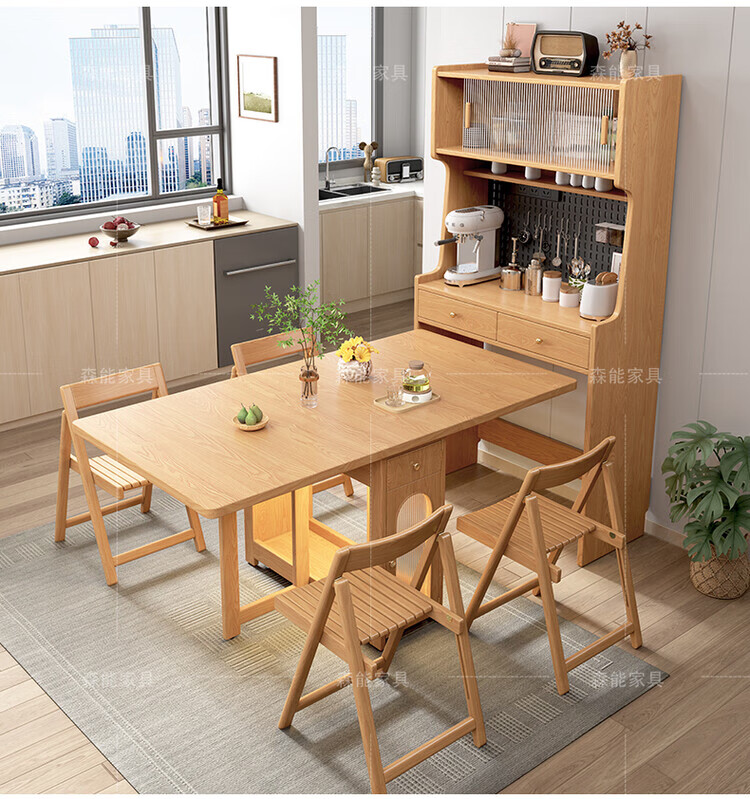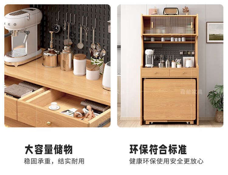 Yunbin Guangdong Foshan sideboard solid wood sideboard dining table integrated high cabinet small apartment household storage cabinet foldable solid wood color 87cm all solid wood sideboard