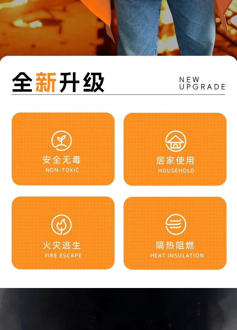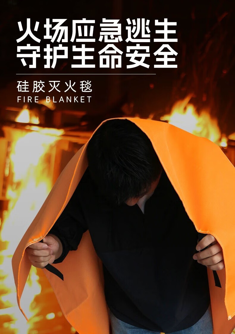 Household silicone thickened fire blanket kitchen fire certified fiberglass fire blanket orange fire escape flame retardant three layers of thickened protective silicone 1 meter (boxed)