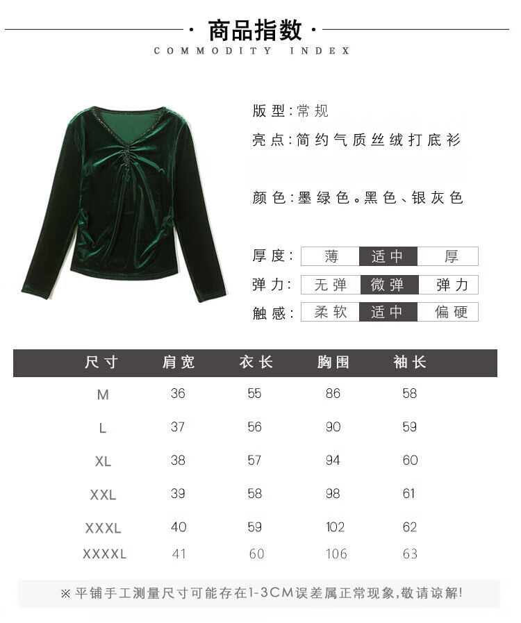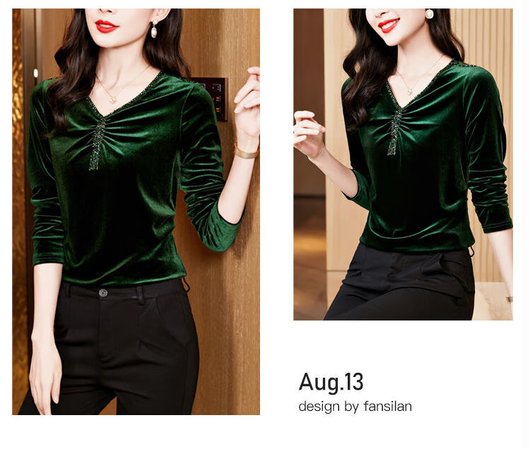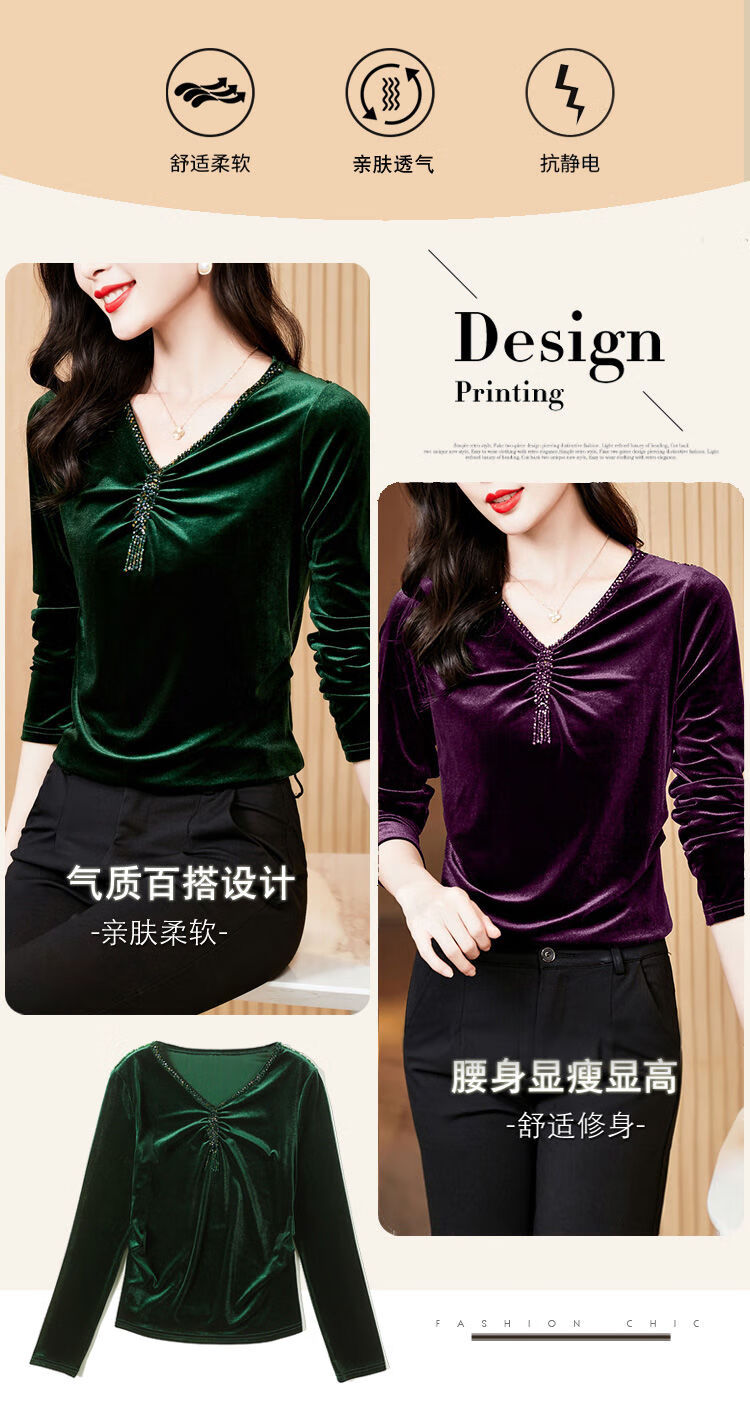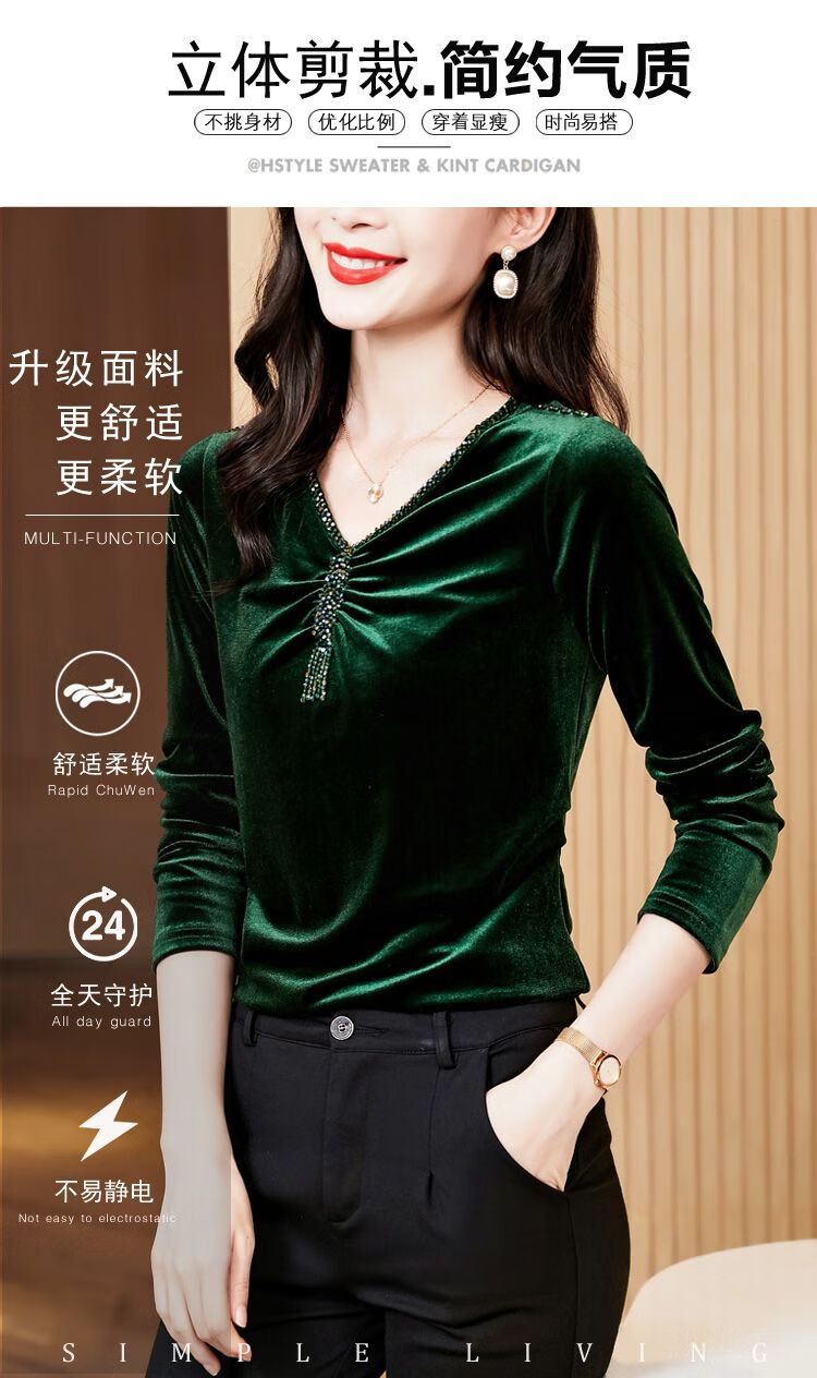Pierre Cardin velvet women's top with bottoming shirt spring and autumn new high-end rich woman low-necked shirt fashionable long-sleeved top for women black regular M recommended 85-100 pounds