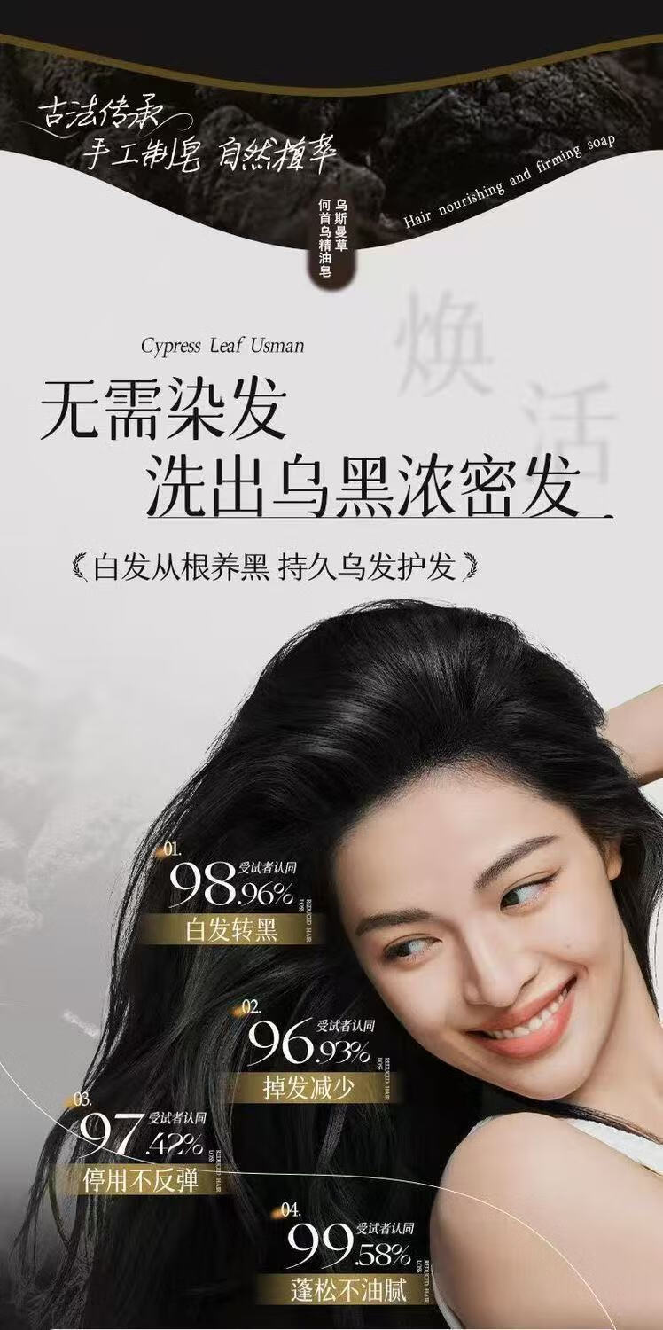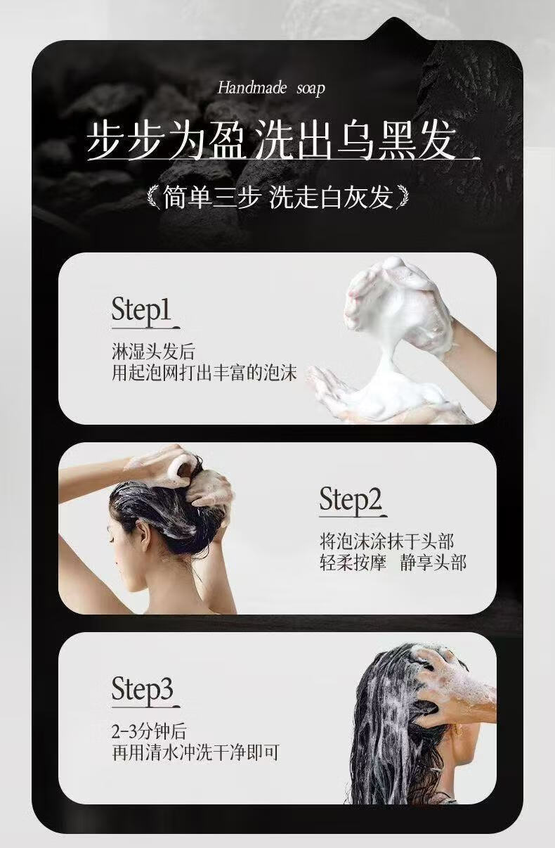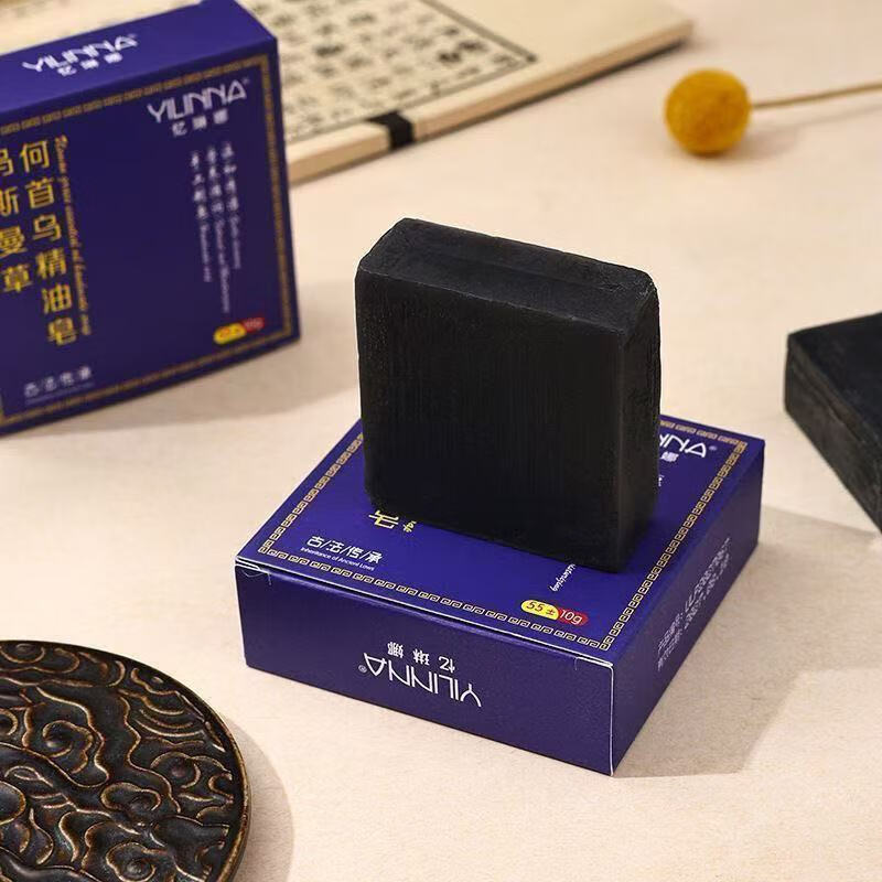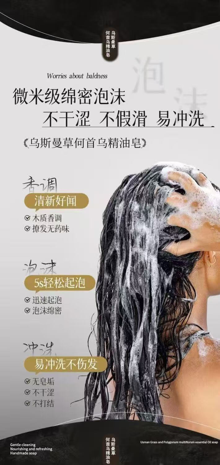 New Usman grass Polygonum multiflorum shampoo essential oil soap refreshing oil control cleansing and dandruff nourishing black hair shampoo soap Yilina (purple shell black soap Usman grass Polygonum multiflorum essential oil soap 3 boxes