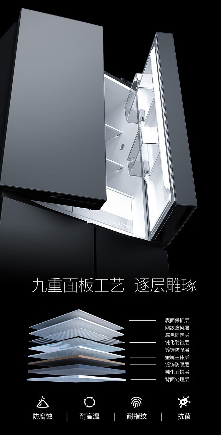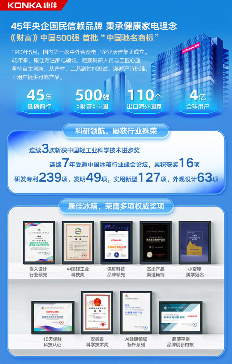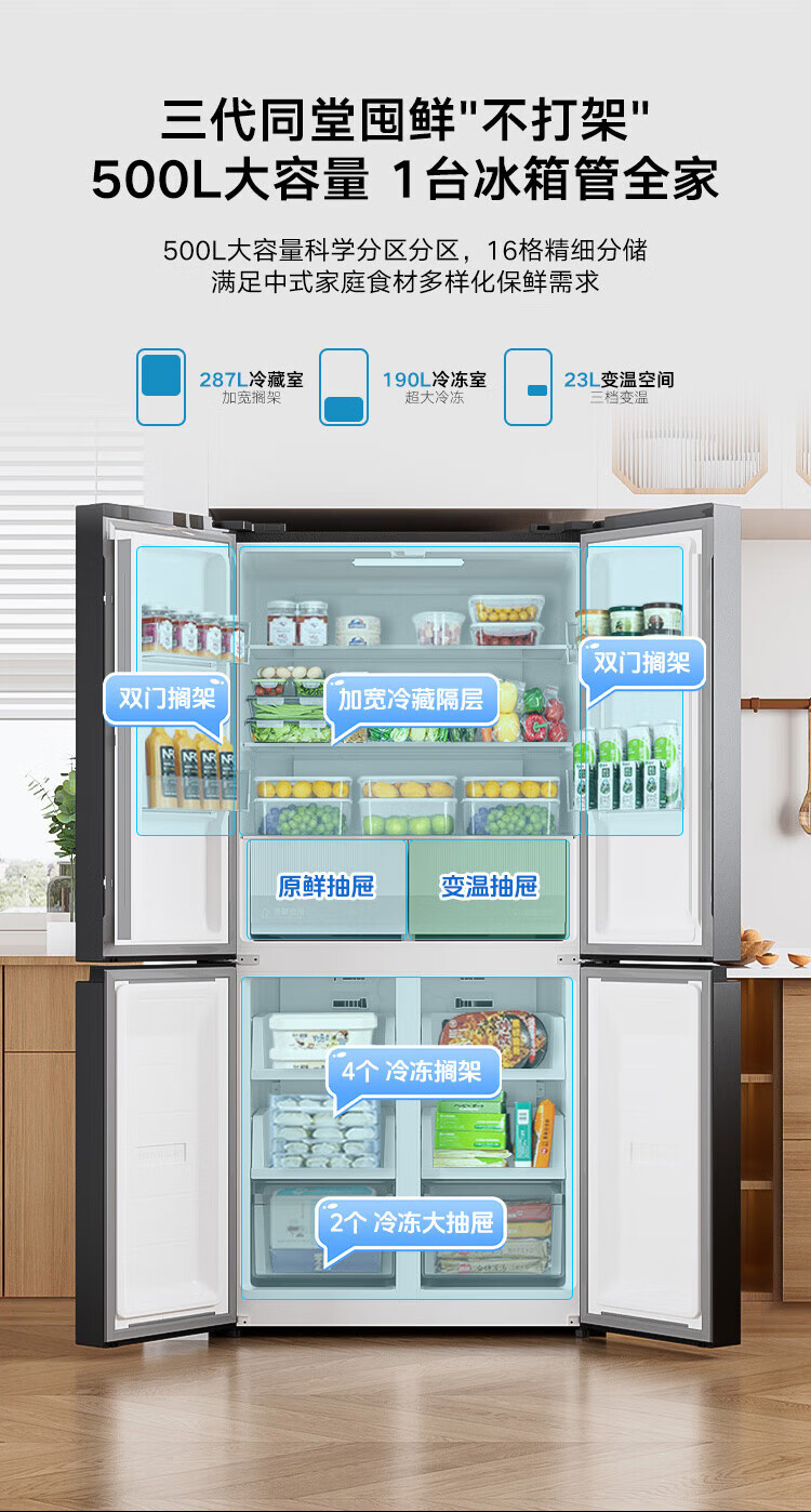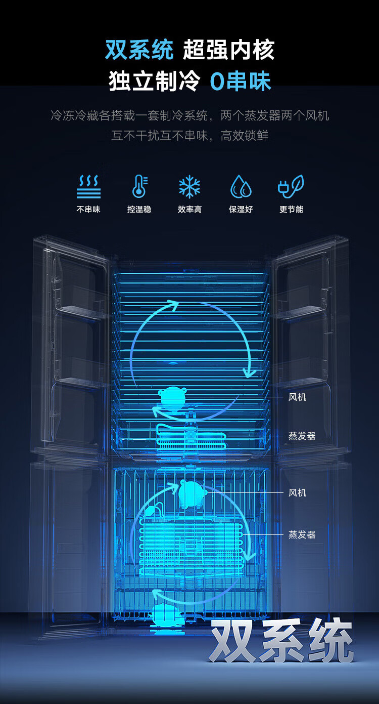 Konka Refrigerator 500L Dual System Dual Cycle Cross Door Refrigerator Four Door Dual Frequency Conversion Level 1 Energy Efficiency Energy Saving Air Cooling Frost-Free Antibacterial Home Living Room Smart Refrigerator 500L Dual System No Odor
