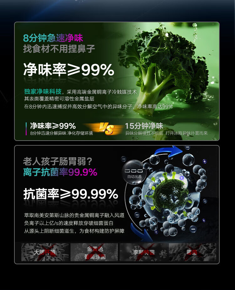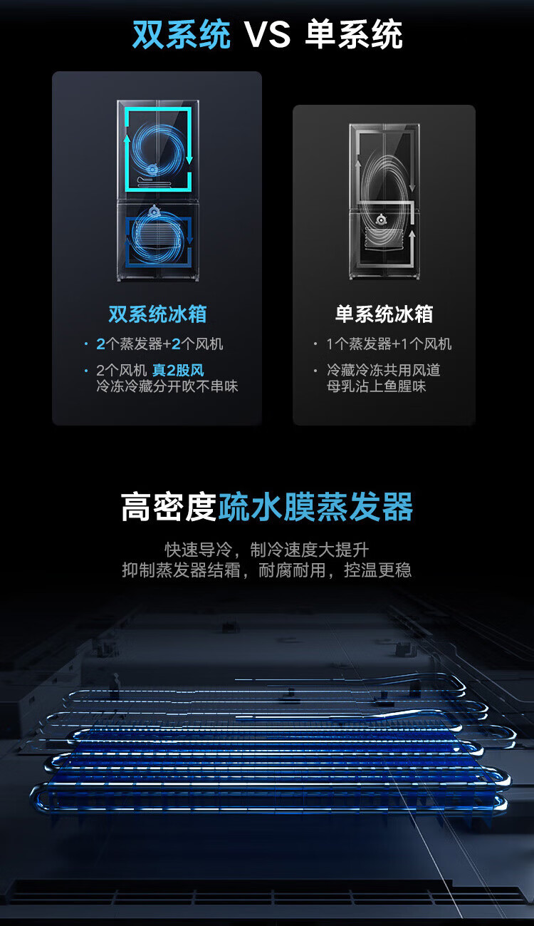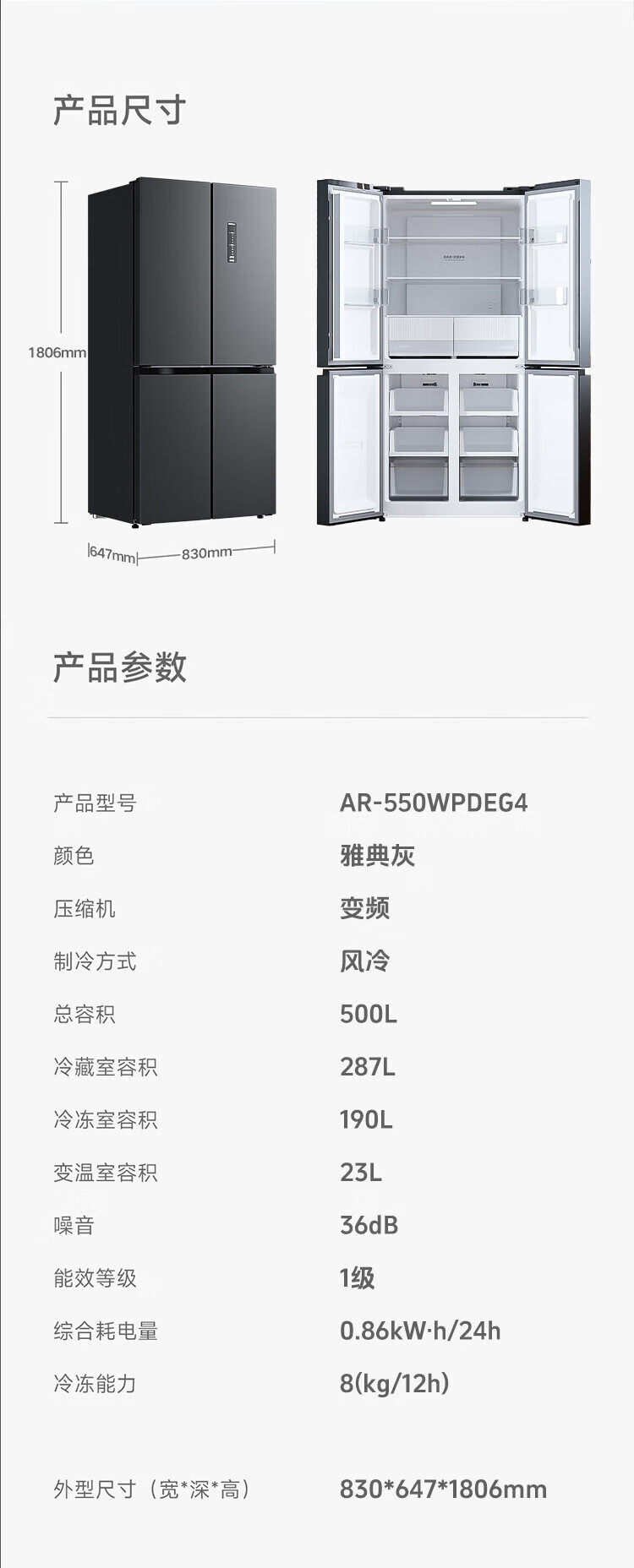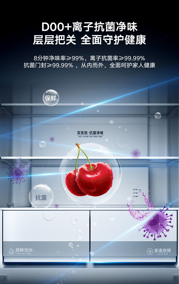 Konka Refrigerator 500L Dual System Dual Cycle Cross Door Refrigerator Four Door Dual Frequency Conversion Level 1 Energy Efficiency Energy Saving Air Cooling Frost-Free Antibacterial Home Living Room Smart Refrigerator 500L Dual System No Odor