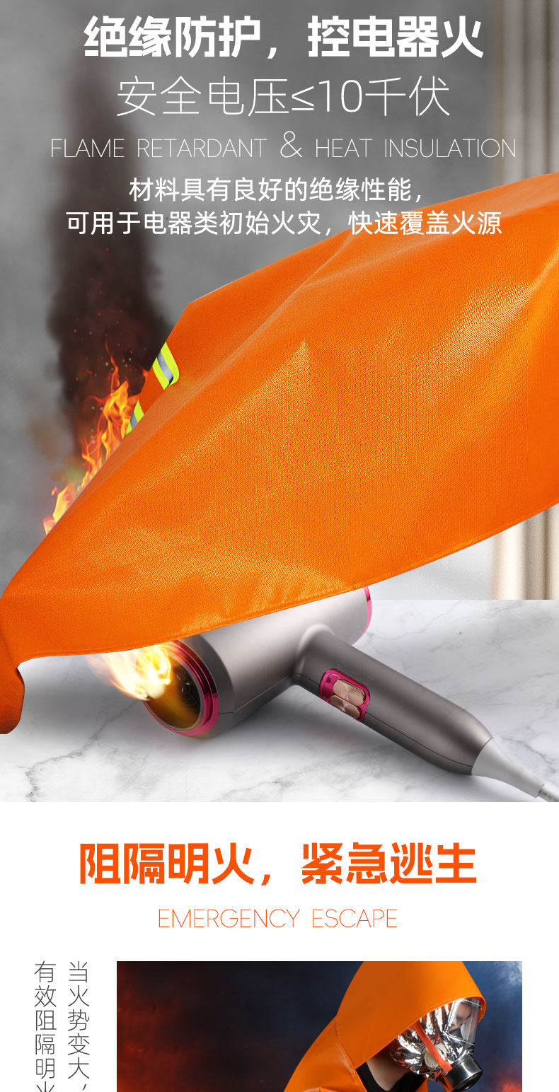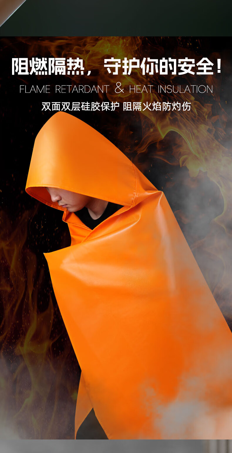 Fireproof cloak cape household high temperature resistant double layer silicone emergency fire blanket flame retardant and heat insulation protective escape set children's type thickened nano cape heat insulation and flame retardant