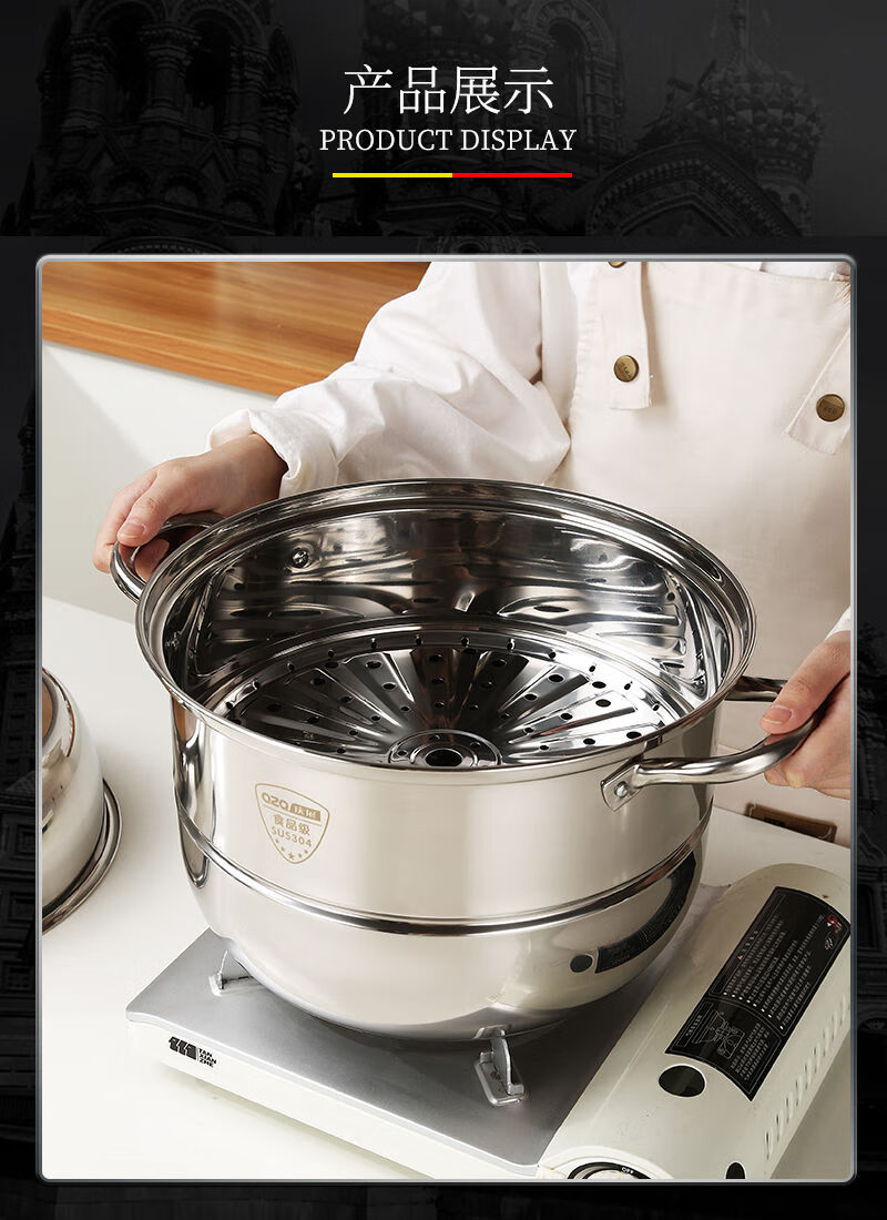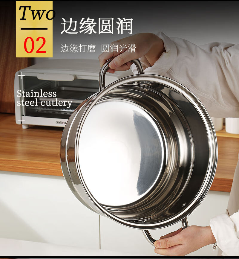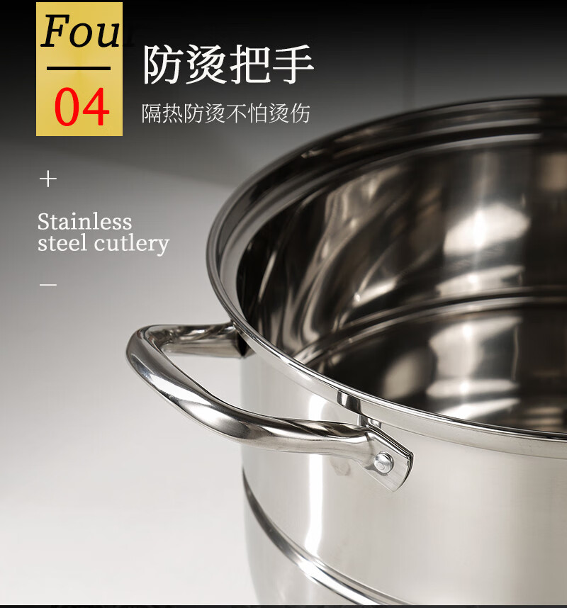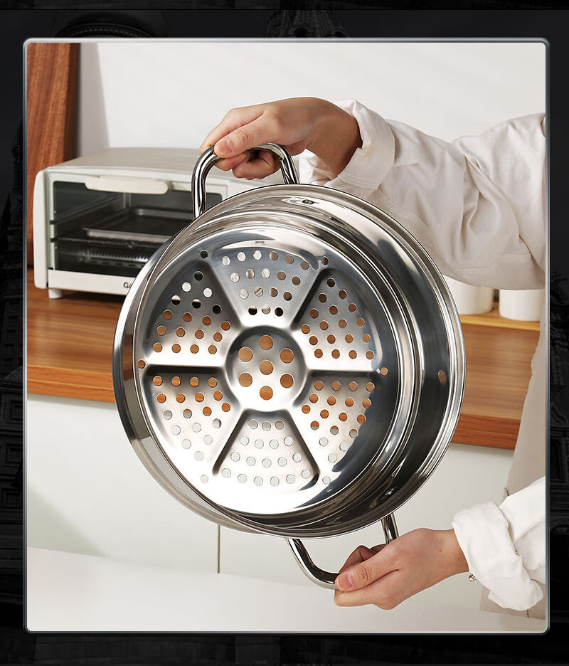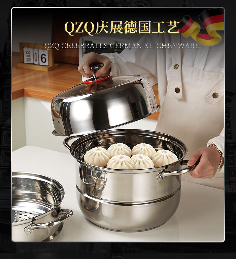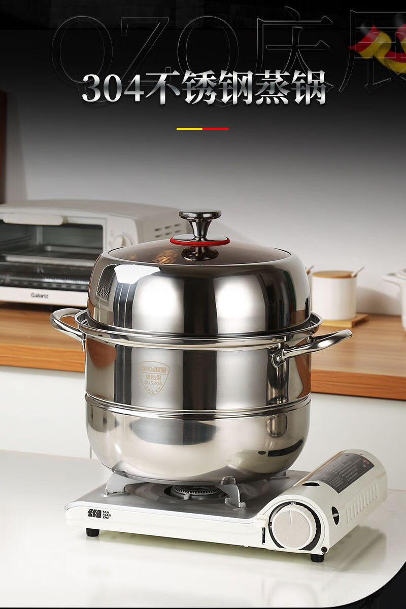 Stainless steel three-layer steamer soup pot multi-layer steamer large capacity and heightened with steamer induction cooker universal Qingzhan/304 three-layer composite bottom steamer C027 30cm