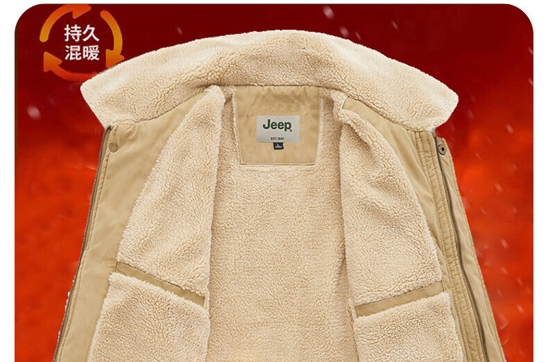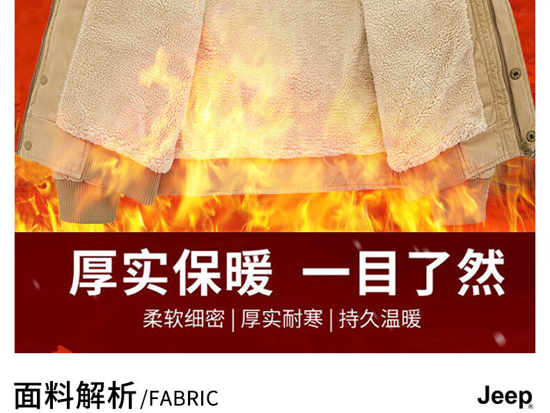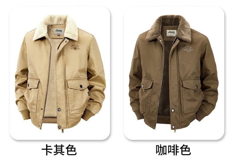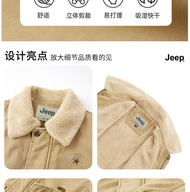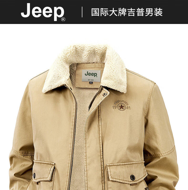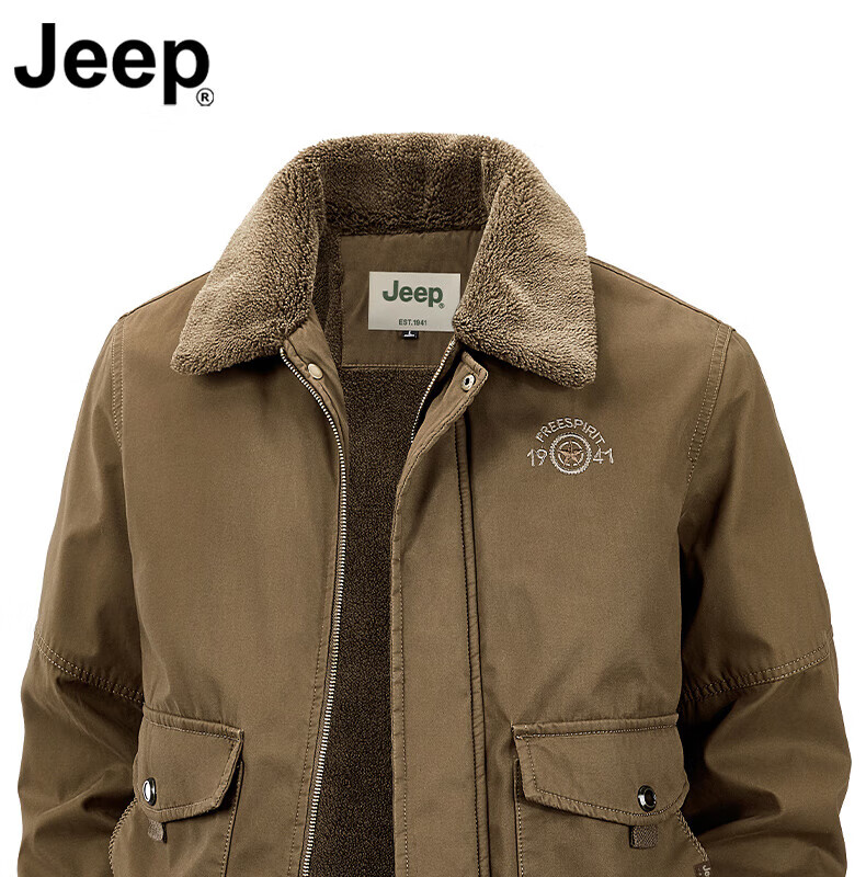 JEEP American genuine high-end pure cotton sherpa jacket men's winter lapel workwear warm and cold-proof cotton coat spring and autumn brown-100% cotton plus velvet official authentic 2XL suitable for about 160 pounds