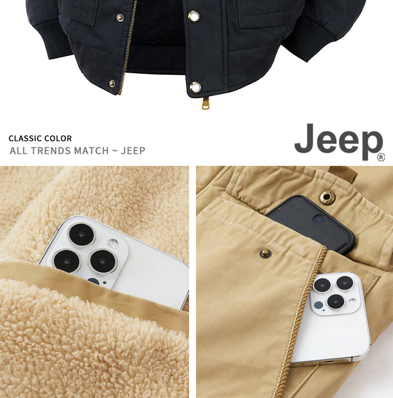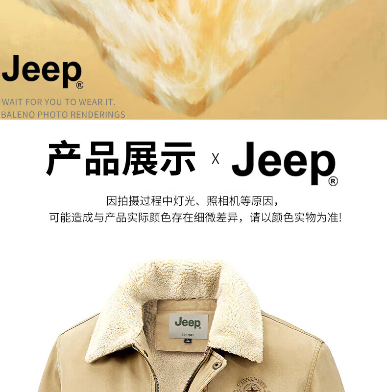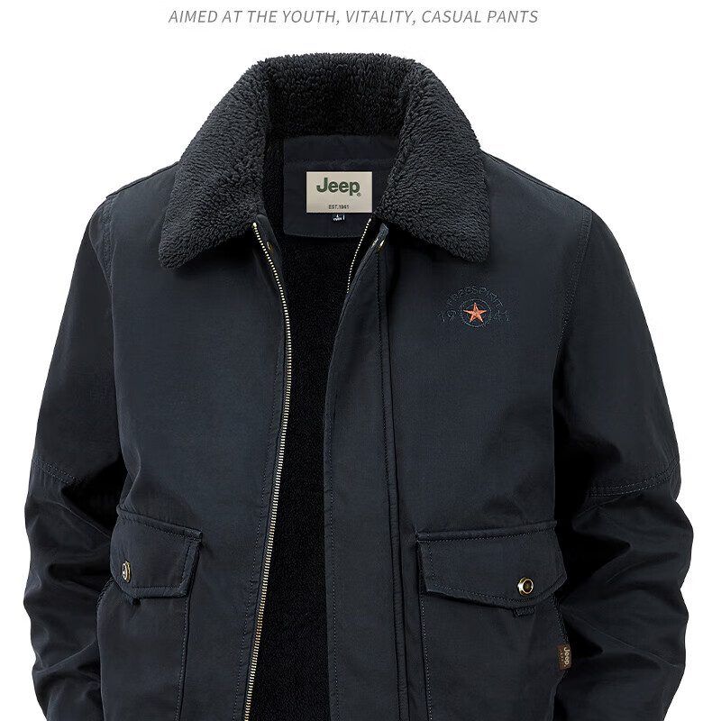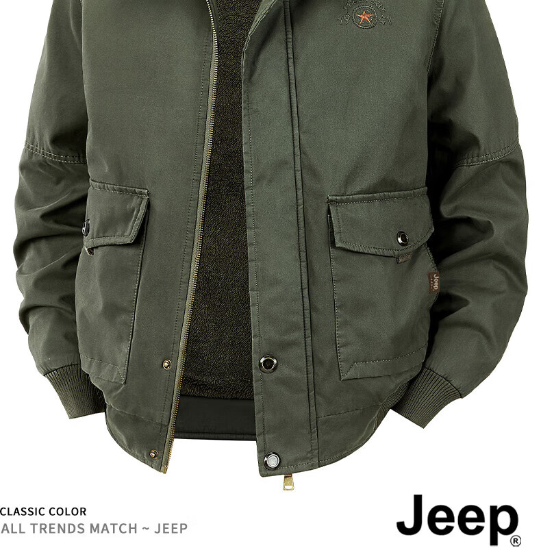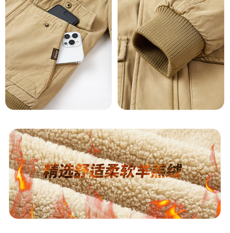 JEEP American genuine high-end pure cotton sherpa jacket men's winter lapel workwear warm and cold-proof cotton coat spring and autumn brown-100% cotton plus velvet official authentic 2XL suitable for about 160 pounds