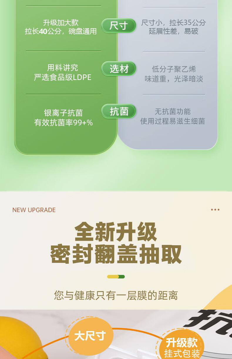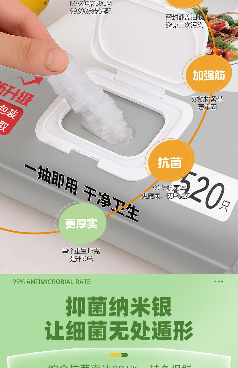 Antibacterial cling film set hanging household food disposable fresh-keeping dust cover refrigerator anti-odor special cover hanging extraction 1560 pieces free hook