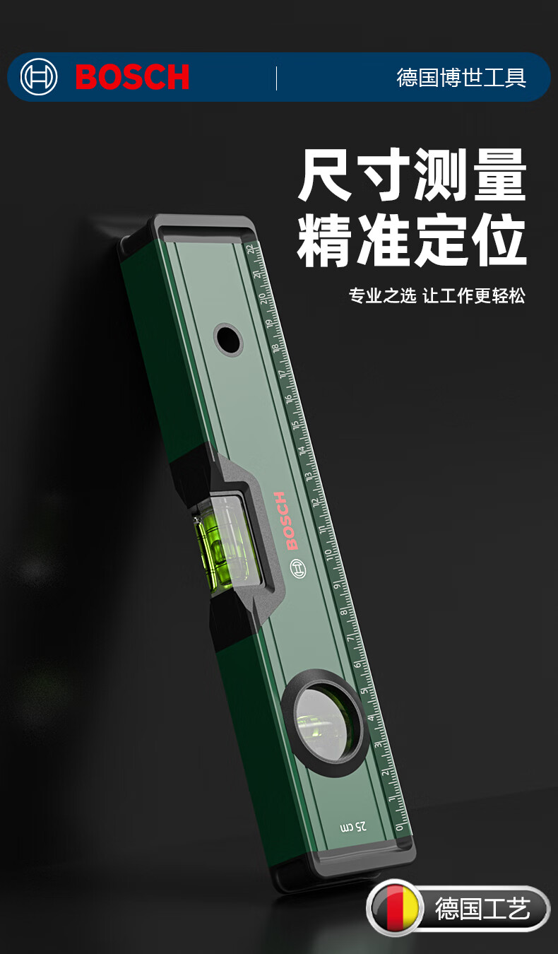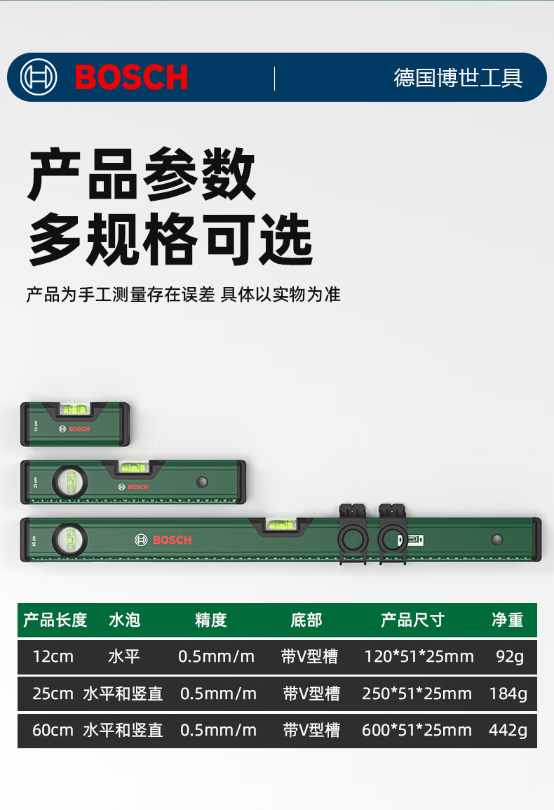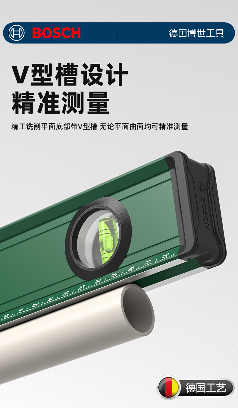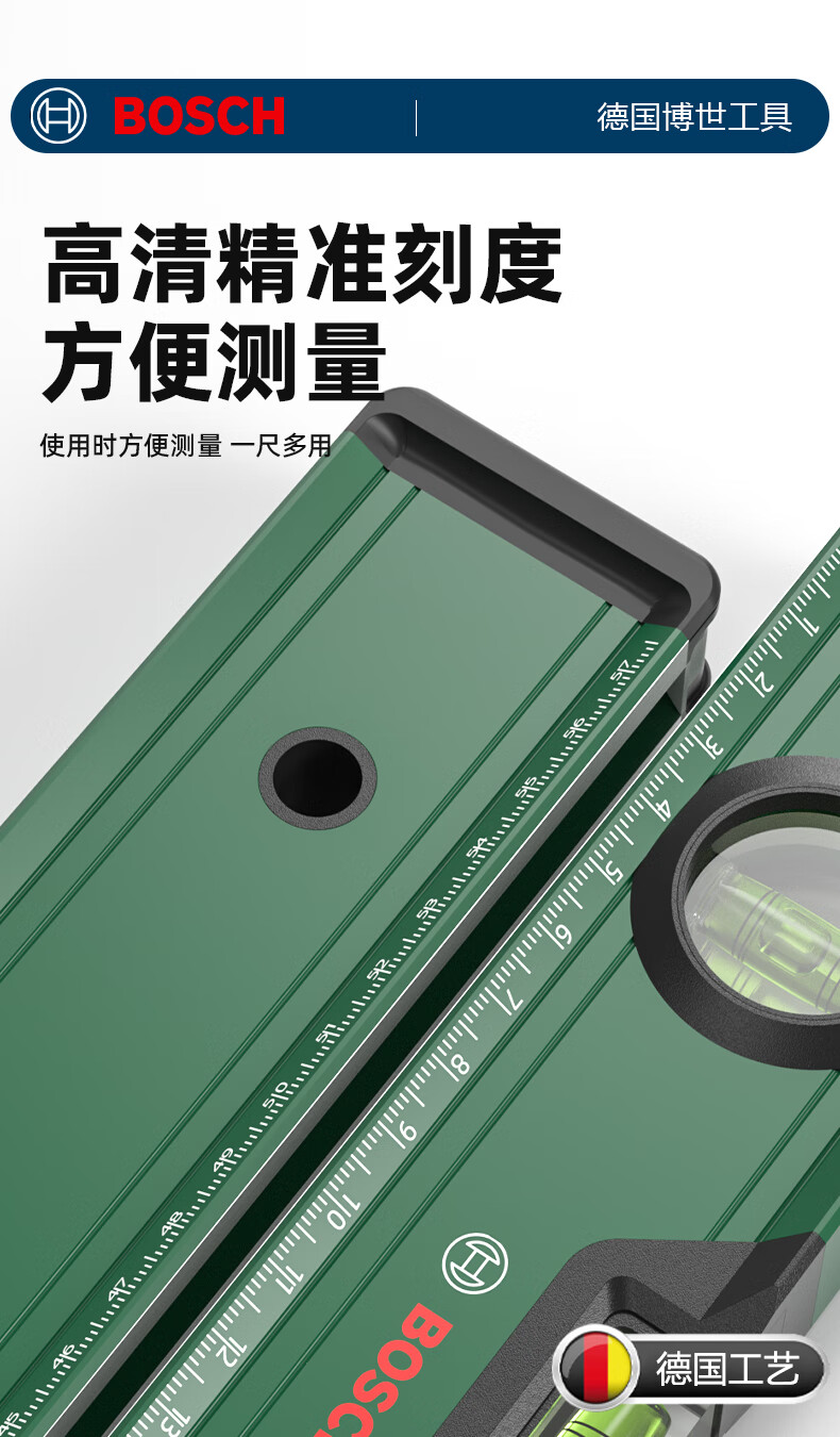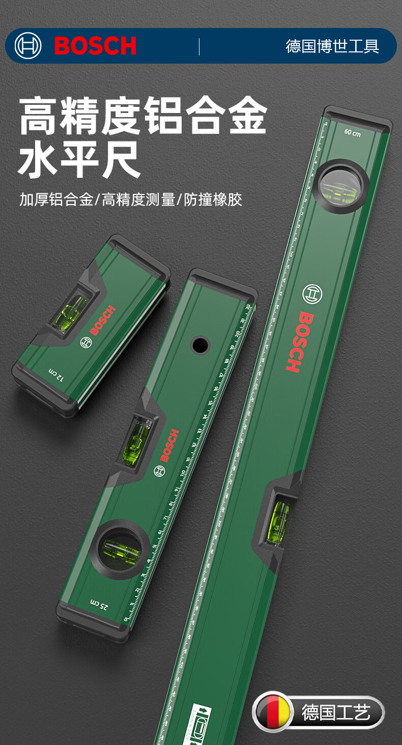 Bosch (BOSCH) spirit level high-precision aluminum alloy multi-functional flat water ruler measuring ruler tilt angle balancer with V-shaped groove aluminum alloy spirit level 12cm