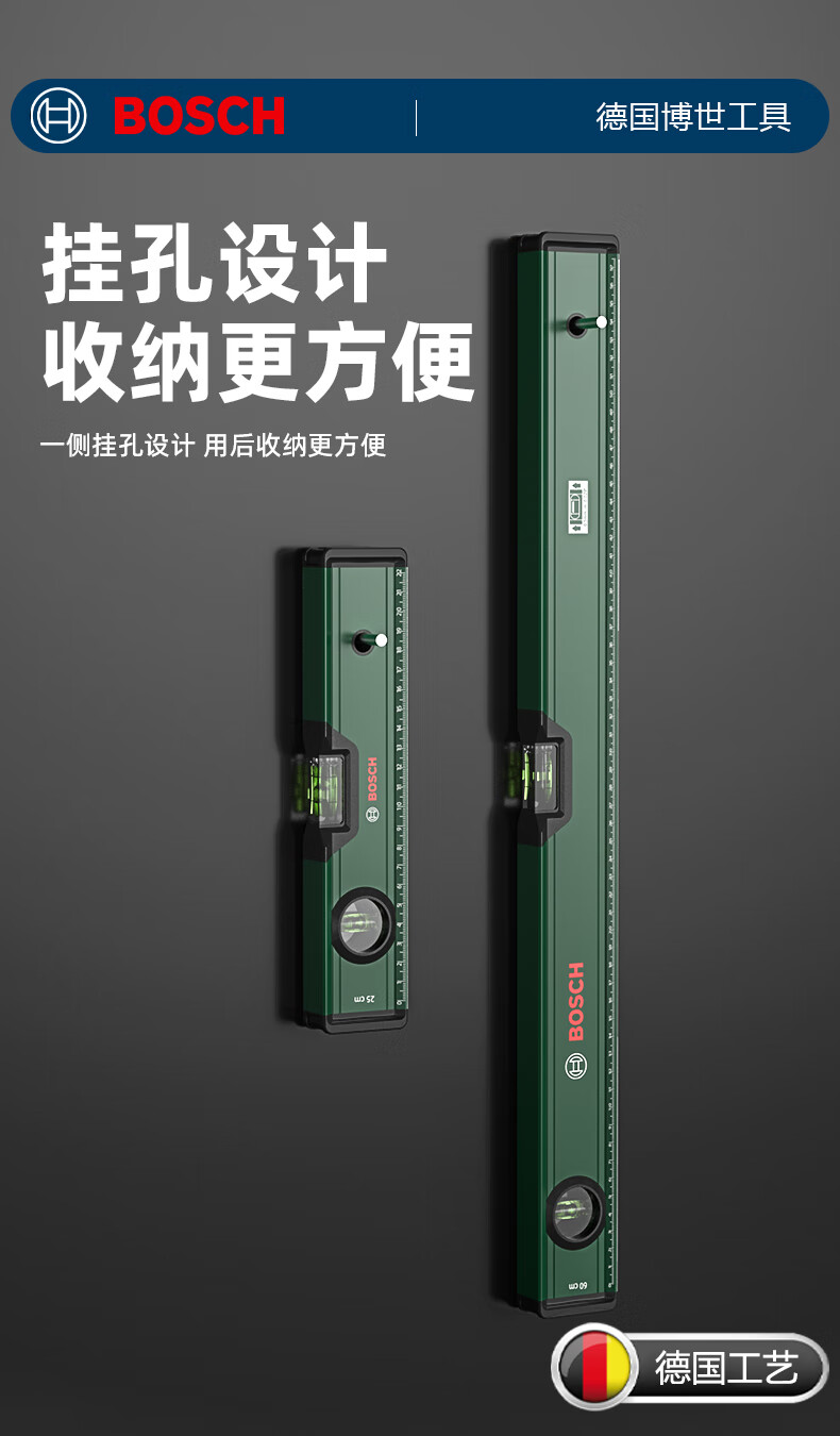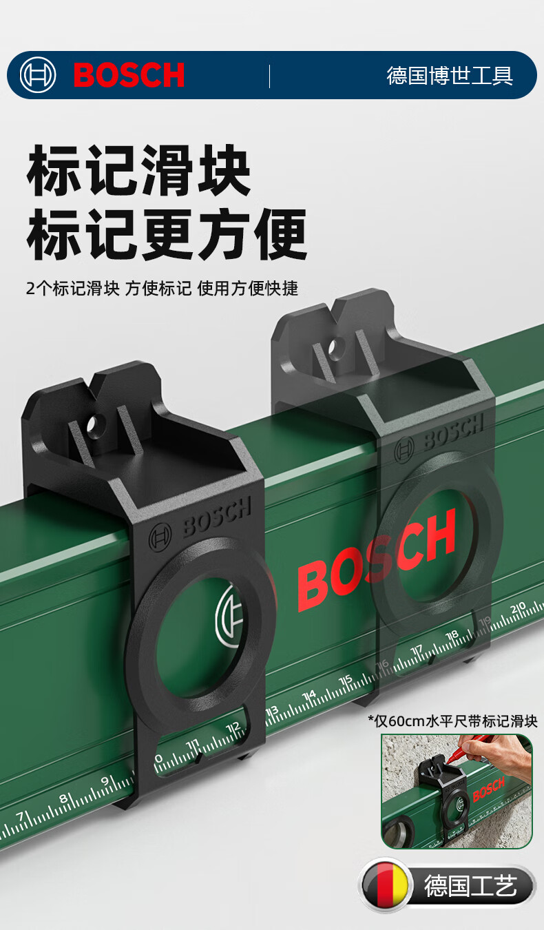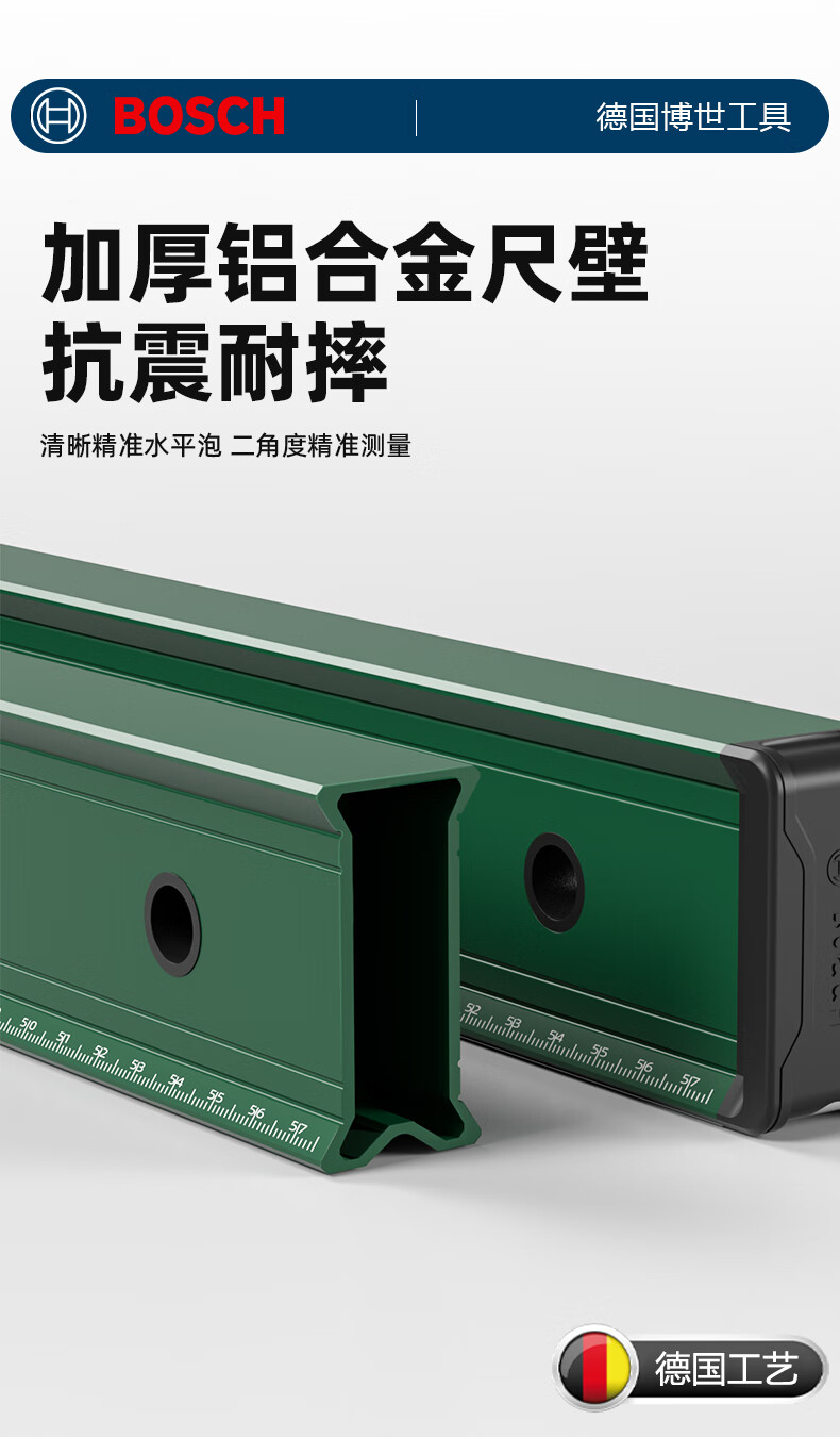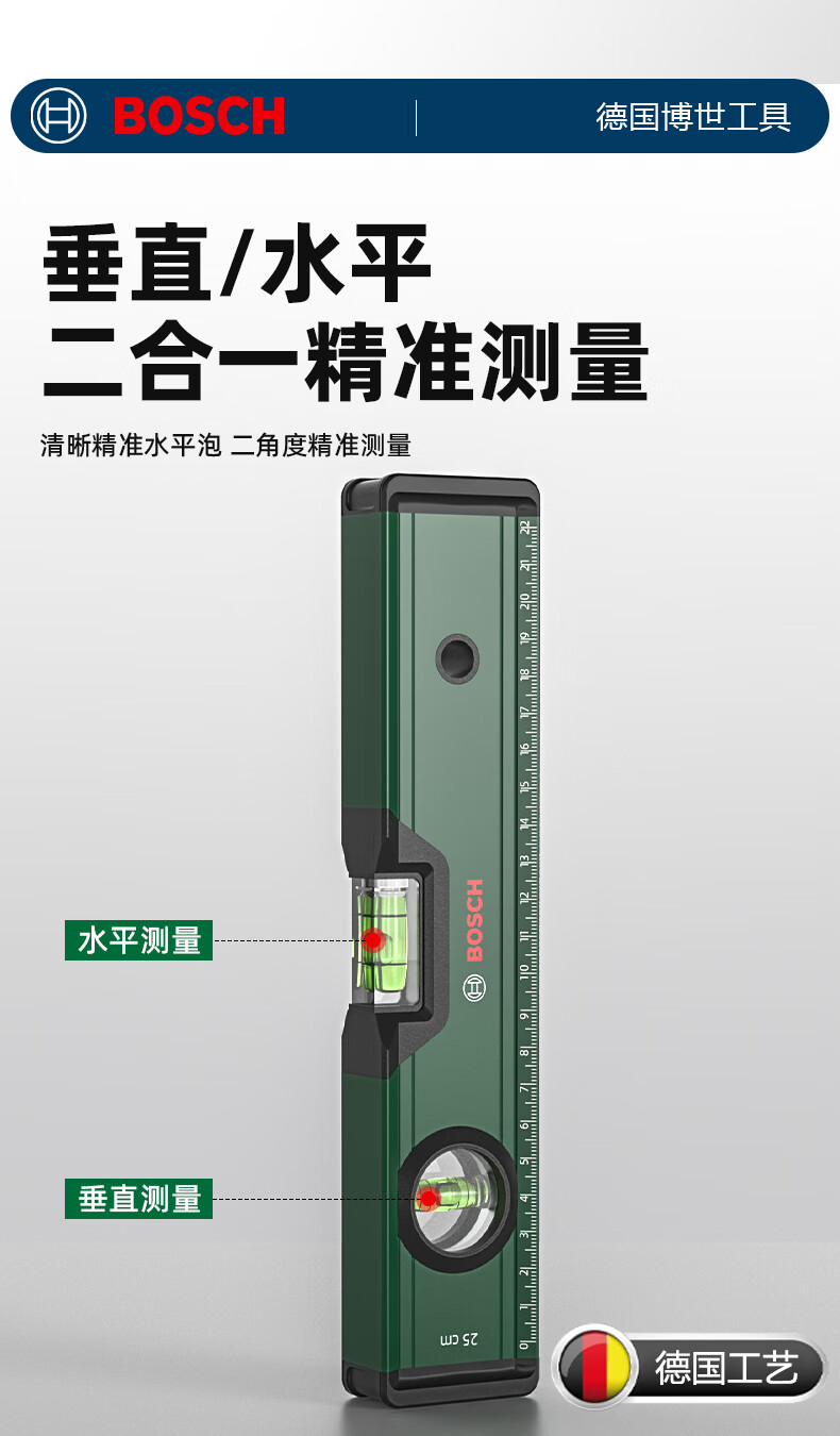Bosch (BOSCH) spirit level high-precision aluminum alloy multi-functional flat water ruler measuring ruler tilt angle balancer with V-shaped groove aluminum alloy spirit level 12cm
