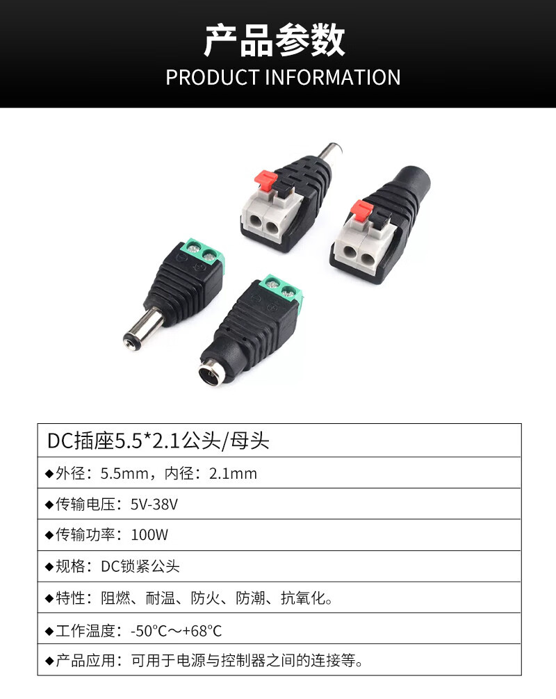DC DC power plug 5.5*2.1MM welding-free power adapter terminal male and female surveillance camera DC socket 5.5*2.1 welding-free male connector