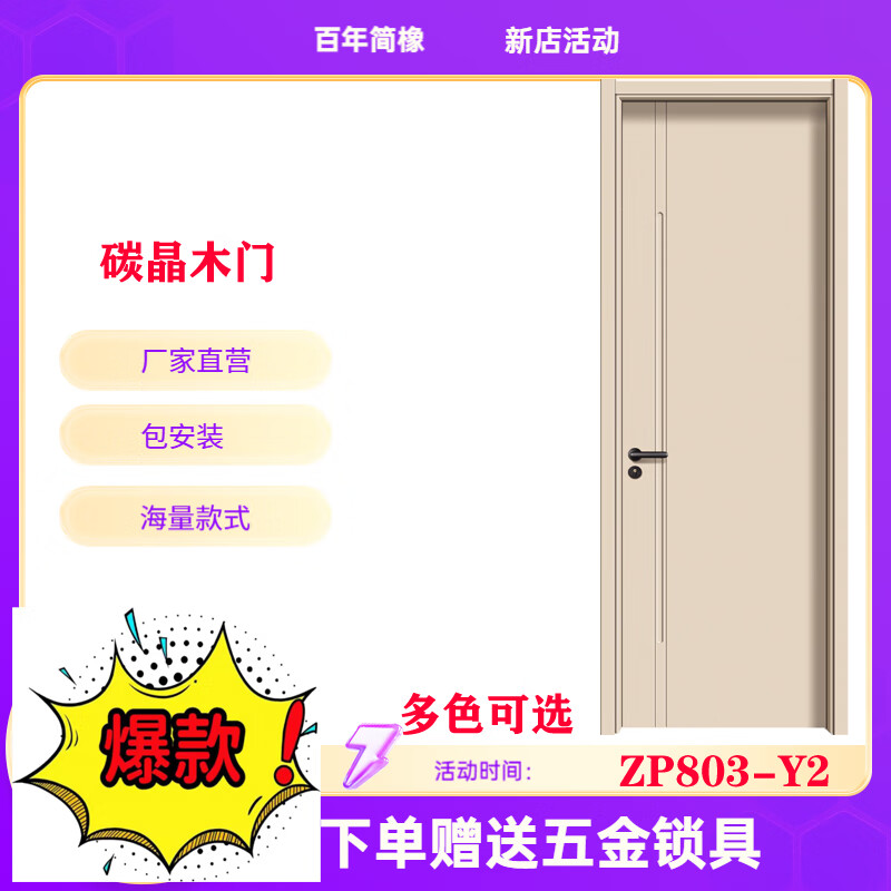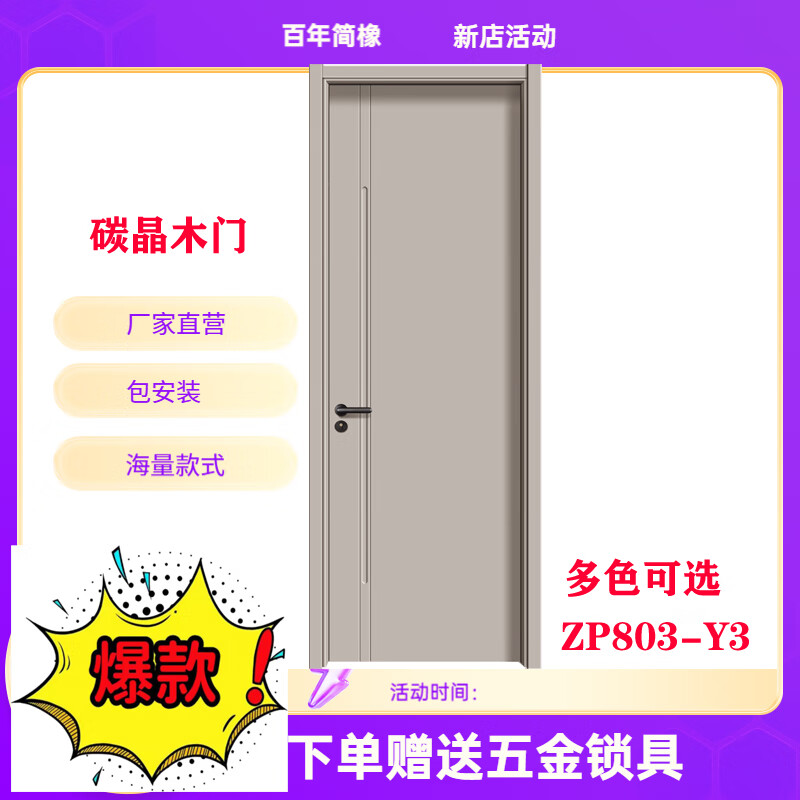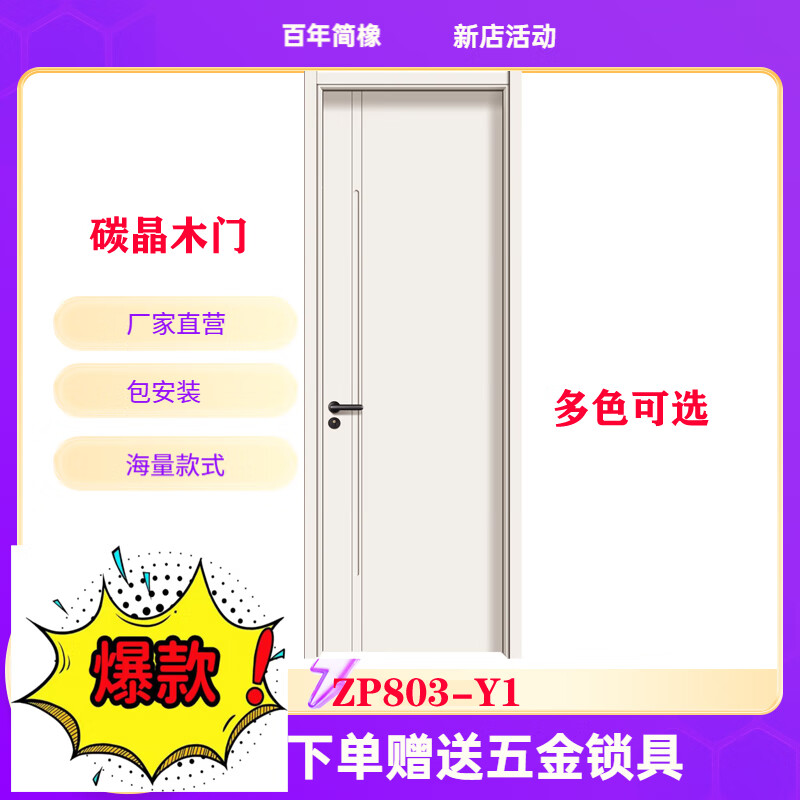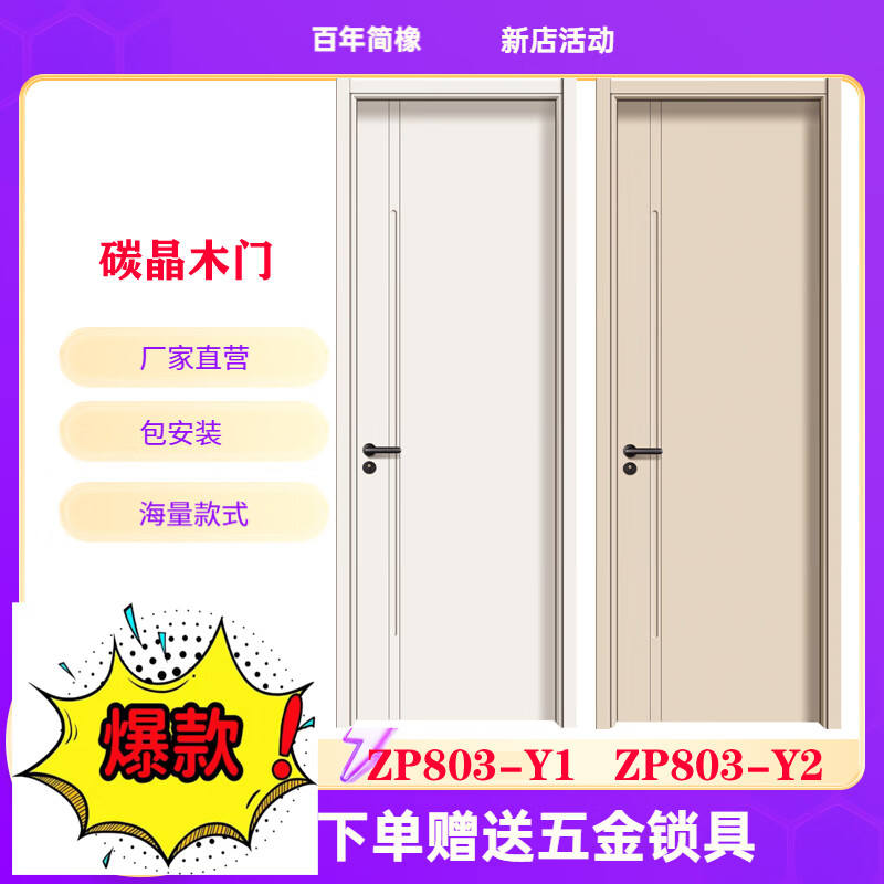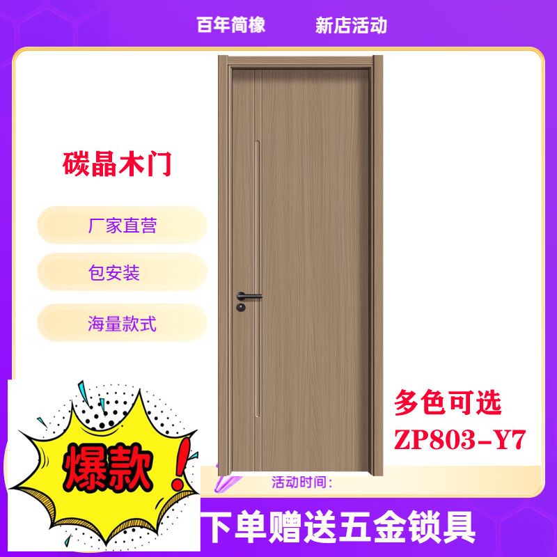 Century-old simple oak paint-free door carbon crystal door modern simple solid wood composite door set Zhenpin No. 7 803