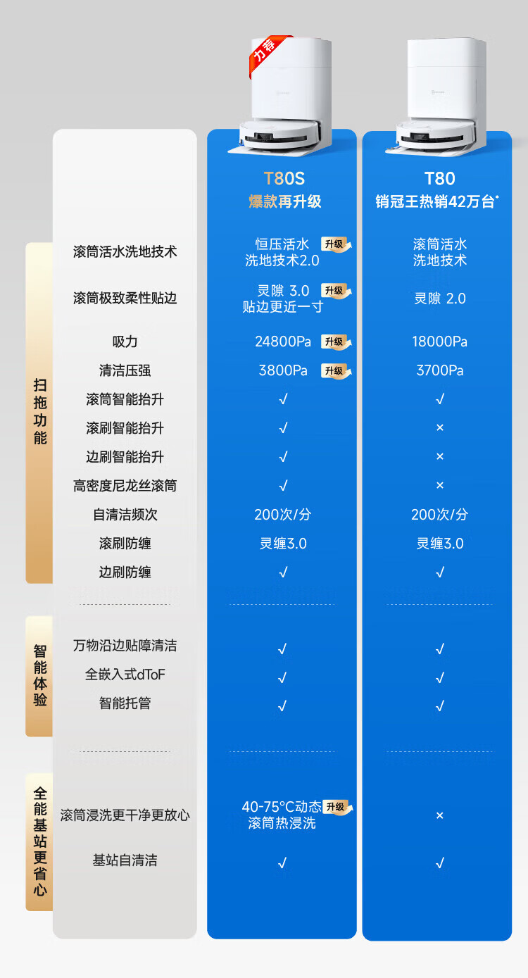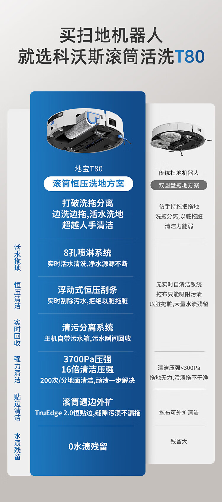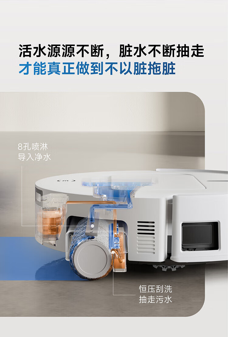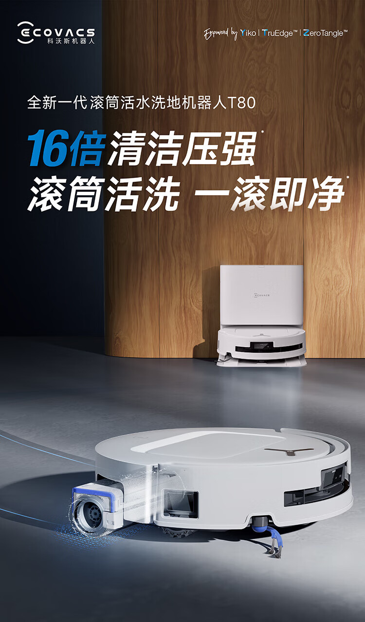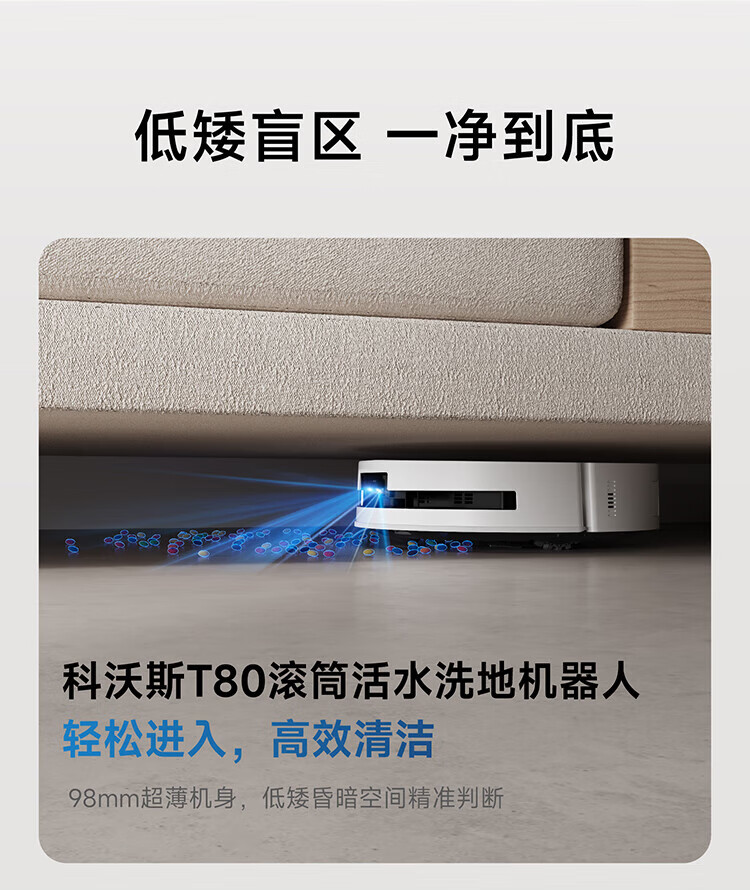 Ecovacs T80/T80S sweeping robot, sweeping, mopping, washing and drying, all-in-one automatic cleaning roller floor scrubbing robot, fully automatic water tank, upper and lower water version T80S upper and lower water version