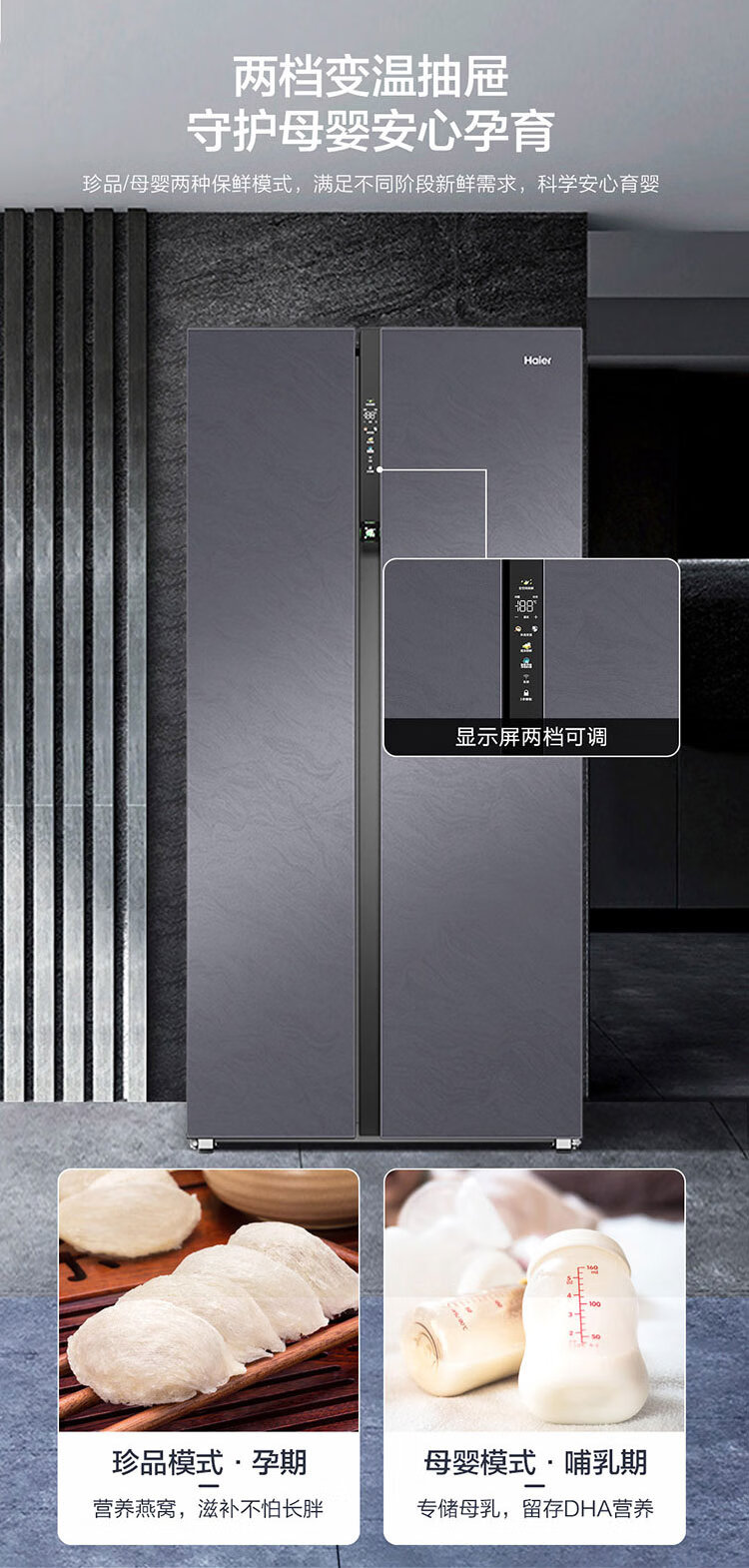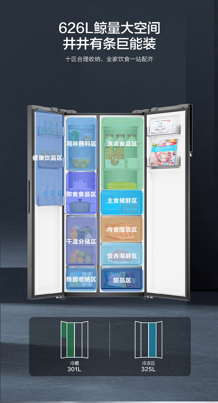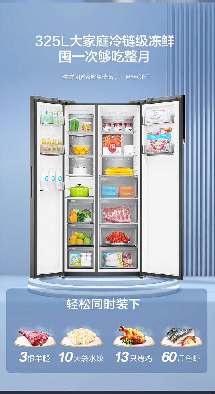 Haier 626 liter two-door 325 liter large freezer full-space fresh-keeping large capacity dual-frequency first-class energy-efficiency household energy-saving refrigerator full-space fresh-keeping 325 liter large freezer space dry and wet storage