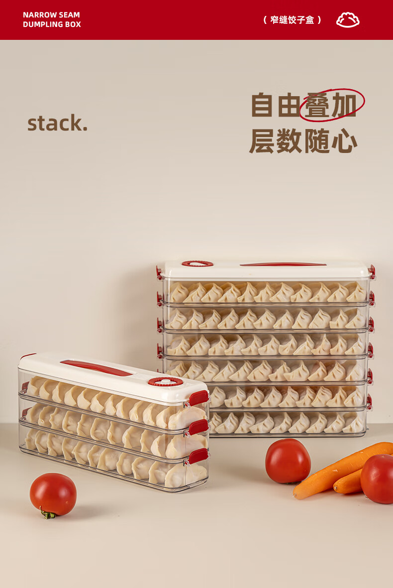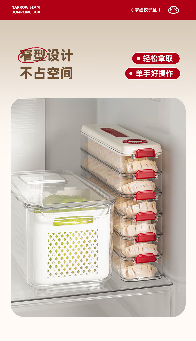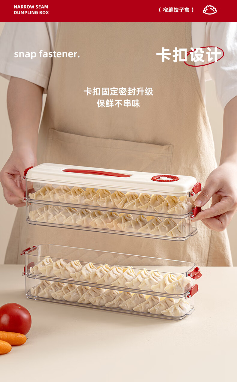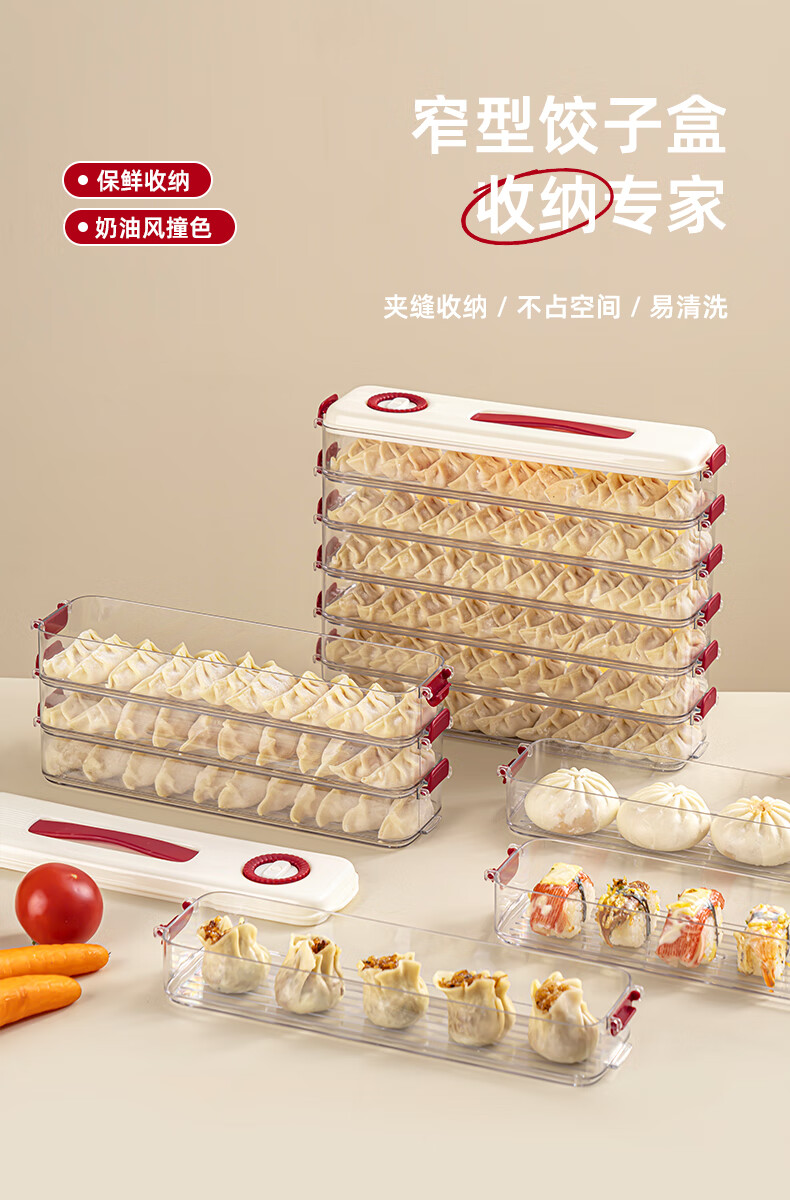 Pukua Dumpling Box Household Food Grade Narrow Slit Freezing Special Kitchen Sealed Fresh-keeping Box Wonton Quick-Freezing Refrigerator Storage Box Cream Red 6-layer with Cover Extra Thick/Food Grade/0 Odor No Specifications