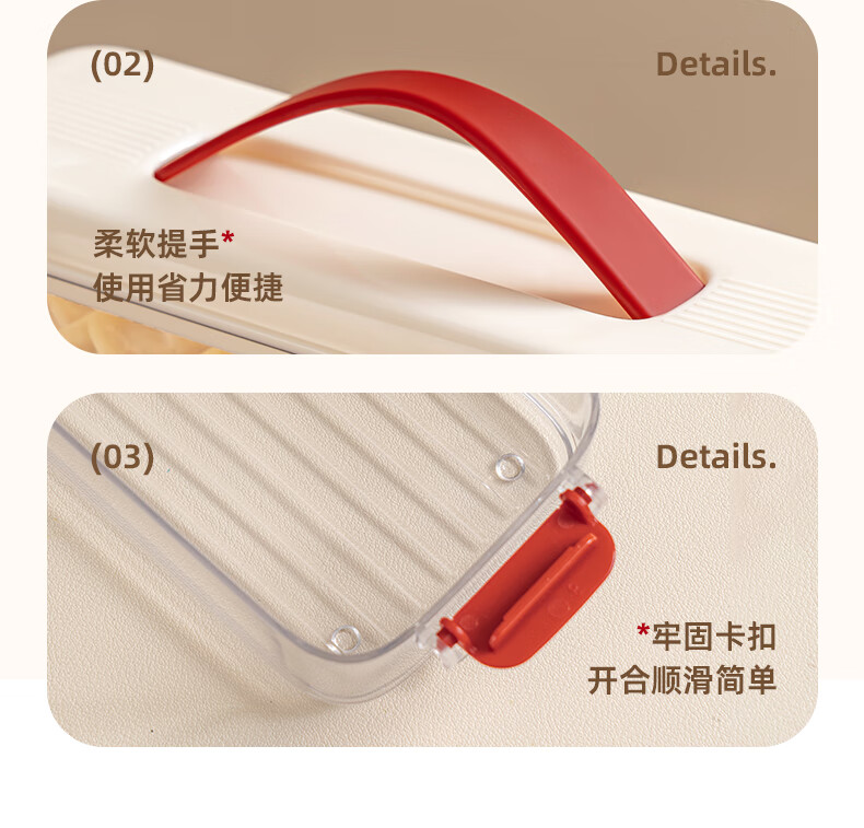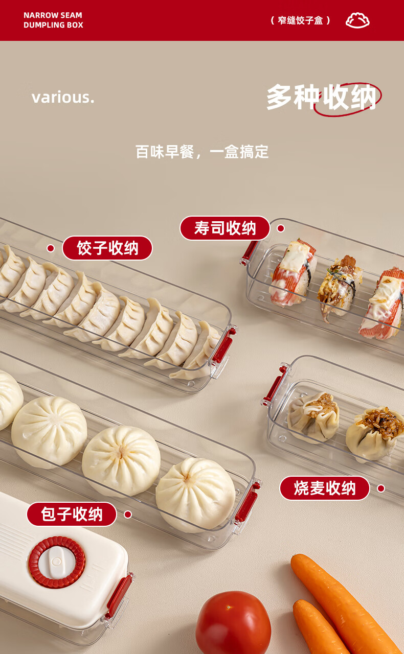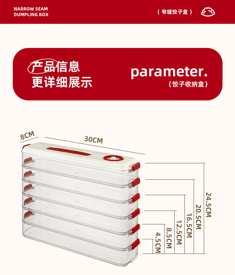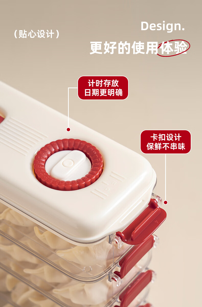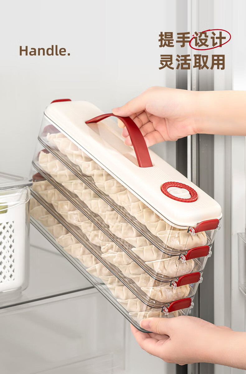 Pukua Dumpling Box Household Food Grade Narrow Slit Freezing Special Kitchen Sealed Fresh-keeping Box Wonton Quick-Freezing Refrigerator Storage Box Cream Red 6-layer with Cover Extra Thick/Food Grade/0 Odor No Specifications