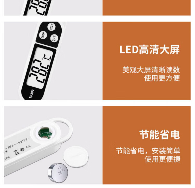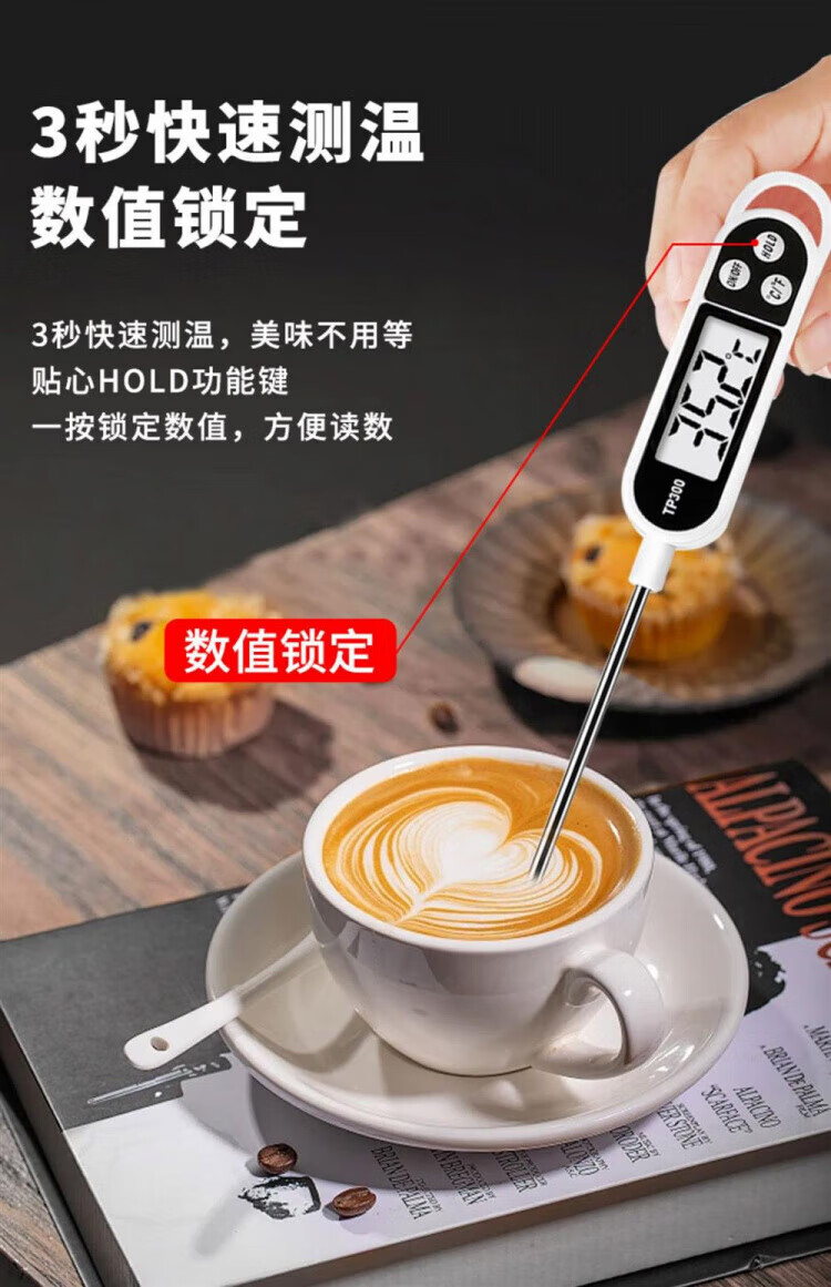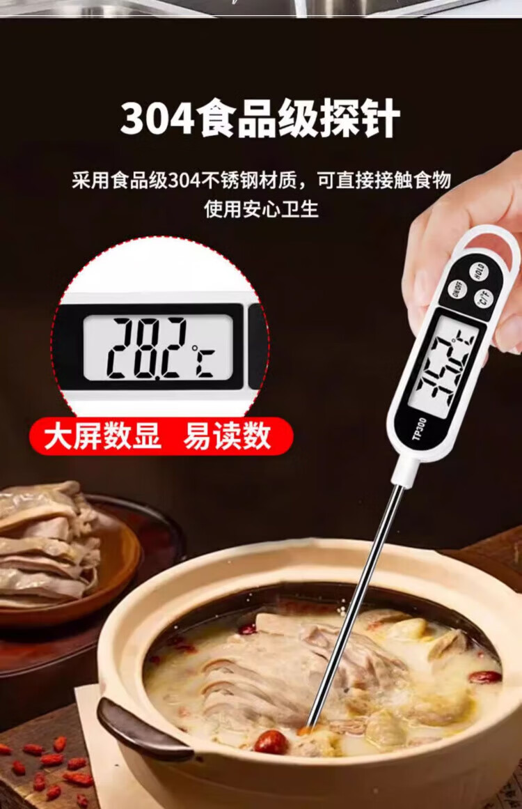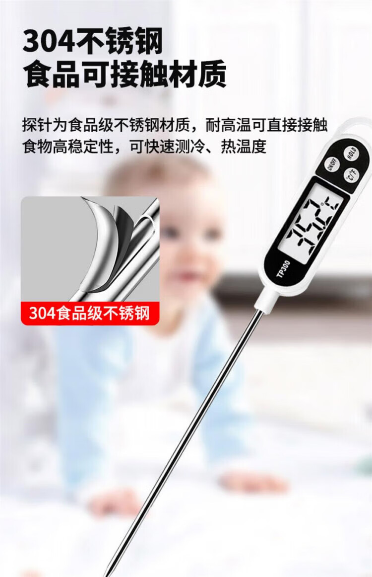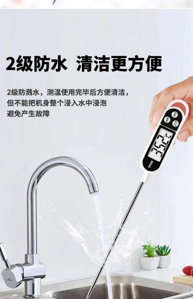 JCZS German brand food thermometer measures water temperature, oil temperature, kitchen baking commercial digital display probe thermometer measurement TP300 food thermometer with pen cover (cardboard packaging)