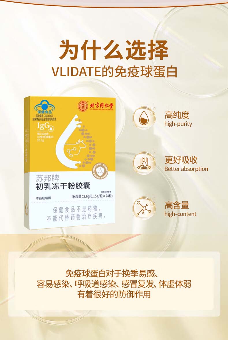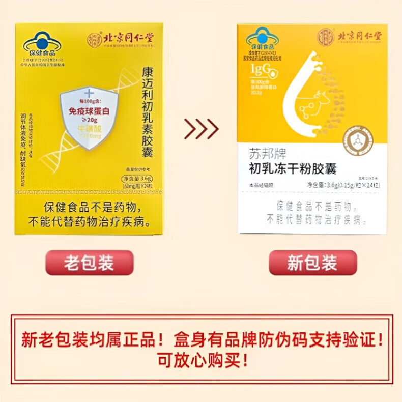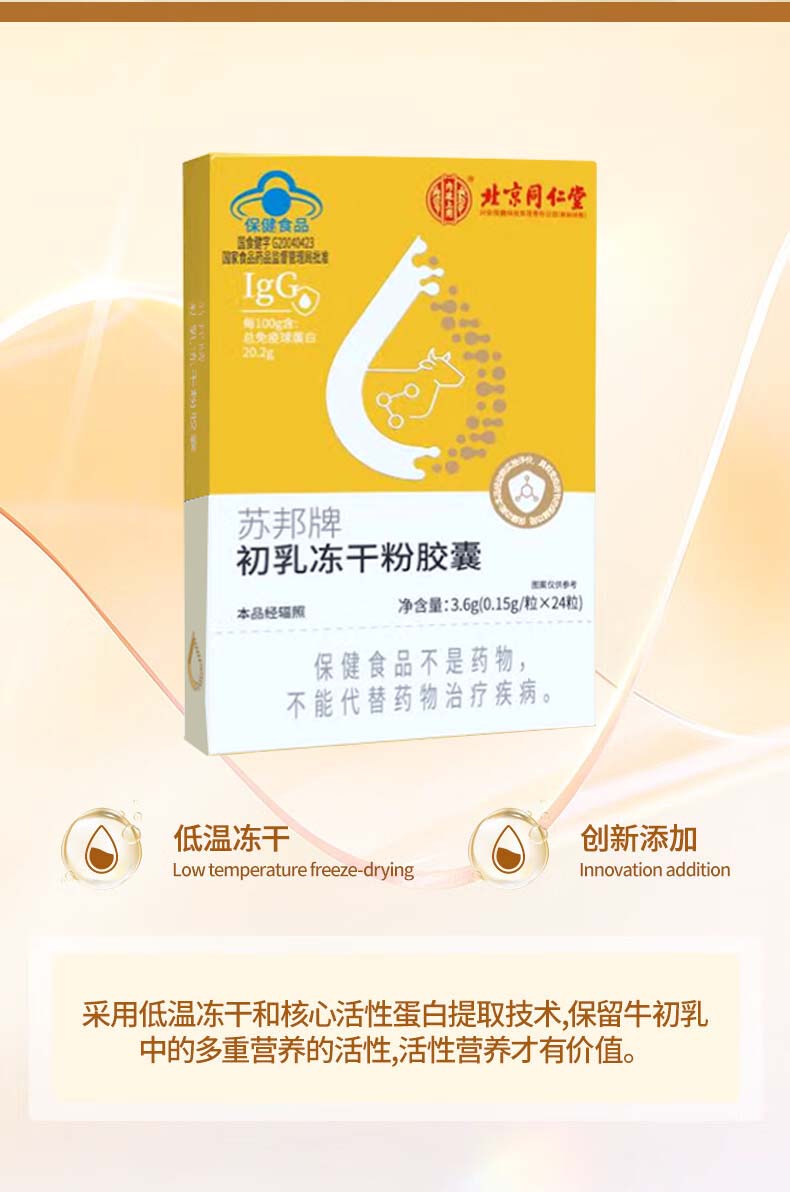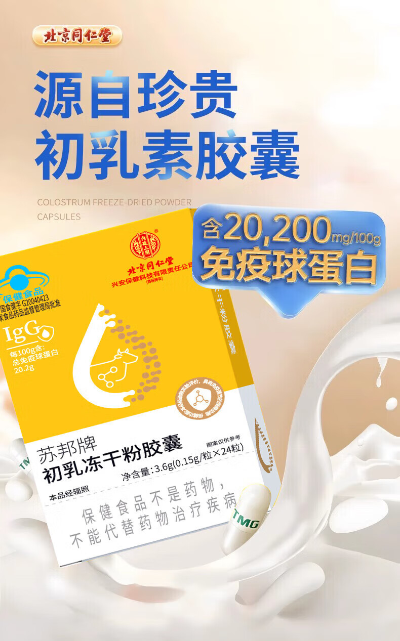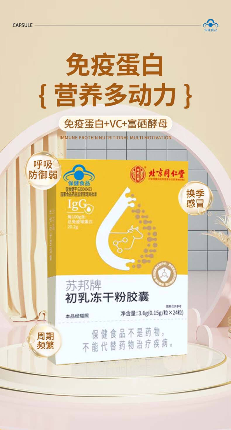 Tong Ren Tang bovine colostrum immune globulin capsules are combined with products to enhance immunity and resistance to regulate intestinal tract. 1 box. New and old packaging are randomly distributed. 24 capsules*1 box