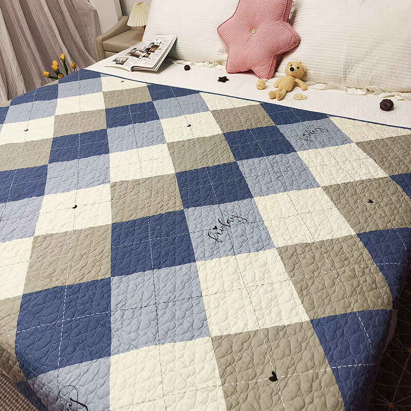 RSRDDY double-sided pure cotton bed cover quilted tatami non-slip non-slip bed sheet pure cotton quilted mattress kang cover universal for all seasons gray small grid double-sided pure cotton high-temperature washing process 200X220CM single piece