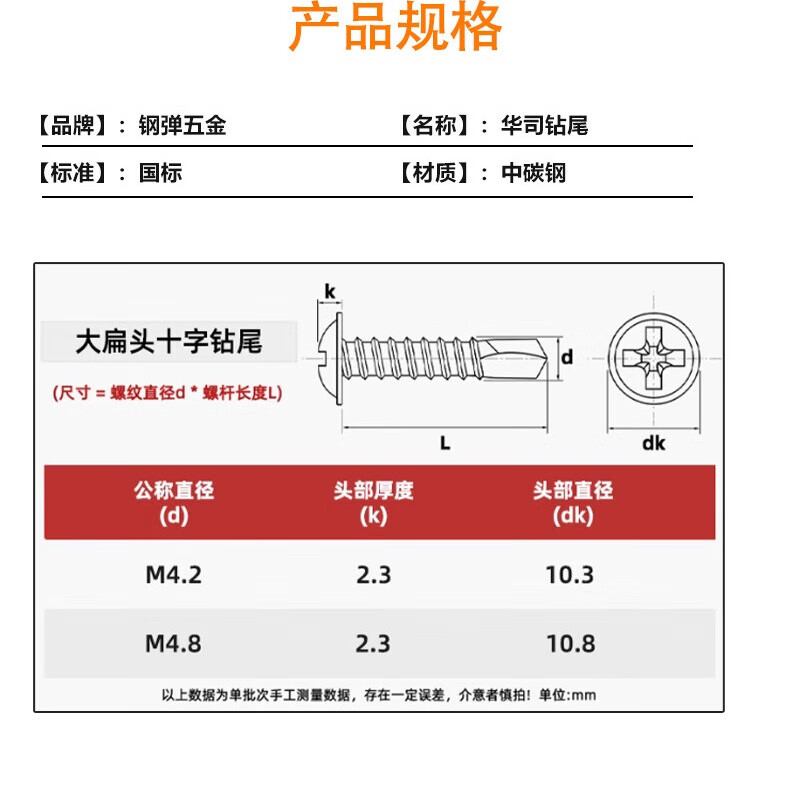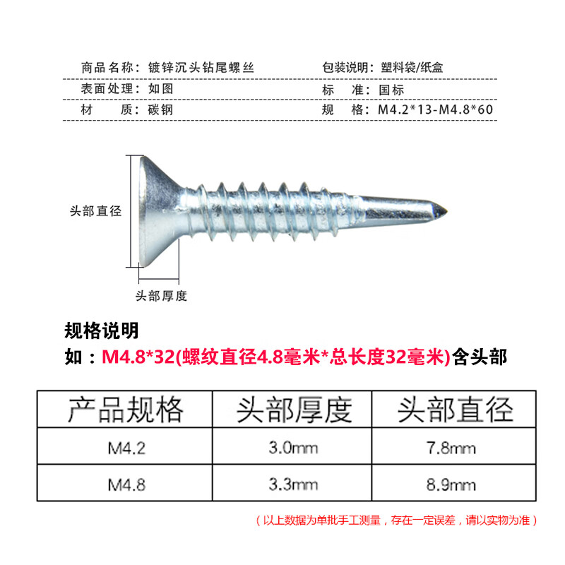 Color steel tile self-tapping screws, all-iron carbon steel drill tail, hexagonal pan head, countersunk head, dovetail screws, color zinc industrial screws, hexagonal drill tail 4.8*35 (50 pcs)