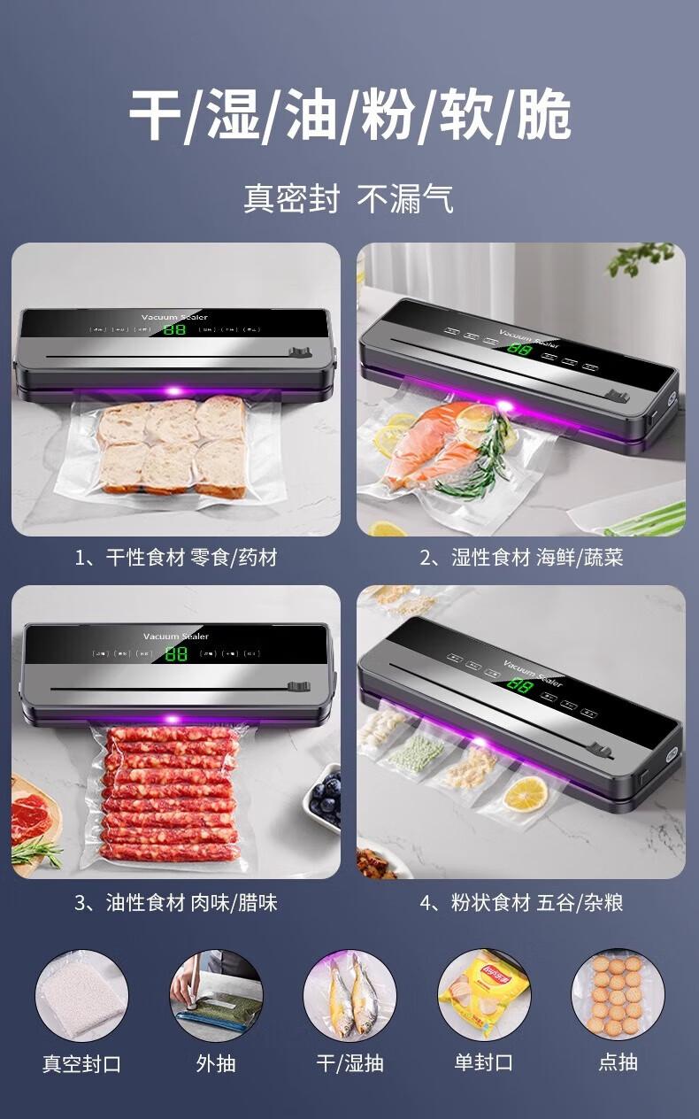 Fully automatic vacuum sealing machine small household sealed food bag packaging machine sealer rice chestnut bacon moon cake preservation vacuum plastic sealing machine compression preservation device upgraded cutter type + wet and dry use + 50 bags