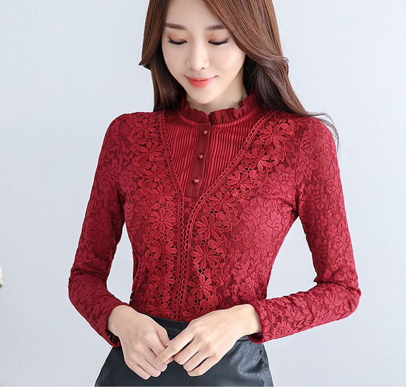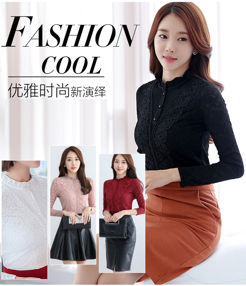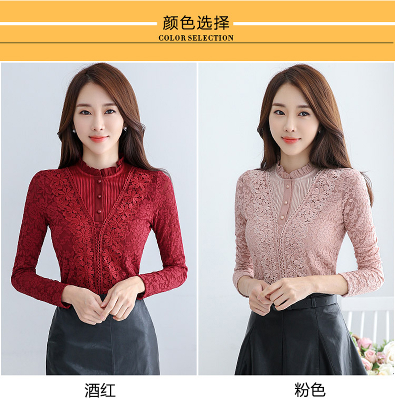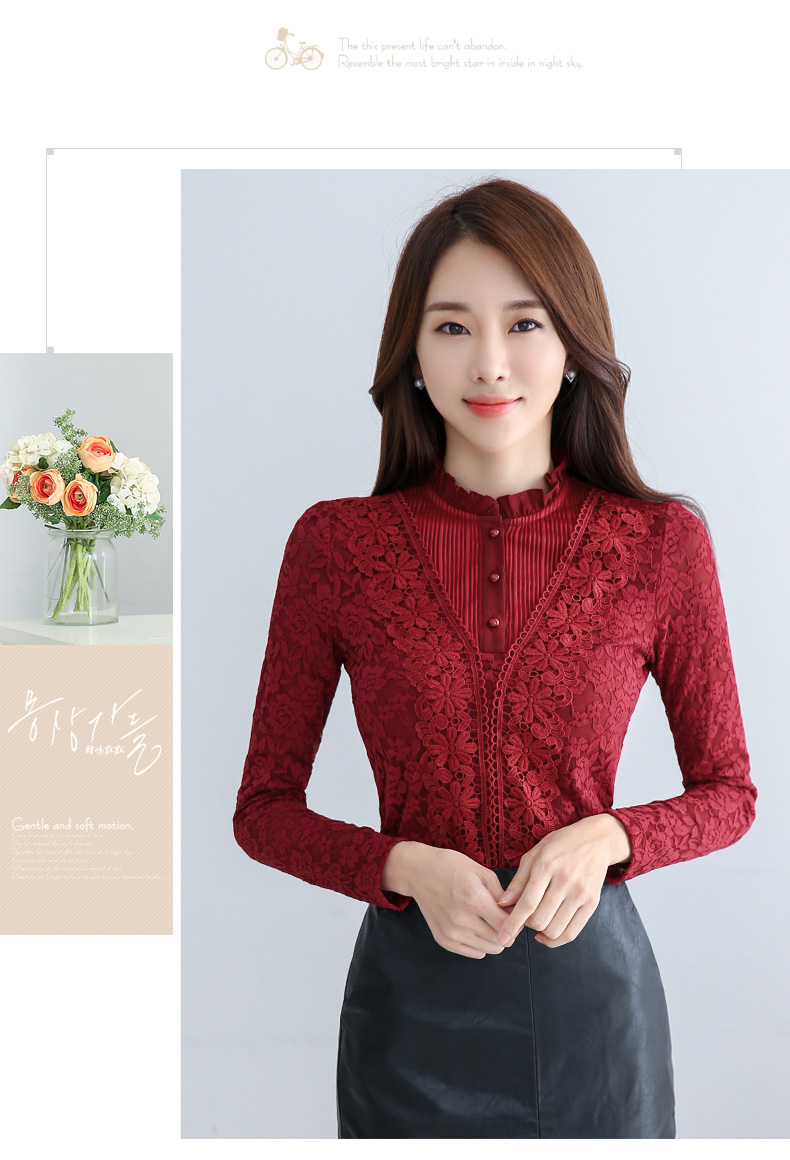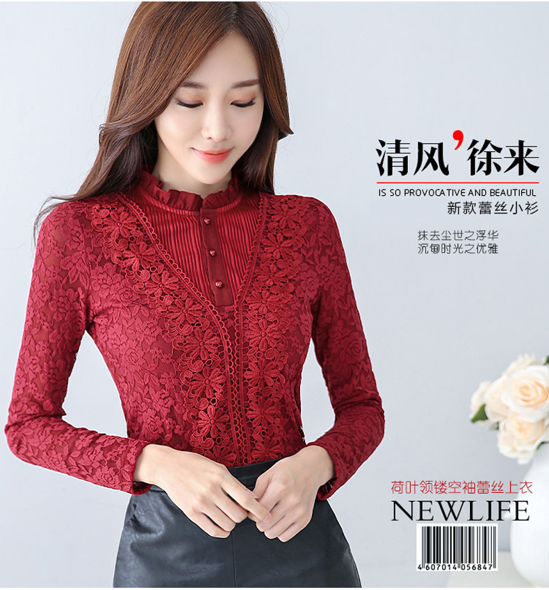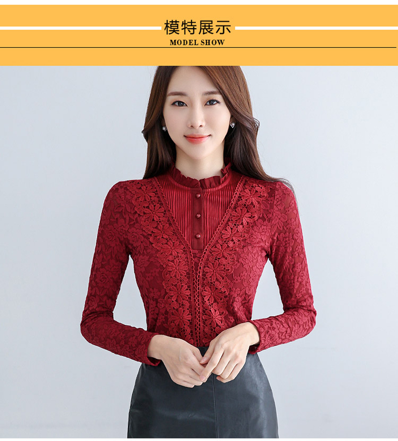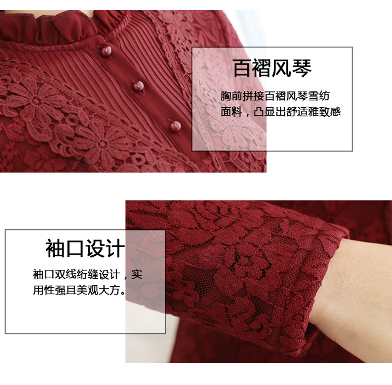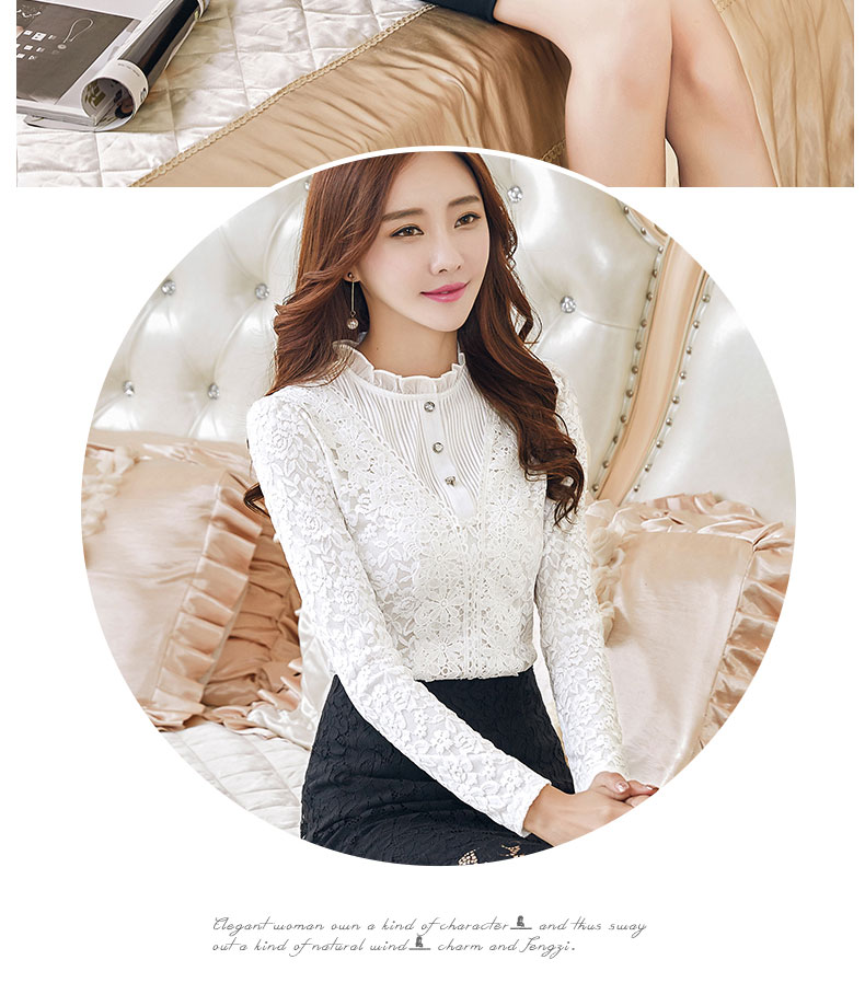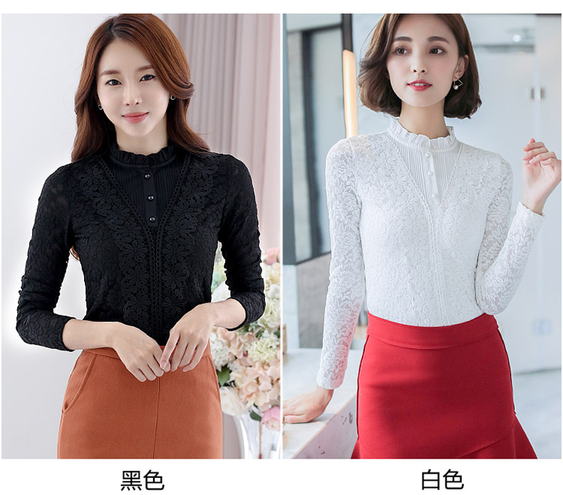 PHJ velvet lace bottoming shirt for women in autumn and winter new slim lace shirt for middle-aged women age-reducing warm long-sleeved top white velvet L