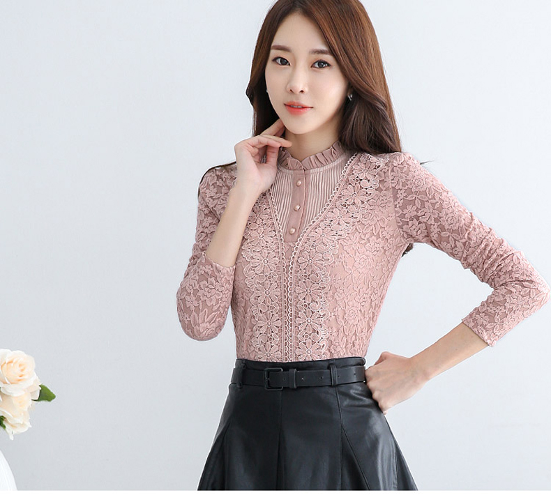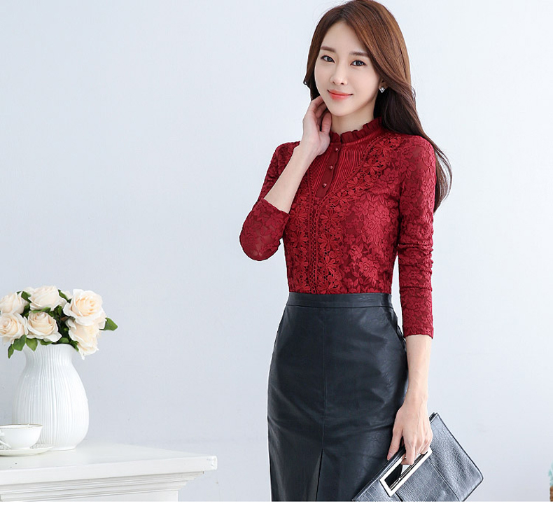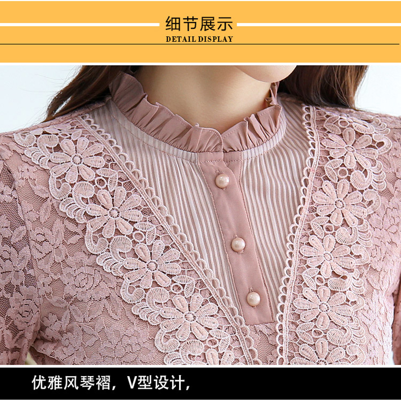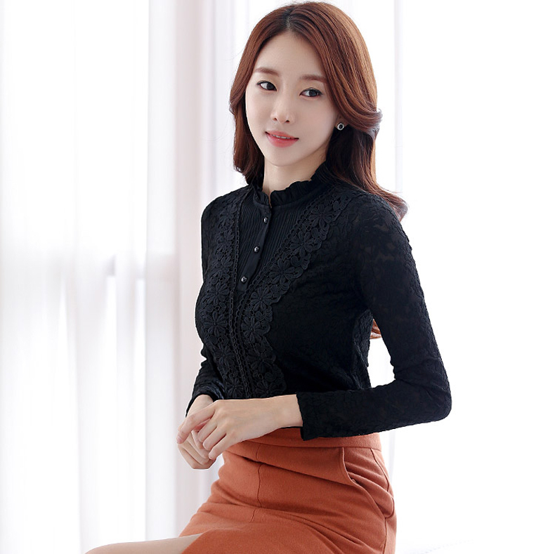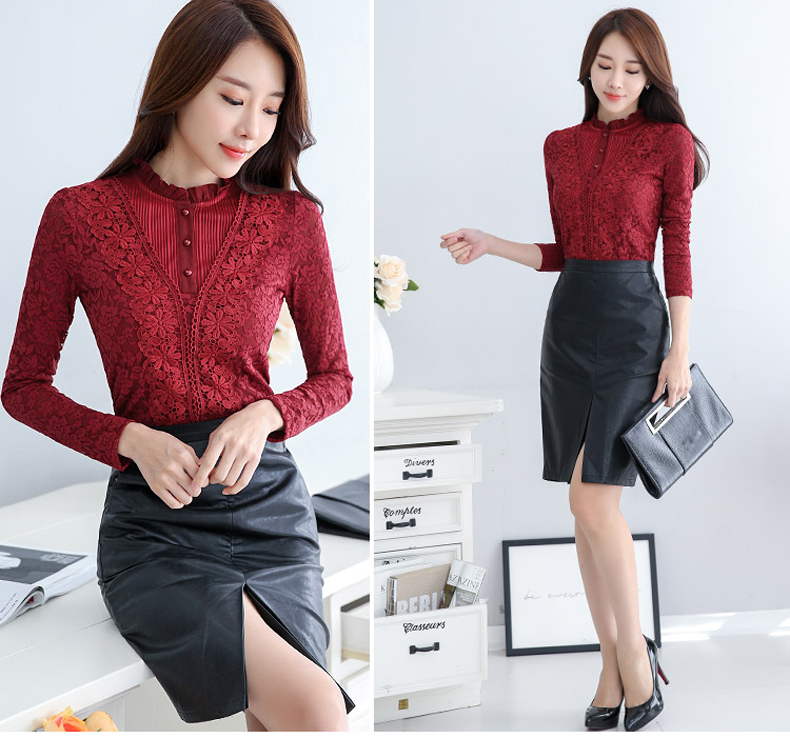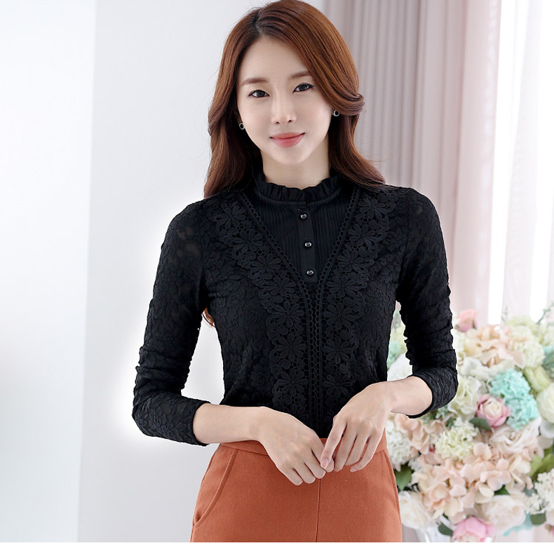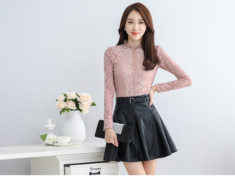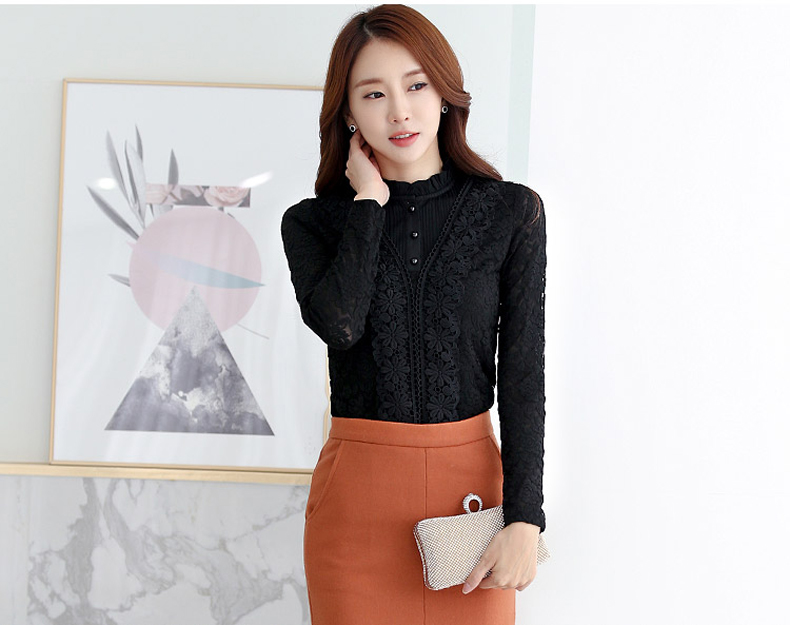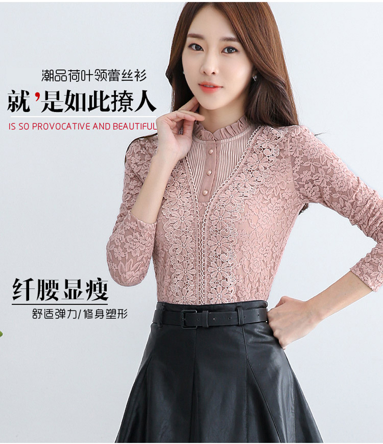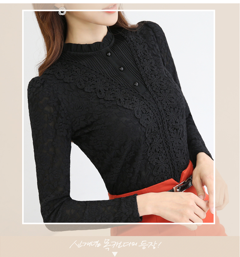PHJ velvet lace bottoming shirt for women in autumn and winter new slim lace shirt for middle-aged women age-reducing warm long-sleeved top white velvet L