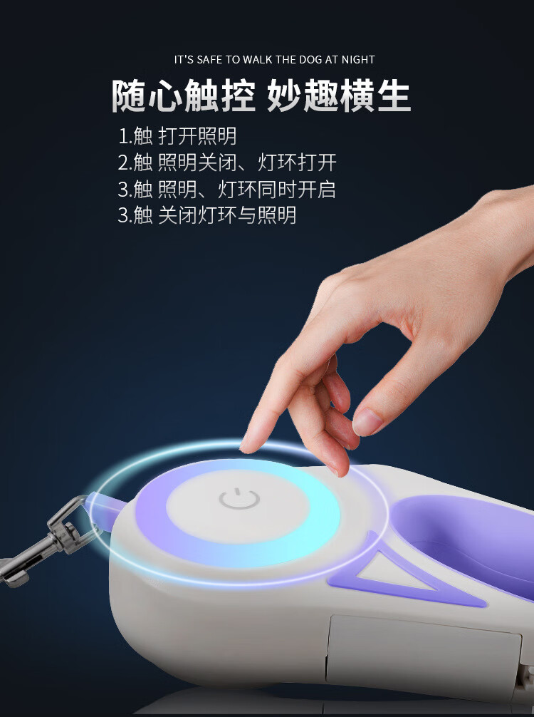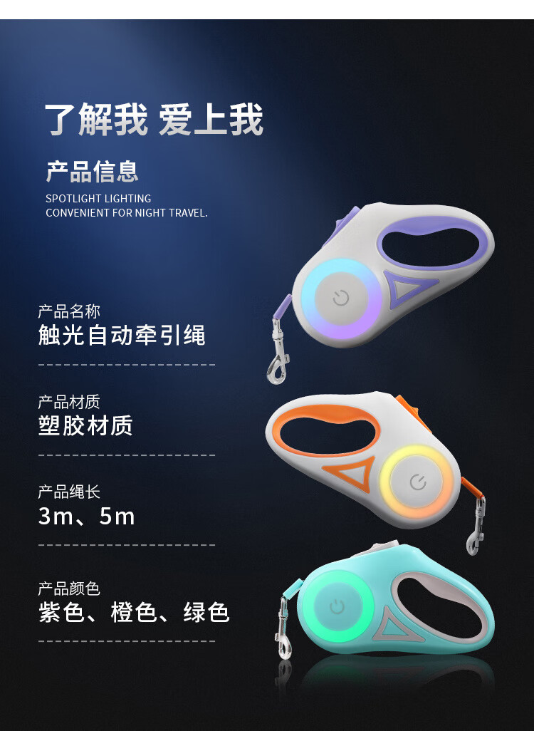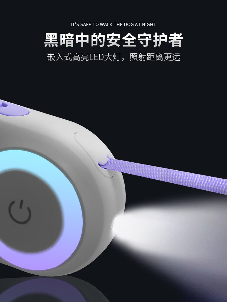 Dog rope, pet leash, LED light-emitting automatic retractable dog leash, dog leash, dog supplies rope, explosion-proof red * dreamy purple 5 meters