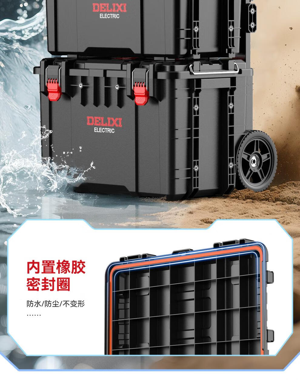 Delixi combined stacking tool box enlarged storage box industrial-grade rod type multi-functional large-capacity set A type thickened and enlarged tool box (can be combined at will)
