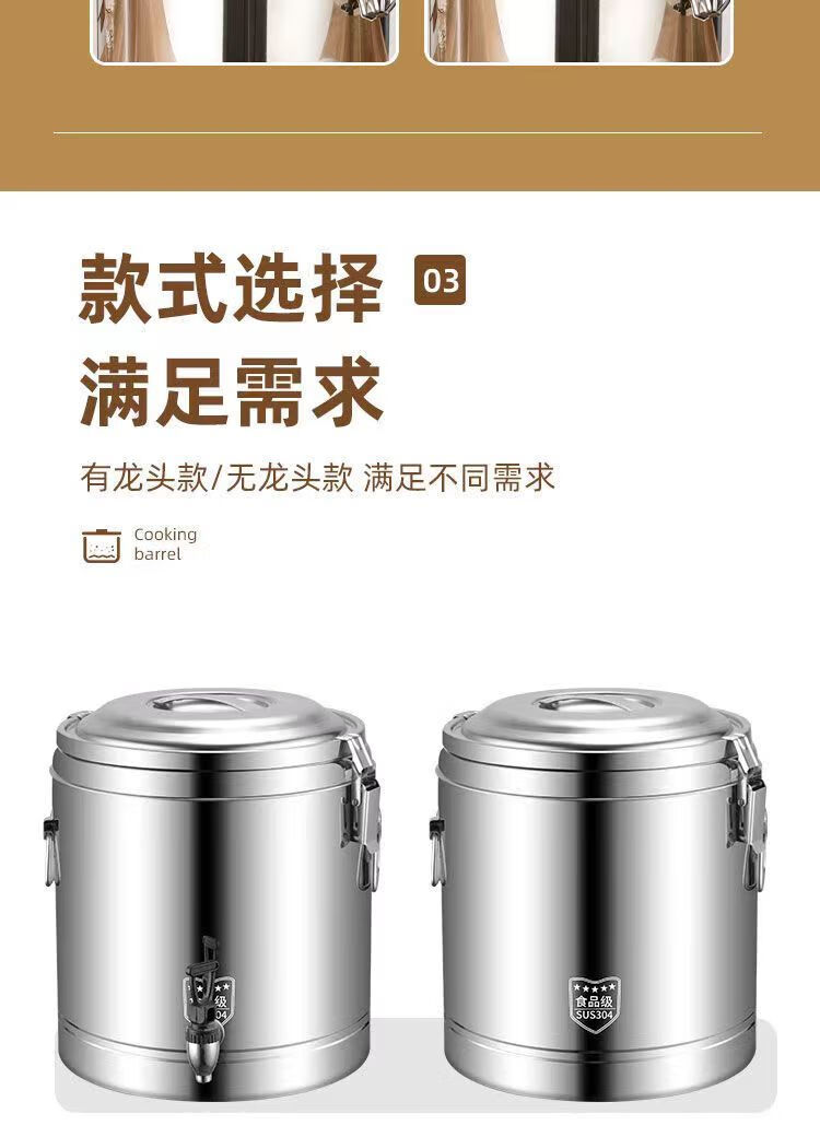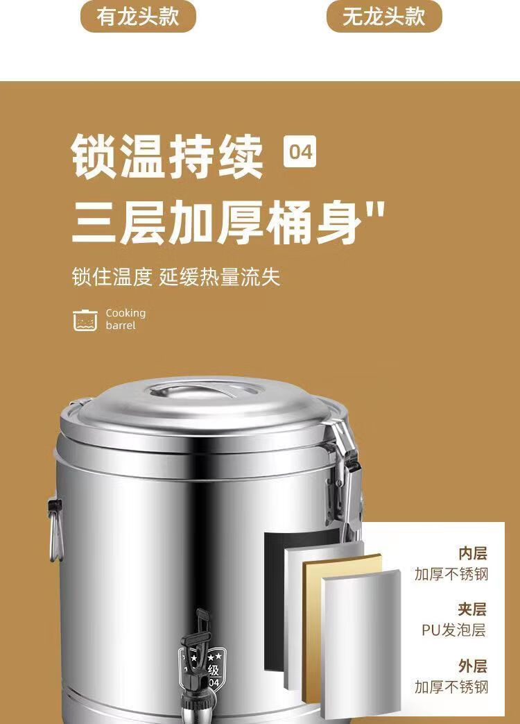 Kamanpait thick 304 insulated bucket commercial stall large capacity canteen rice bucket soy milk bucket milk tea bucket tofu brain soup bucket 304 extra thick with faucet three-layer insulated bucket holds about 10 kilograms of water