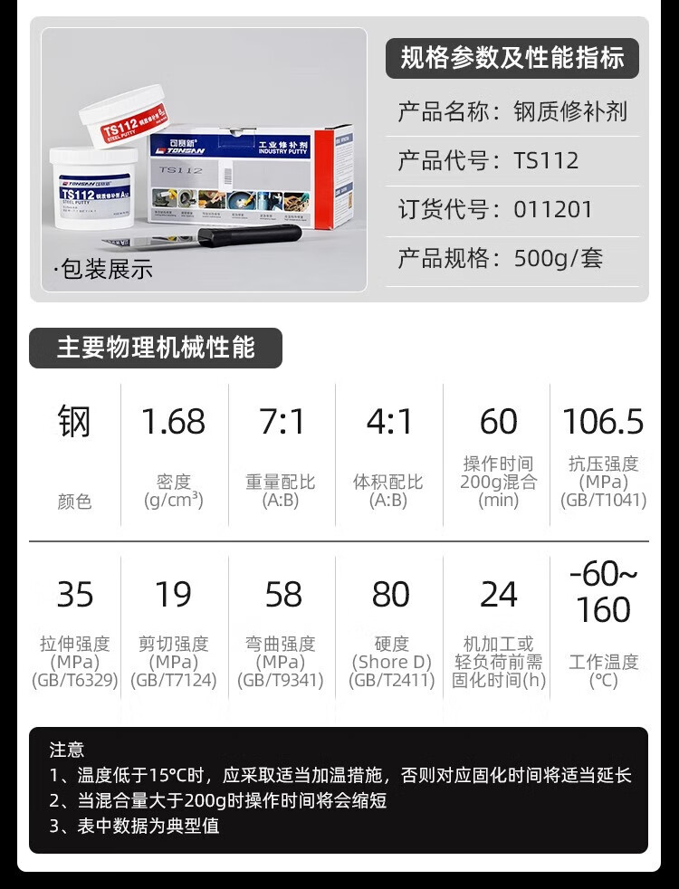Kesaixin ts111 iron ts112 steel 113 aluminum industrial casting ab glue high temperature resistant metal repair agent 7 TS406 corrosion resistant coating 500g