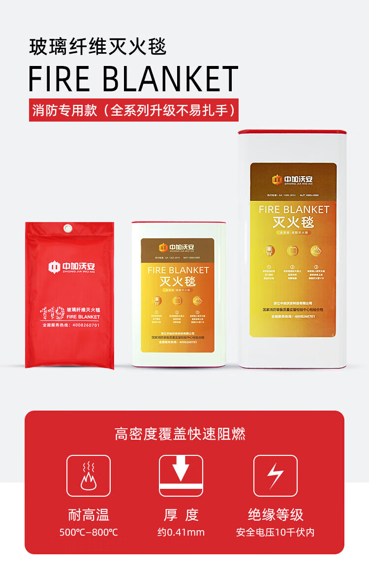 Zhongjia Woan fire-fighting special fire-extinguishing blanket kitchen household fire-fighting certification fiberglass escape fire blanket commercial restaurant national standard EU CE certification | worsted fiberglass fire-extinguishing blanket 1 meter