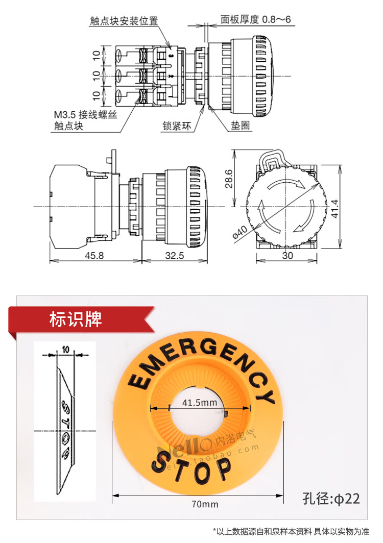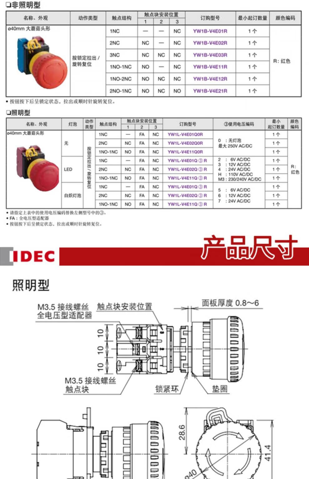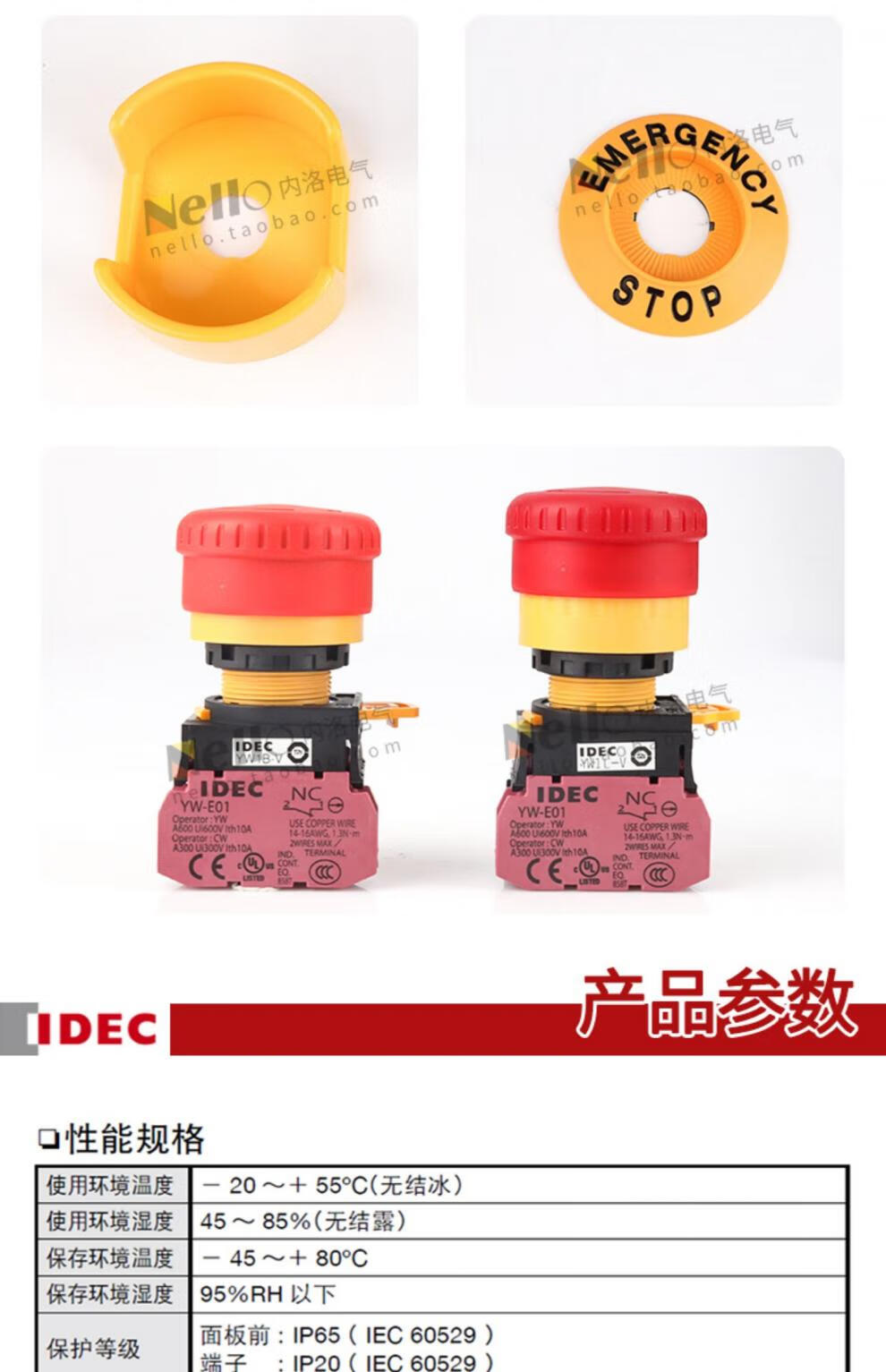 IDEC Germany and Japan imported technology Izumi emergency stop switch button YW1B-V4E01R mushroom head emergency stop 22m one normally closed_without light