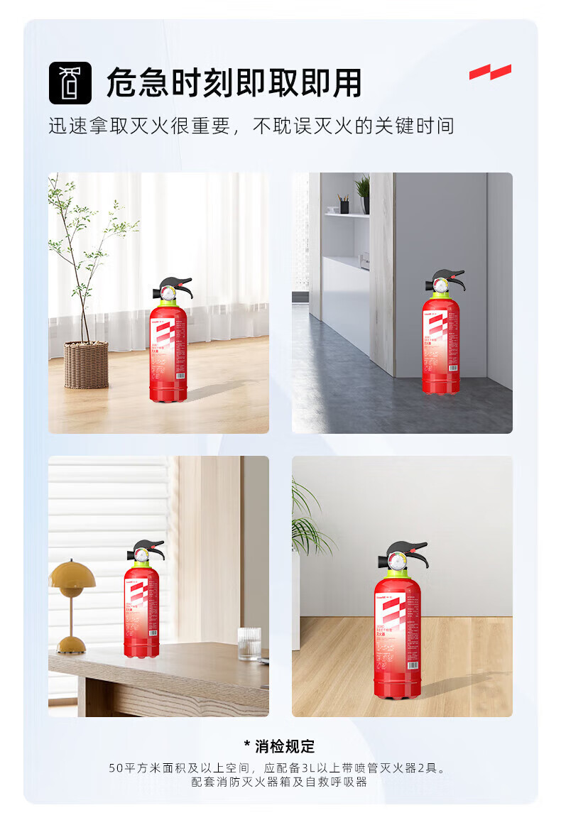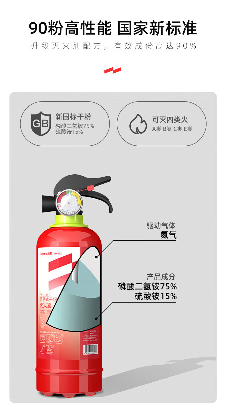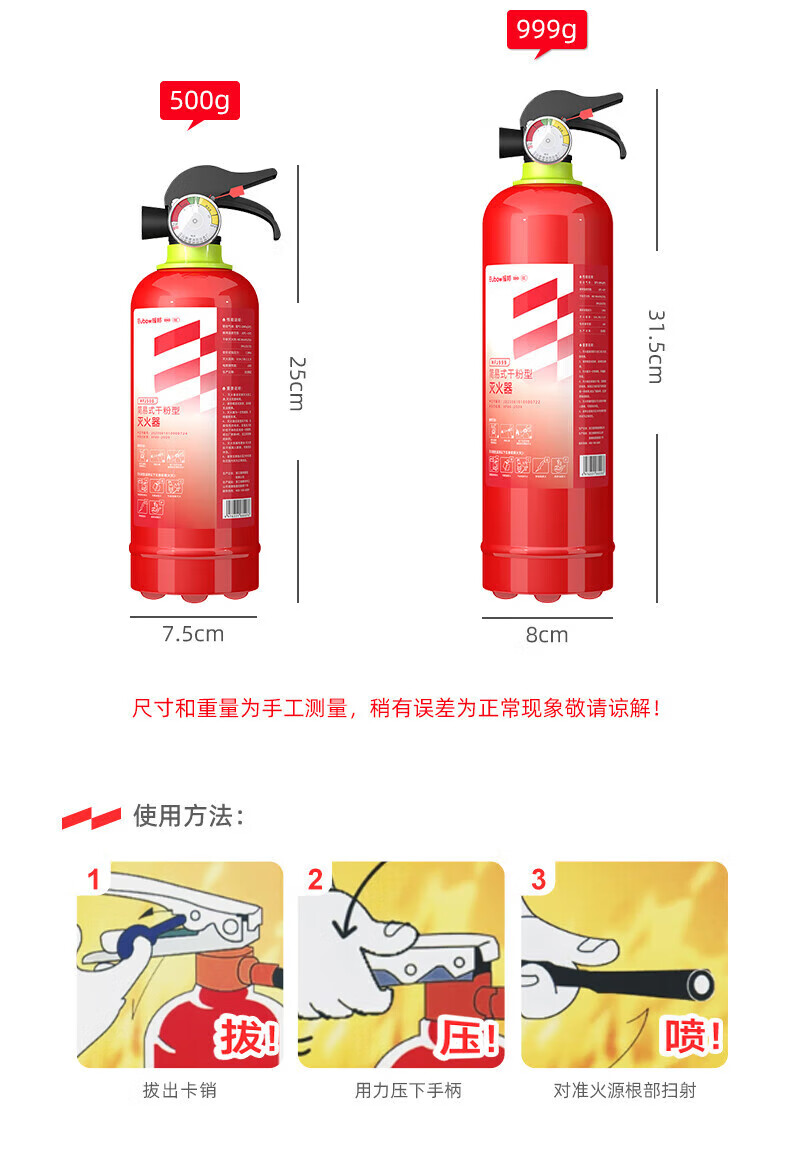 Yuanbang Fire Extinguisher 500g Dry Powder Fire Extinguisher Portable Car-mounted Fire Extinguisher National Fire Certification 500g Dry Powder Household Fire Escape - Three Persons