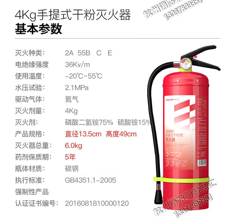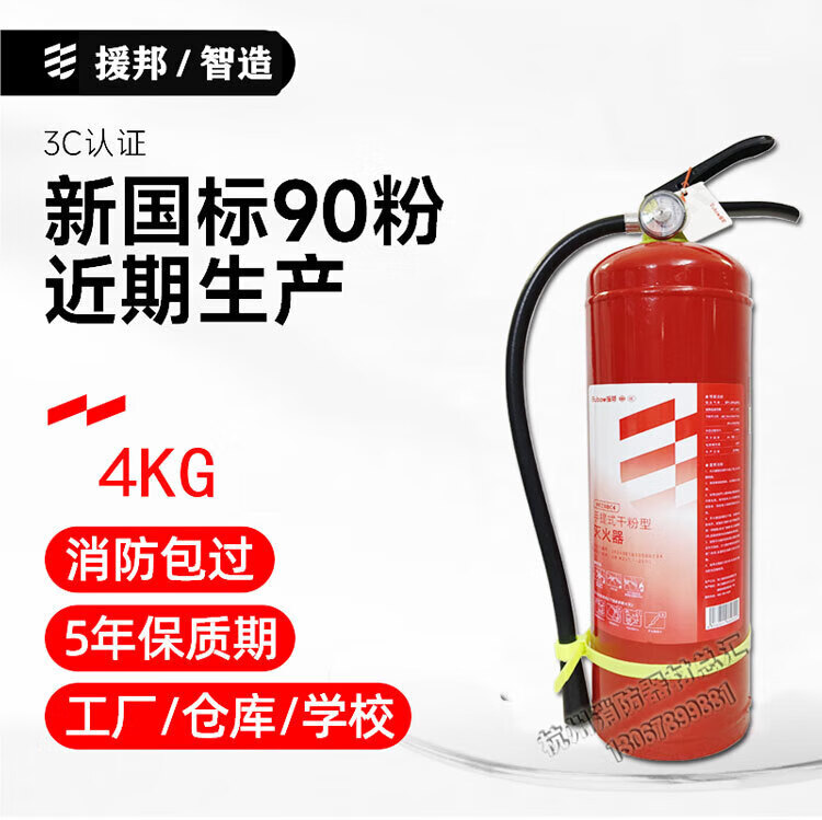 Yuanbang New National Standard Dry Powder Fire Extinguisher MFZ/ABC4 Portable 4kg Unit Shop Fire Equipment Inspection 35kg Dry Powder Cart Fire Extinguisher New National Standard 3C Certification