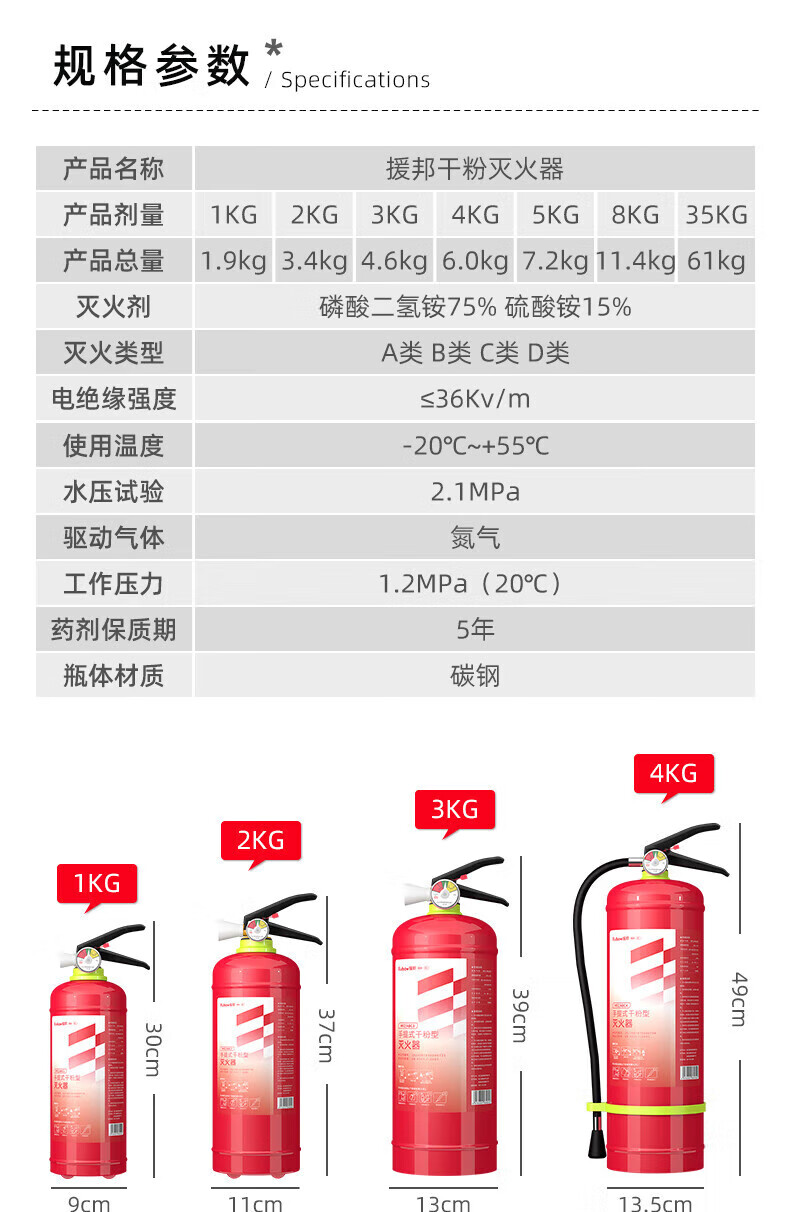 Yuanbang fire extinguisher 8kg for commercial shops and factories 8kg dry powder fire extinguisher for firefighting equipment MFZ/ABC8 dry powder 999g new national standard/fire protection 3C certification