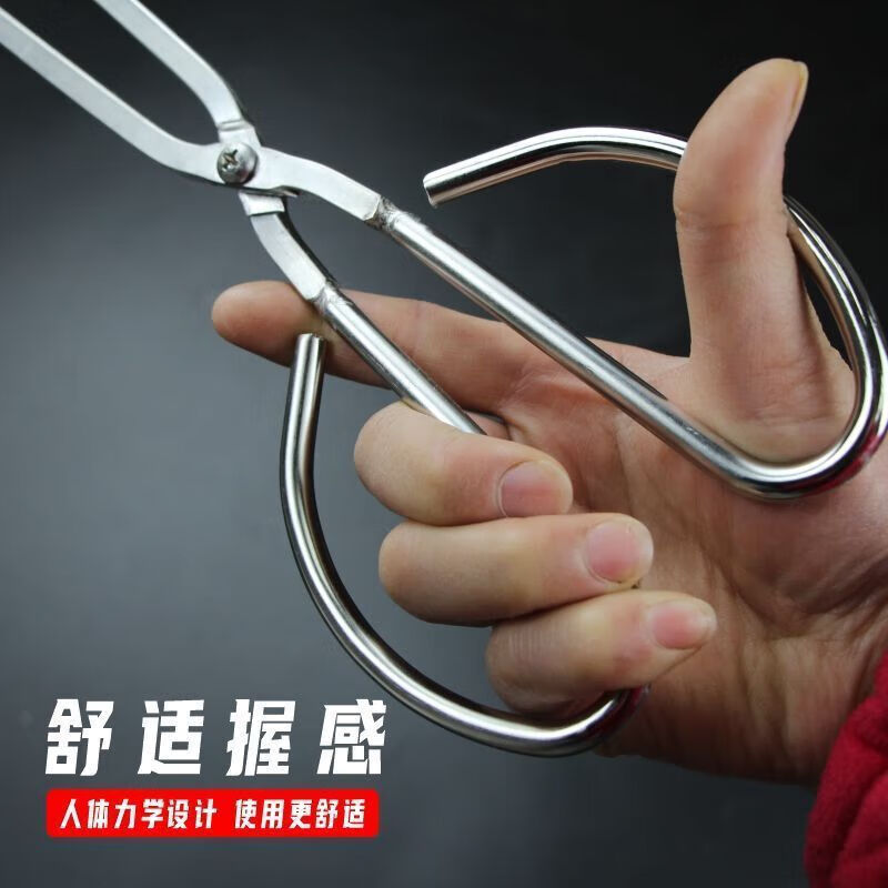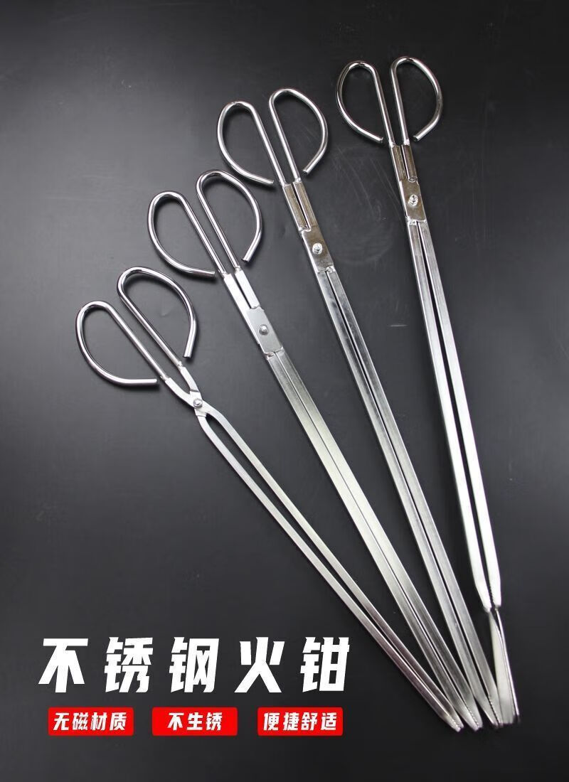 Vinoa stainless steel fire tongs carbon garbage tongs old-fashioned pliers with extended flat head briquettes household high temperature resistant fire tongs for sanitation, solid clamp mouth 43 cm, thickened and rust-free, about 420 grams