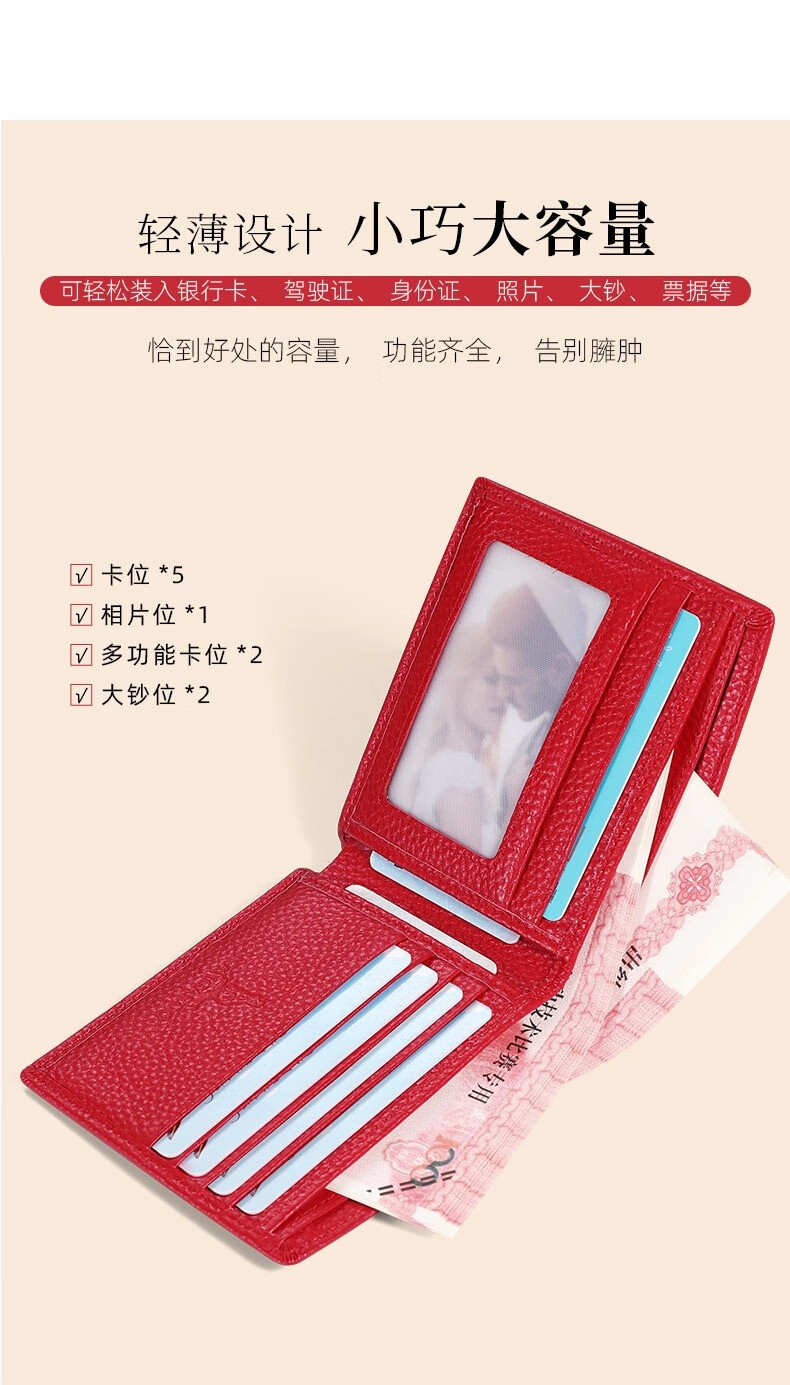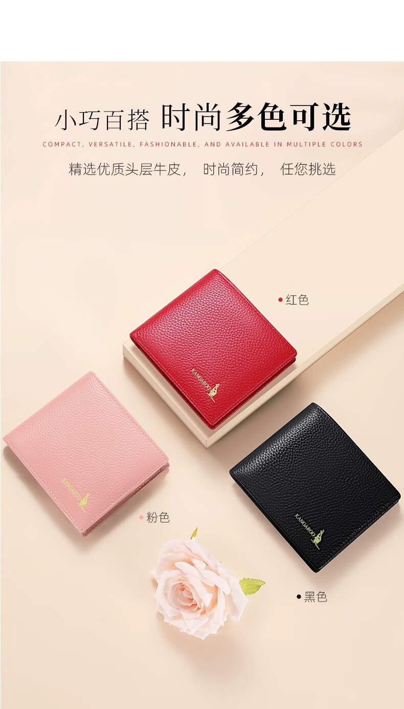 Kangaroo Wallet Women's 2025 New Genuine Leather Wallet Short Cowhide Wallet Women's High-end Coin Purse Lightweight and Compact Card Holder Black