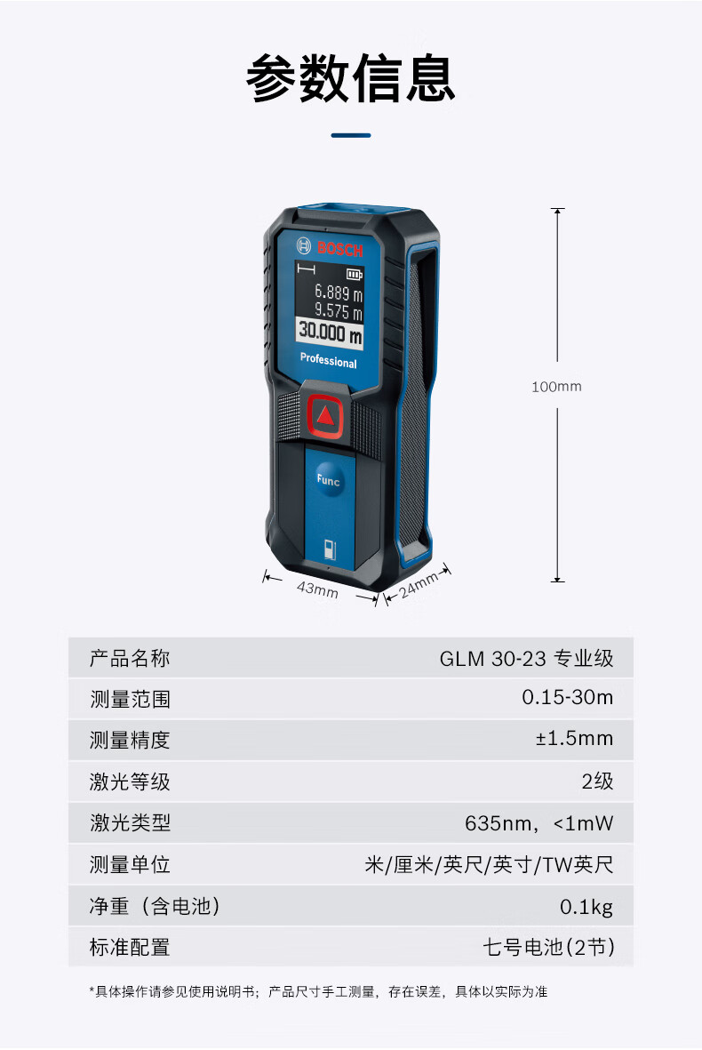 Bosch line laser distance meter electronic ruler GLM 30-23/4000 room ruler measuring instrument distance meter GLM4000 (40 meters automatic backlight)
