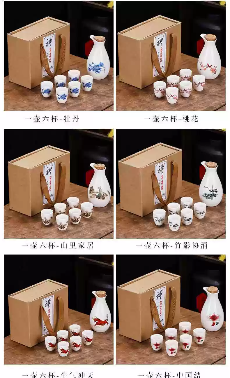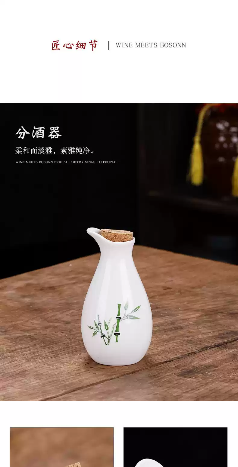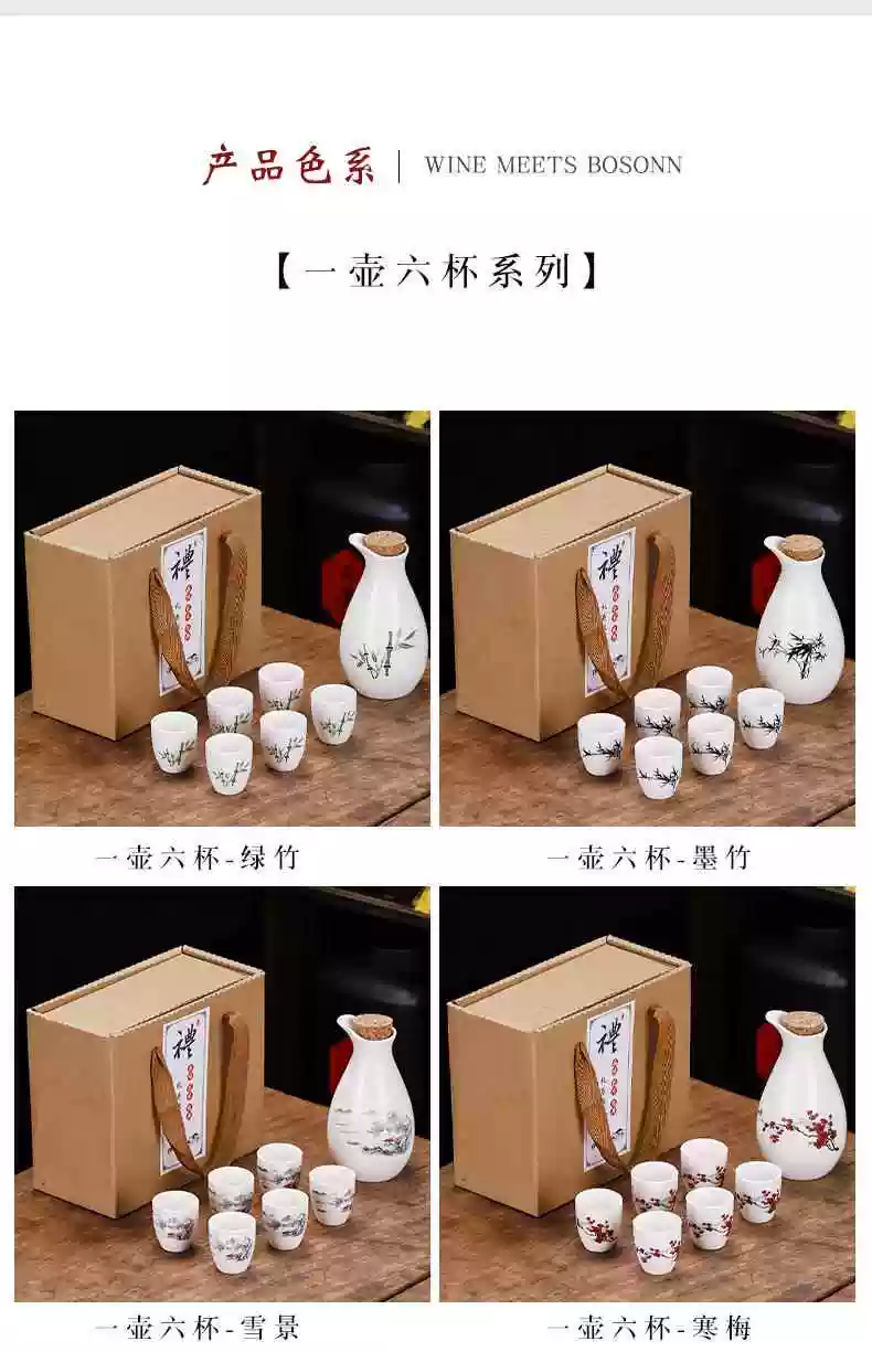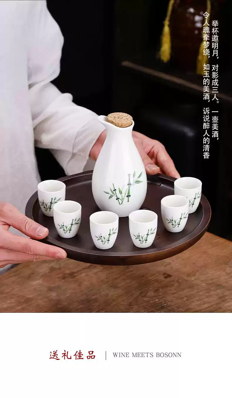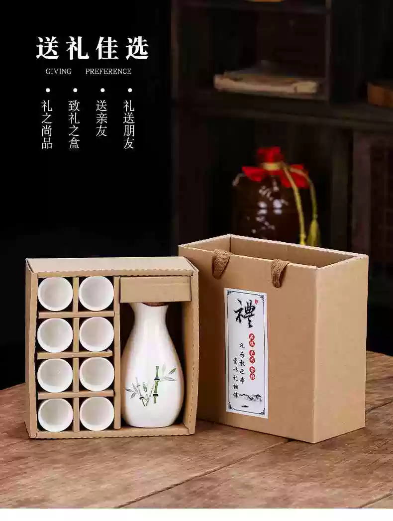 The middle shopkeeper ceramic wine set gift box with warm wine vessel white wine cup wine dispenser gift gift small wine cup wine dispenser wine one pot six cups - Green Bamboo