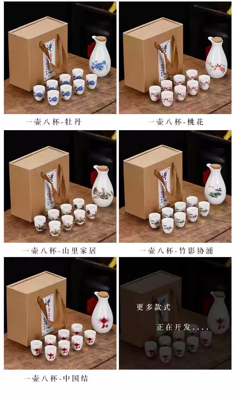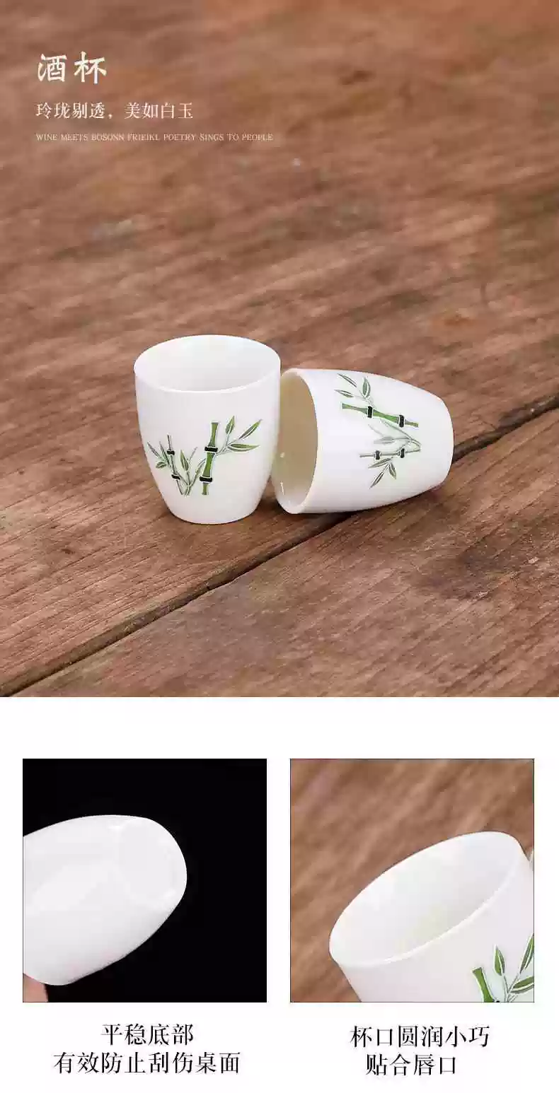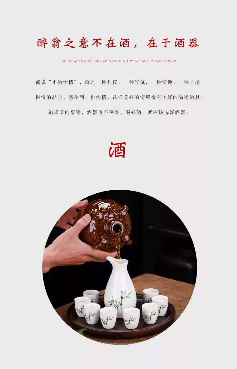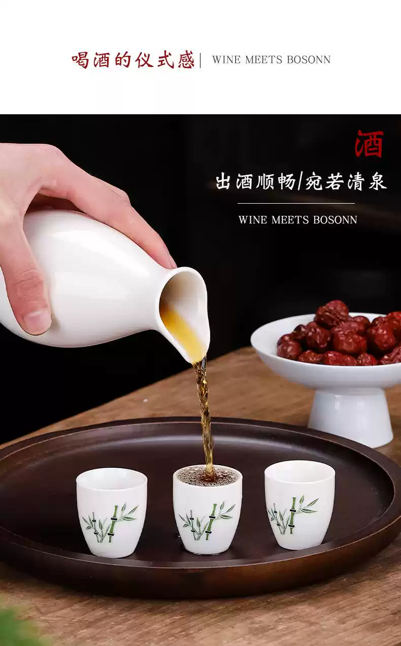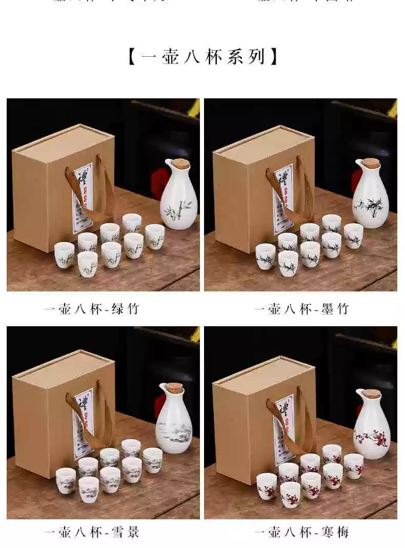 The middle shopkeeper ceramic wine set gift box with warm wine vessel white wine cup wine dispenser gift gift small wine cup wine dispenser wine one pot six cups - Green Bamboo