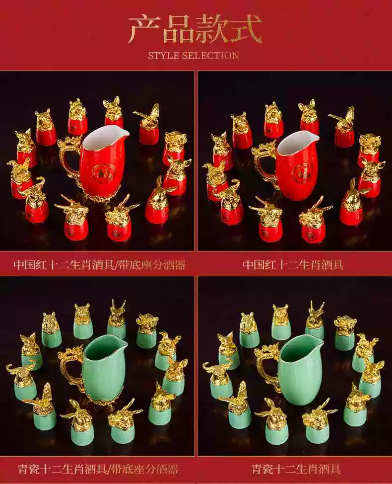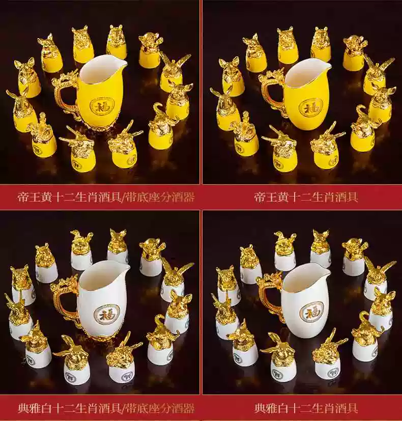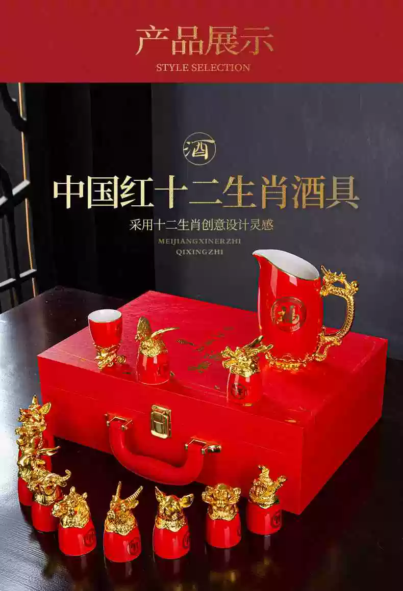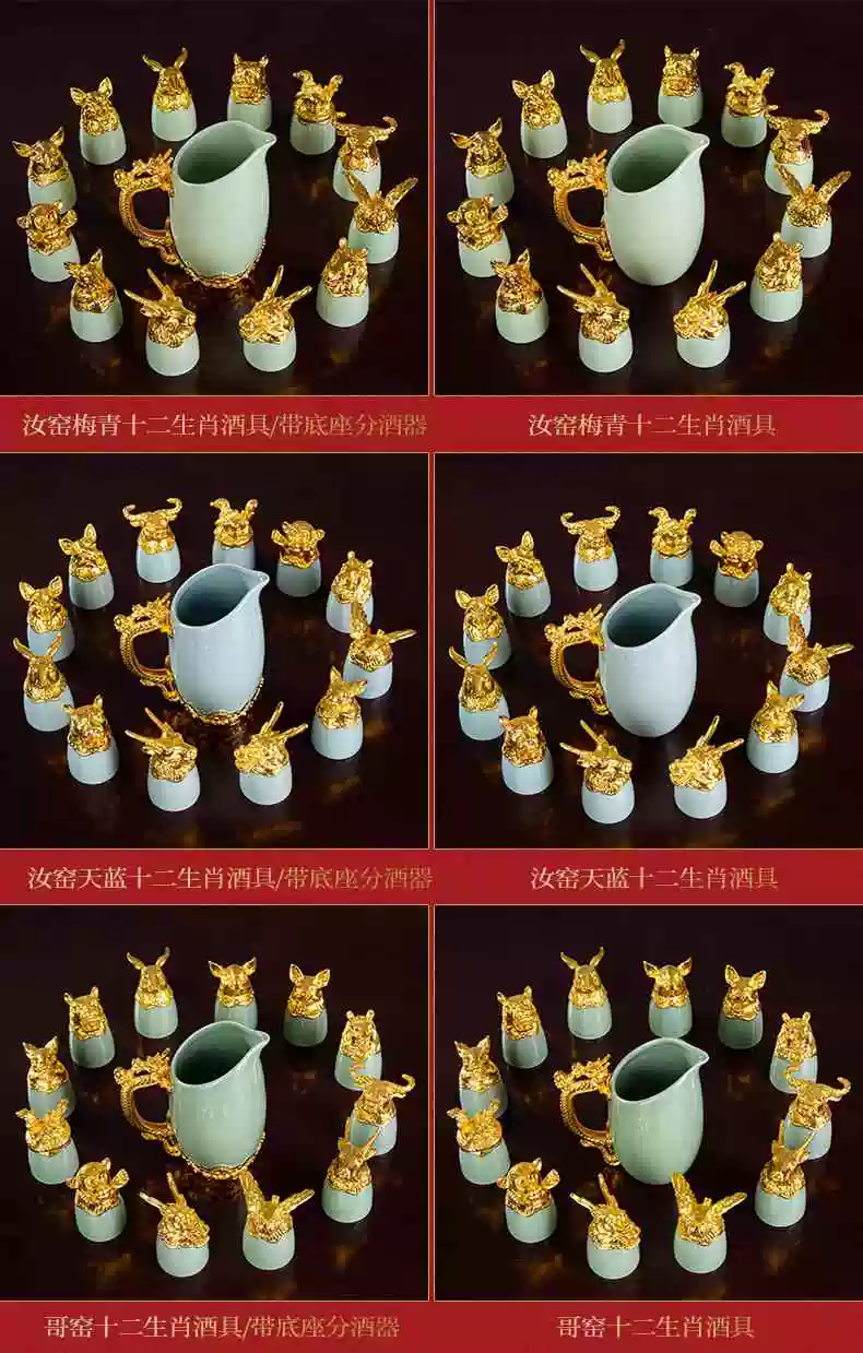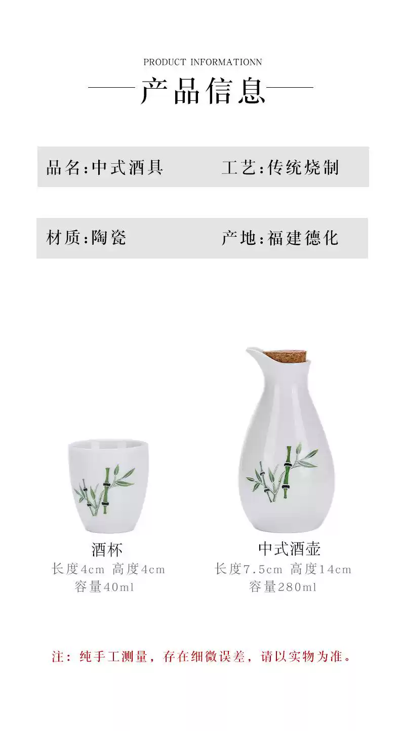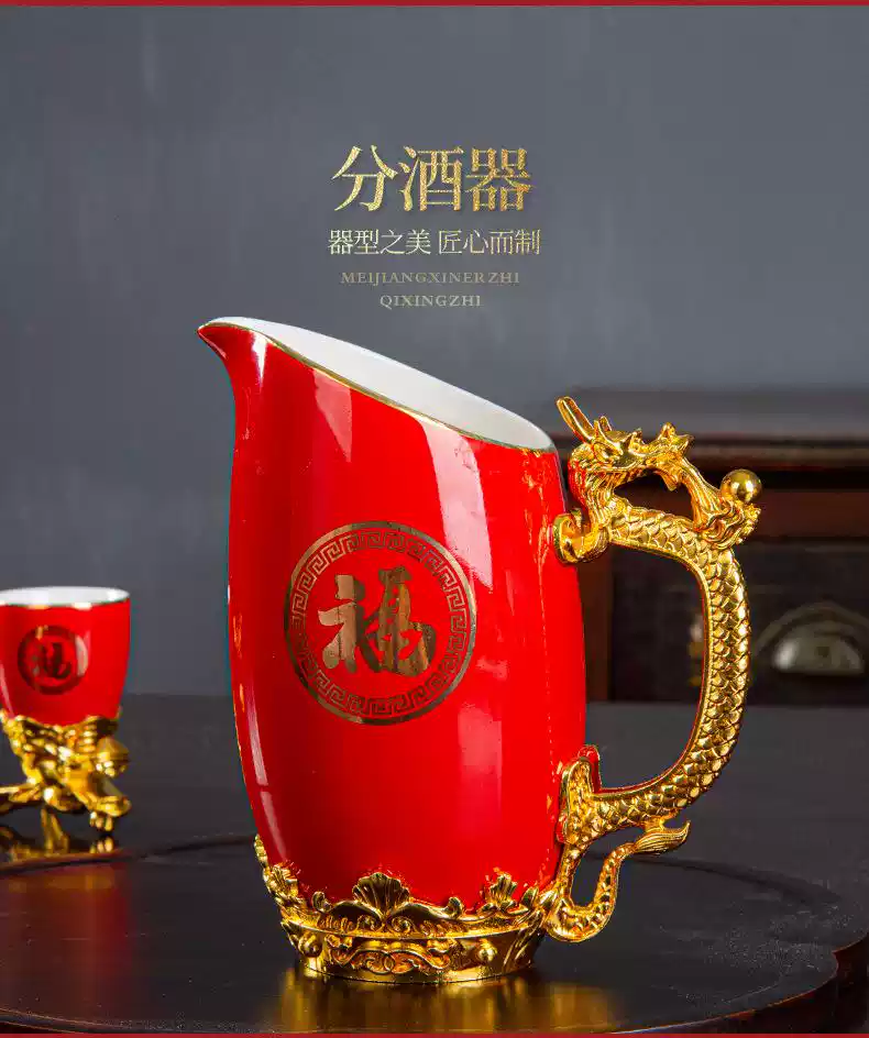 The middle shopkeeper ceramic wine set gift box with warm wine vessel white wine cup wine dispenser gift gift small wine cup wine dispenser wine one pot six cups - Green Bamboo