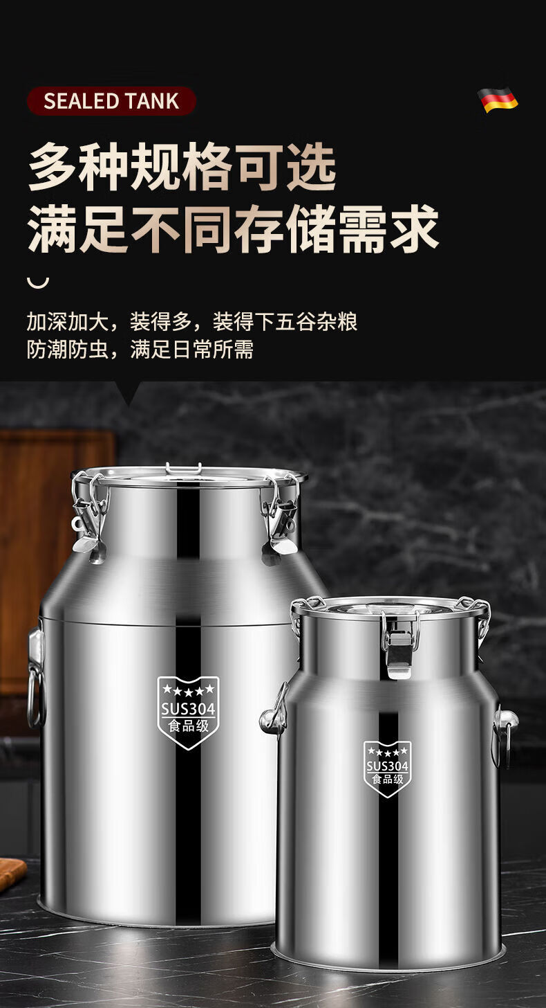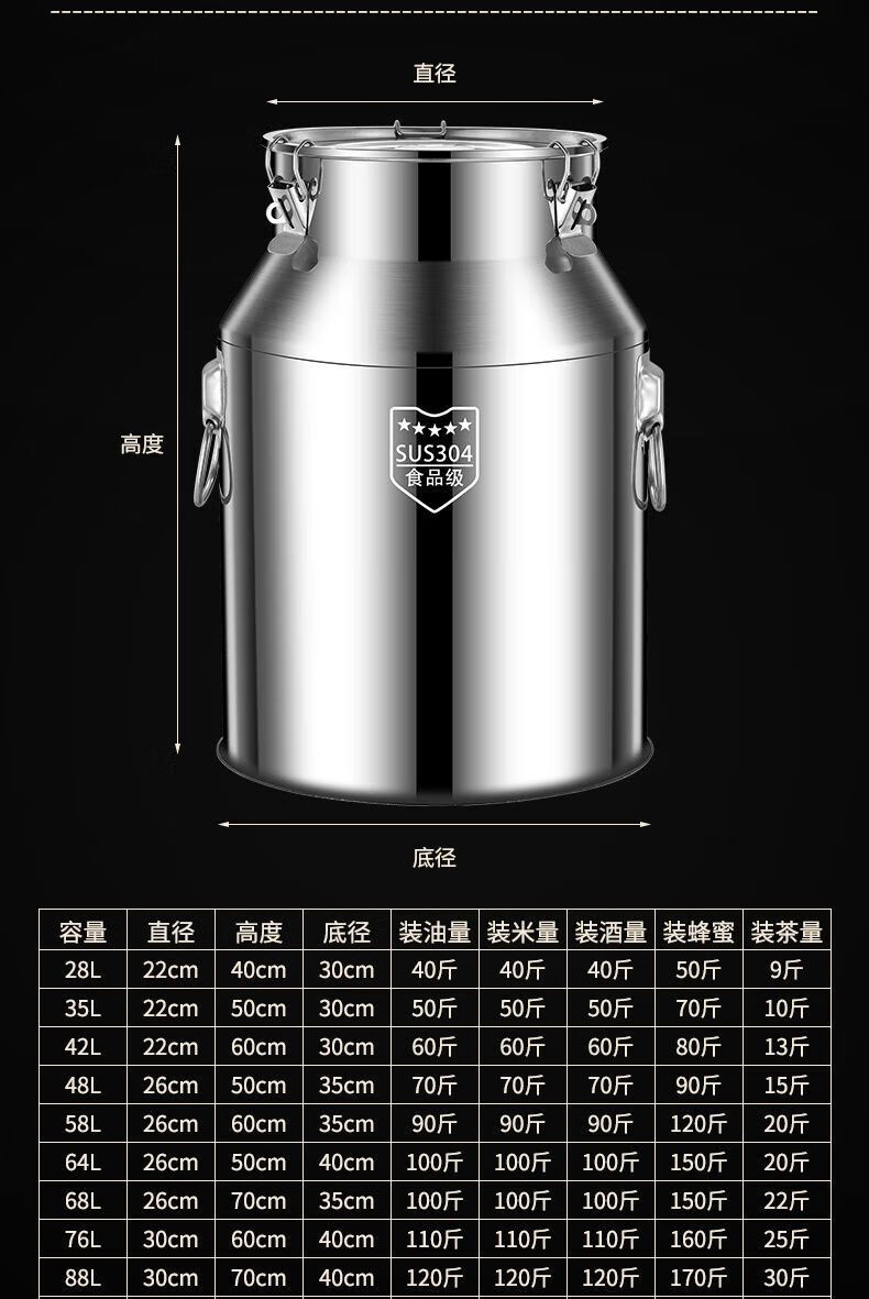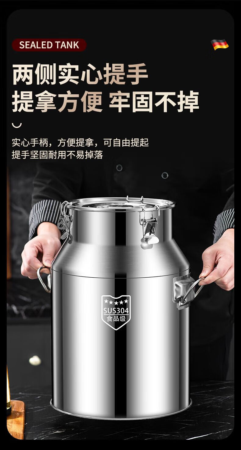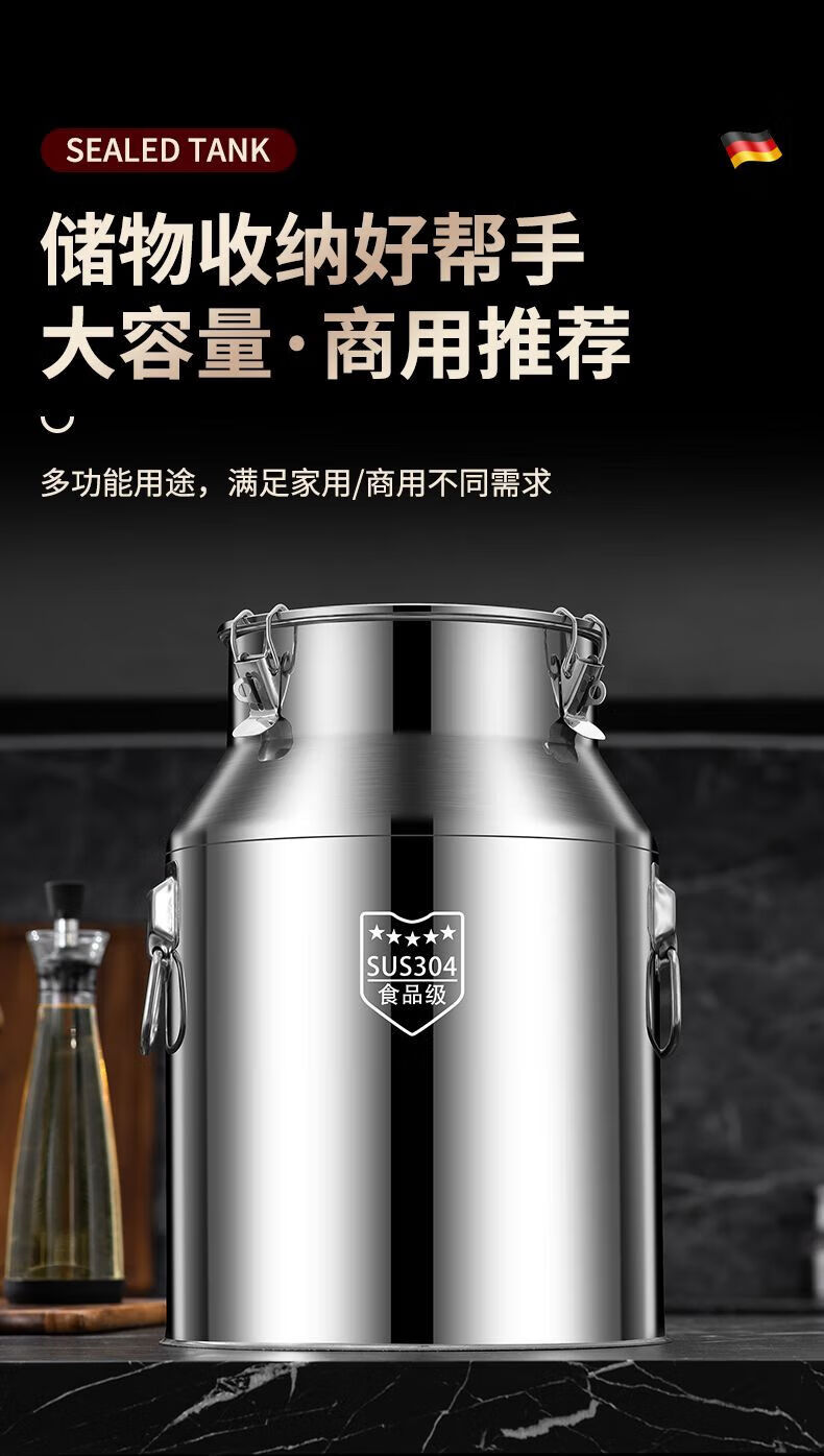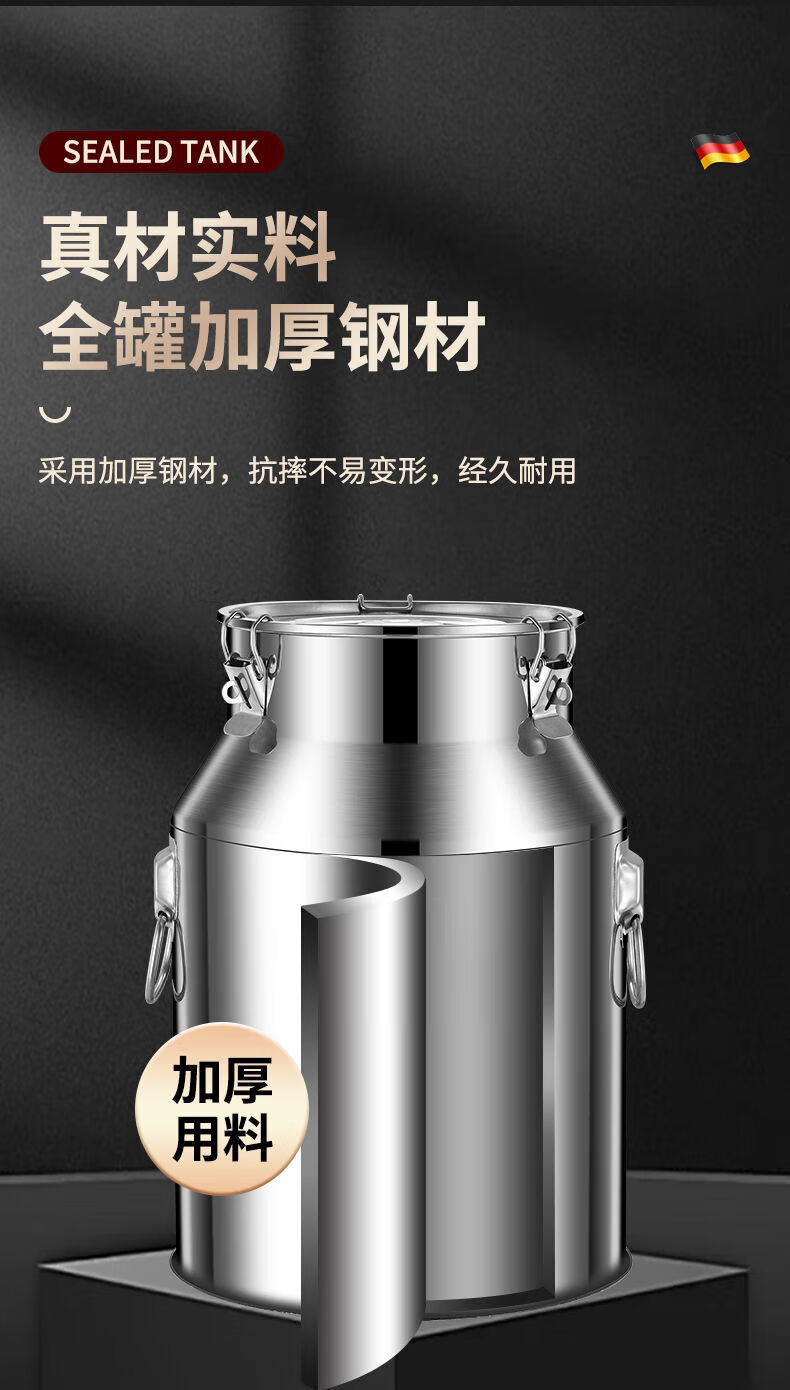 NAOISKEY 316 stainless steel oil barrel wine barrel extra thick sealed barrel milk transport barrel tea can 304 edible oil storage barrel SUS-304 extra thick sealed barrel 28L unsealed return package