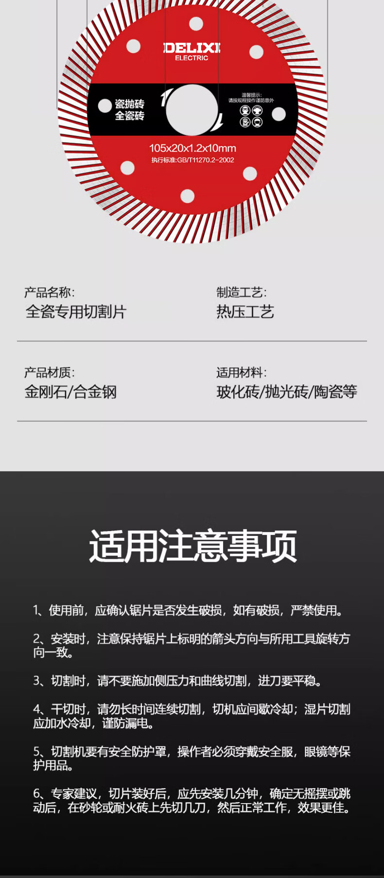 Delixi ceramic tile ceramic saw blade diamond cutting disc angle grinder high strength alloy steel plate cutting disc Delixi battery/cutting disc compensation