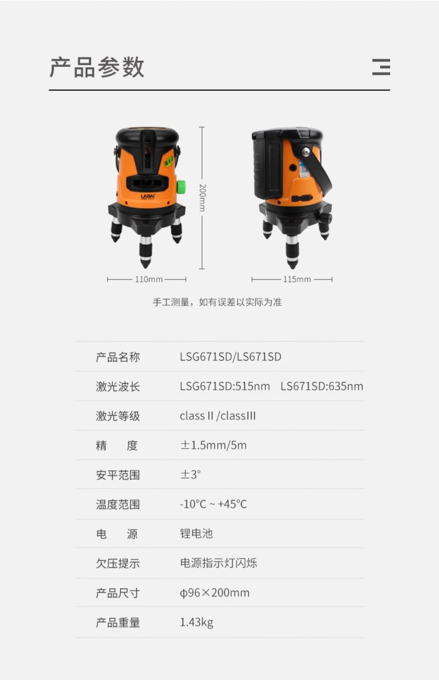 LAISAI laser level meter LSG671SD automatic line marking infrared 2-line marking meter laser green light 2-line thin line green light LSG671SD standard