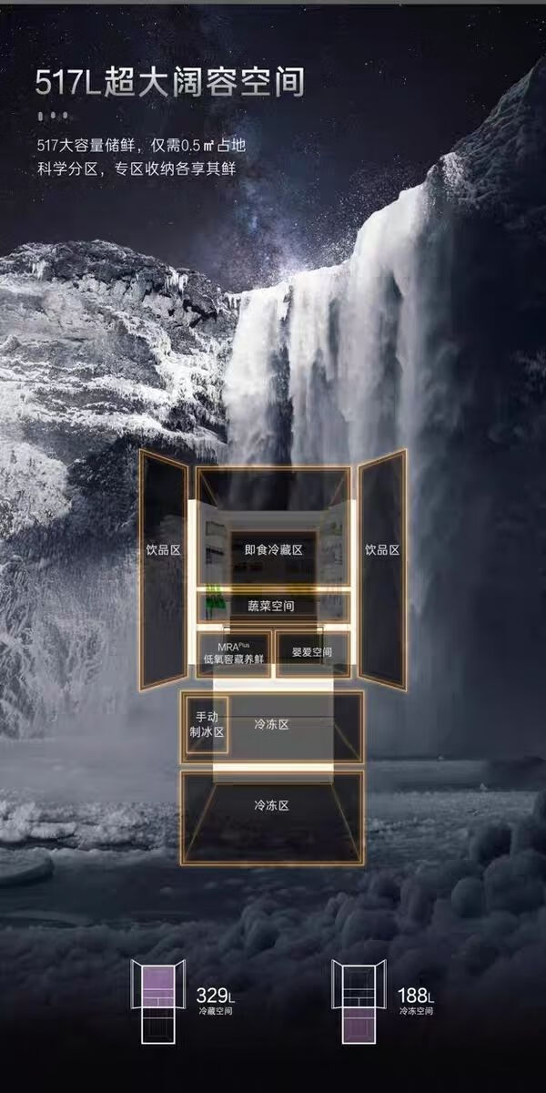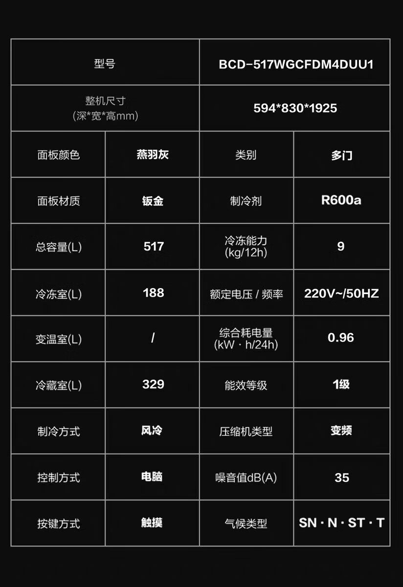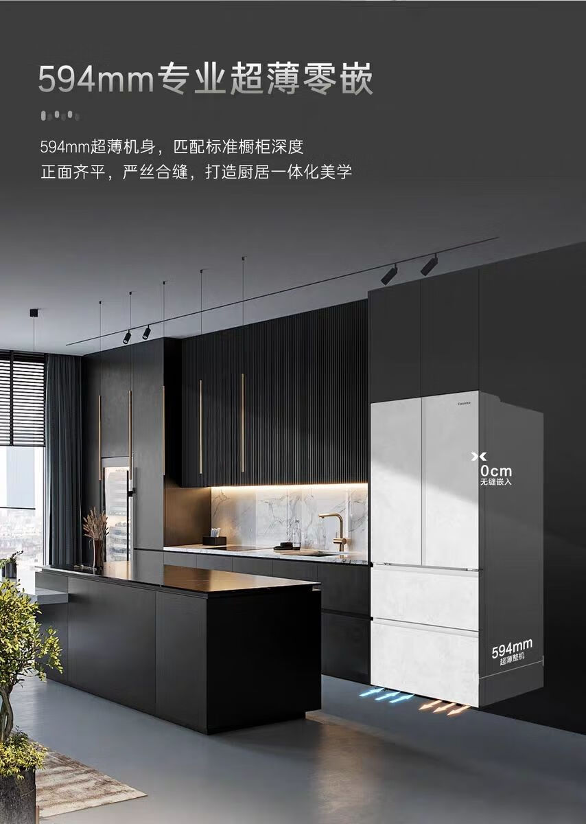 Casarte 517L ultra-thin zero-embedded first-class energy-efficiency variable frequency French multi-door automatic ice-making air-cooled frost-free household refrigerator refrigerator 517 liters BCD-517WGCFDM4DUU1