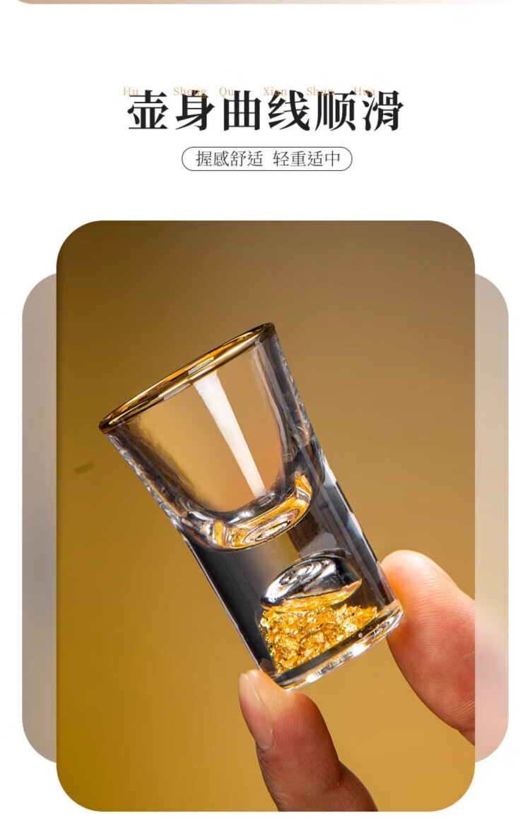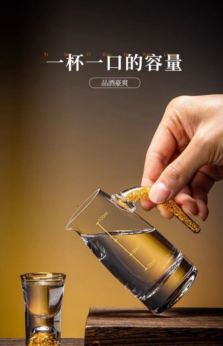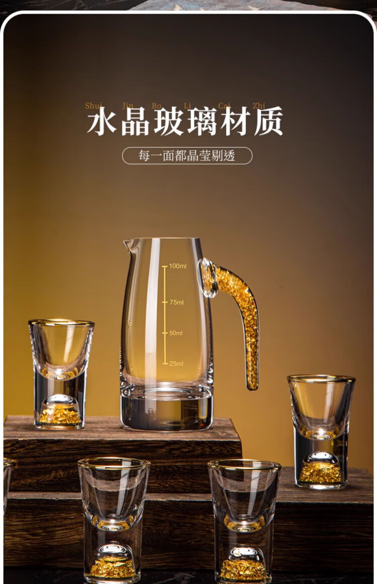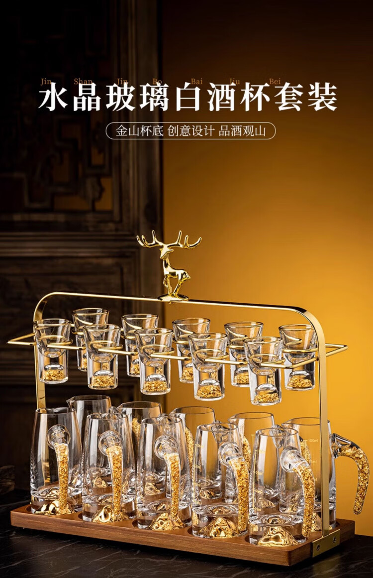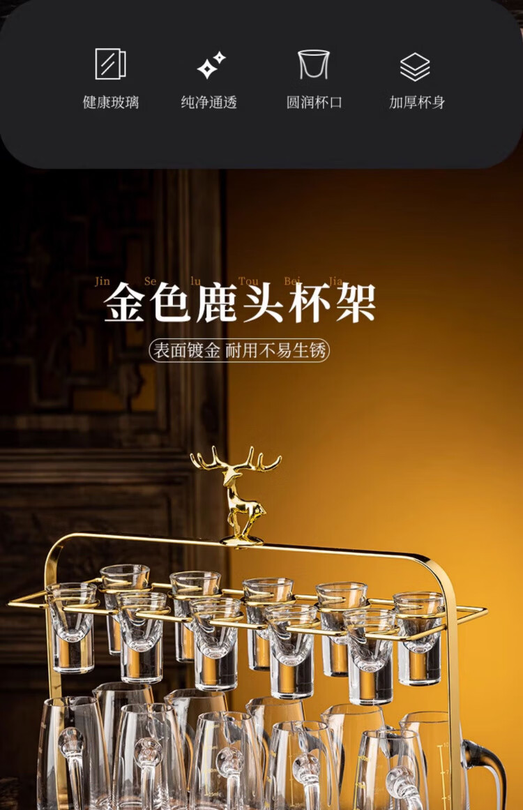WCZ German high-end light luxury crystal glass white wine cup set for home use Chinese-style small cup 2 ounces wine glass transparent handleless 6 pots 6 cups + golden deer cup holder