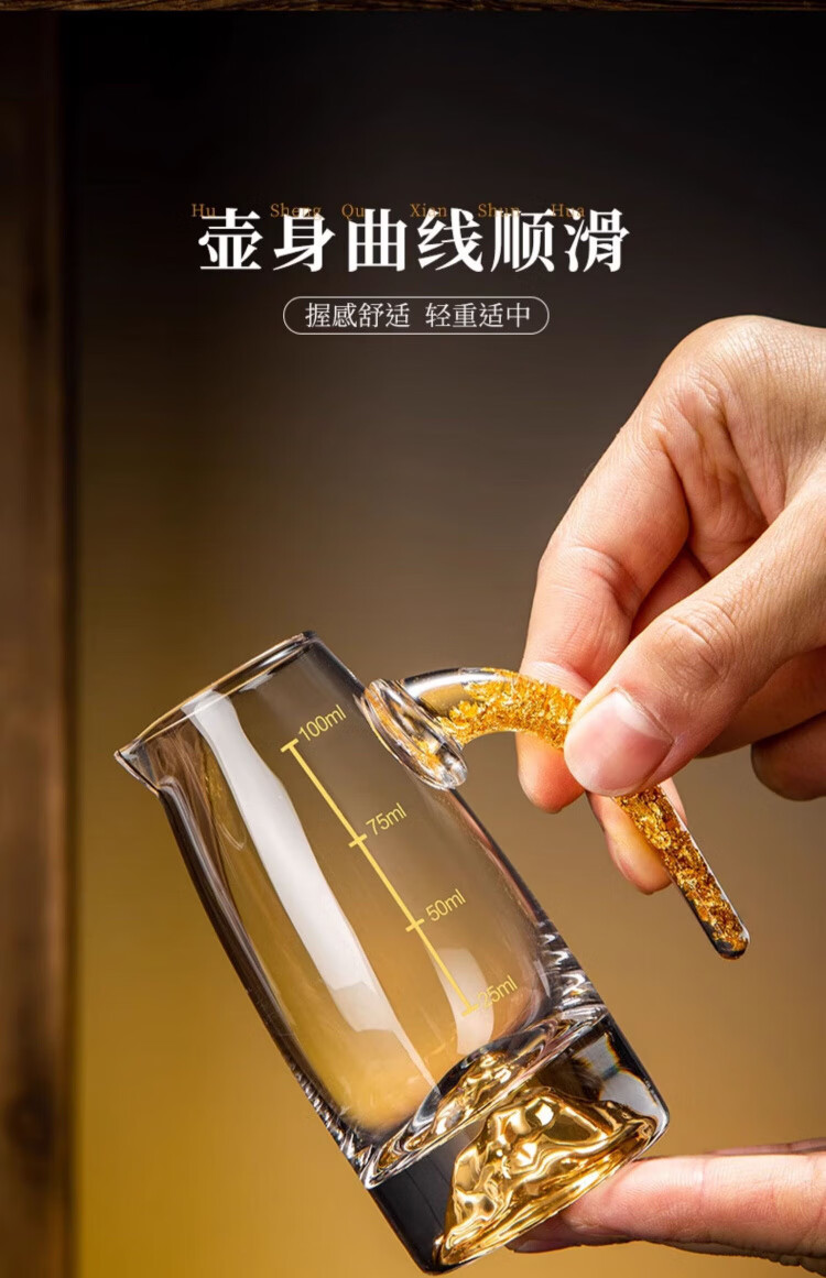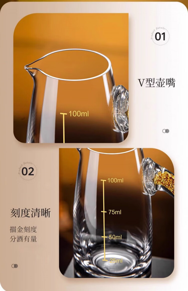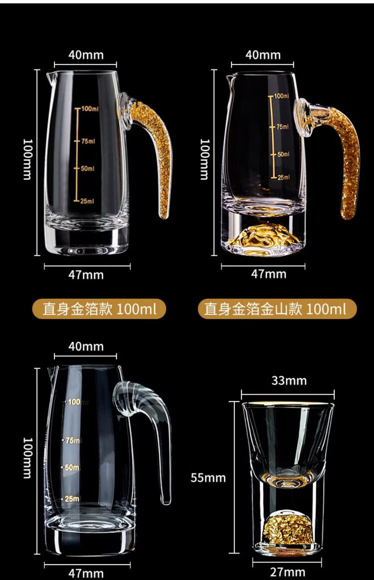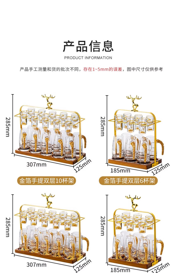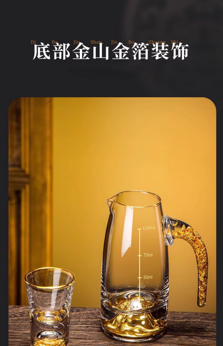 WCZ German high-end light luxury crystal glass white wine cup set for home use Chinese-style small cup 2 ounces wine glass transparent handleless 6 pots 6 cups + golden deer cup holder