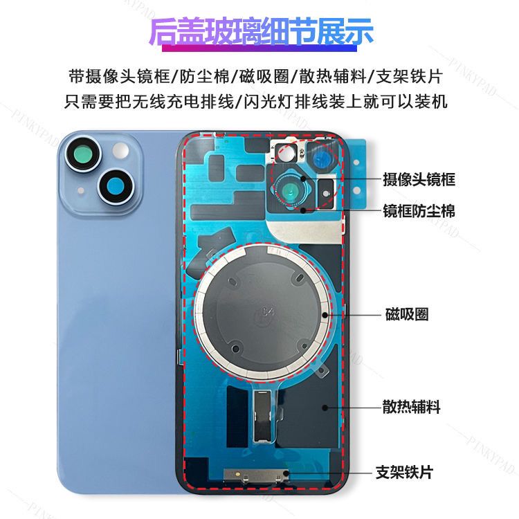 Suitable for Apple iPhone 15 all series 15plus glass back cover assembly 15Pro/15promax back cover repair 15pro glass back cover assembly (with label) original color (send tools + glue)