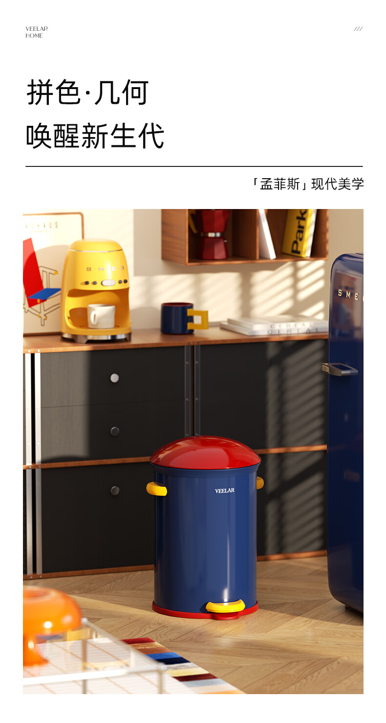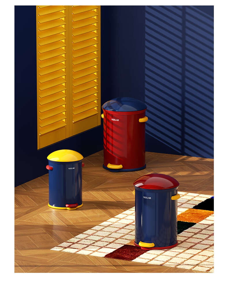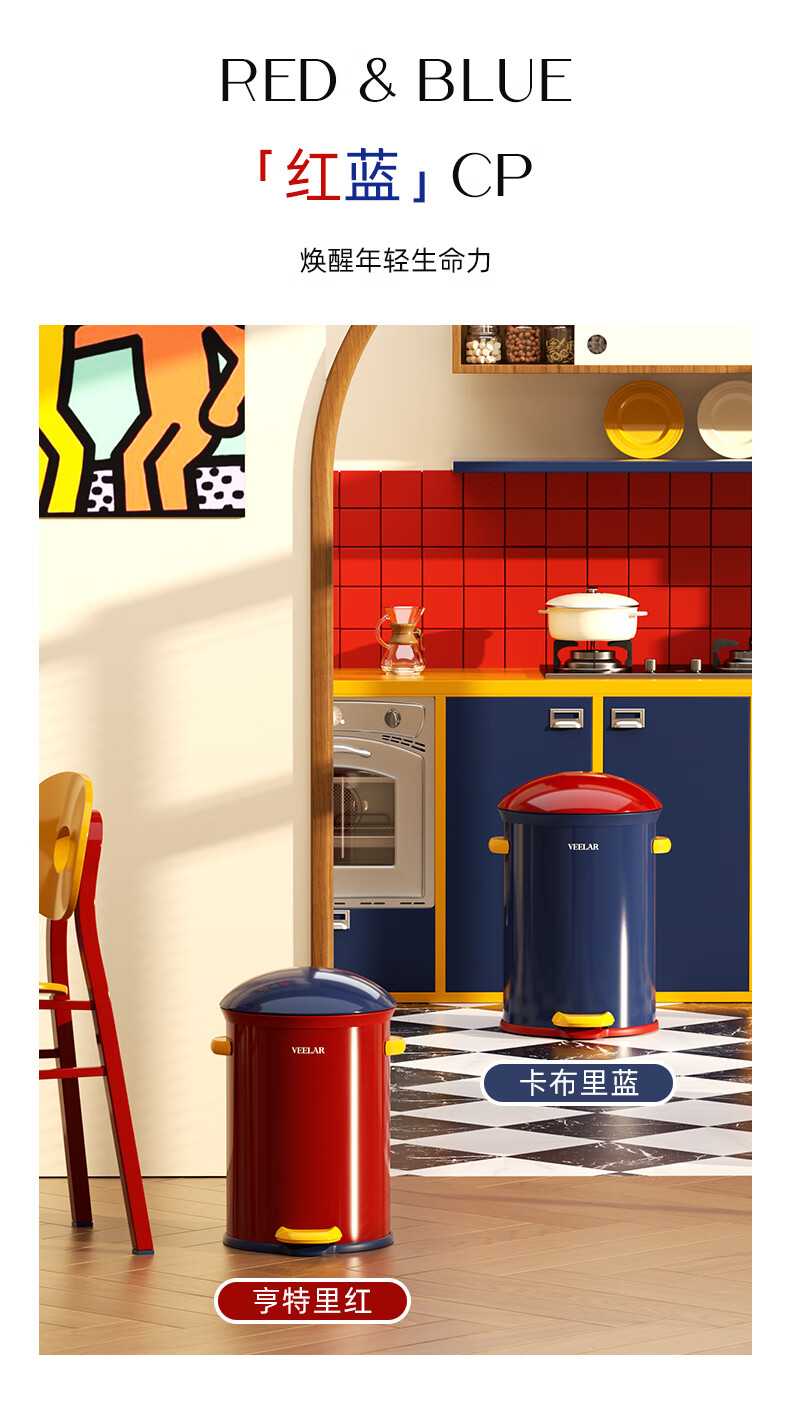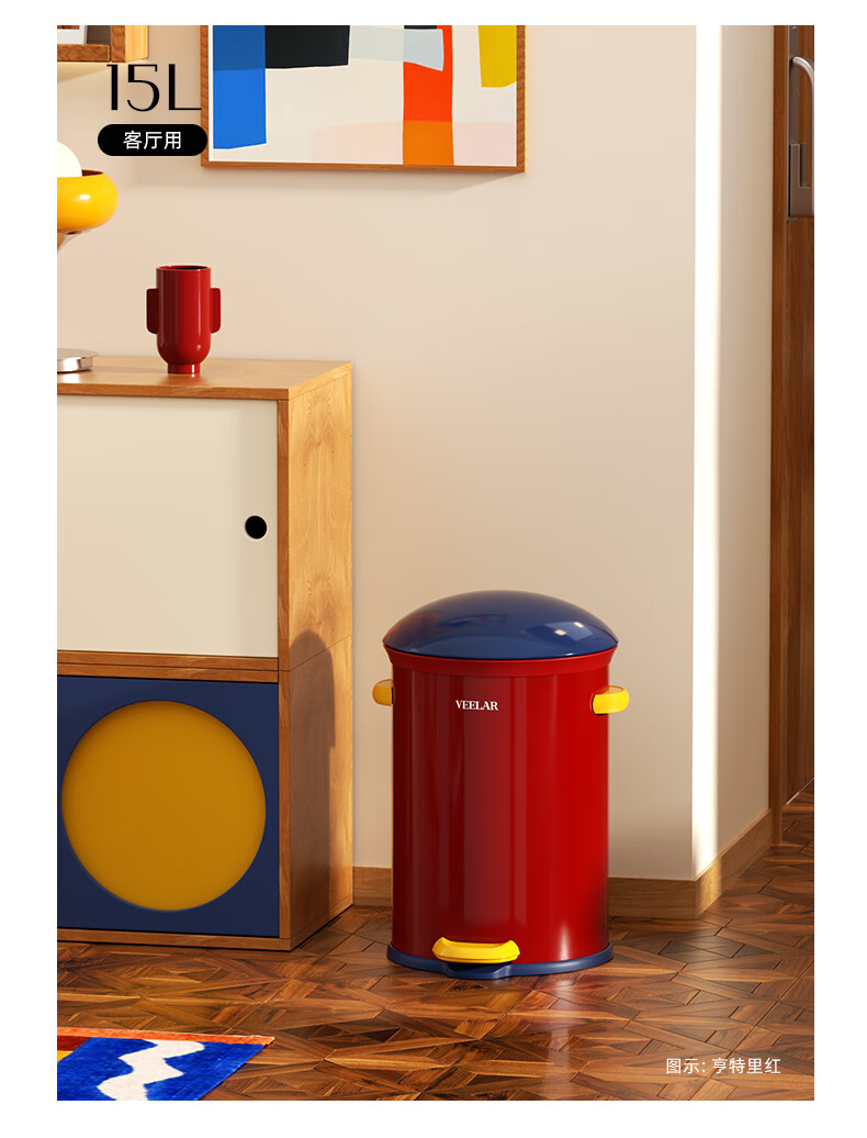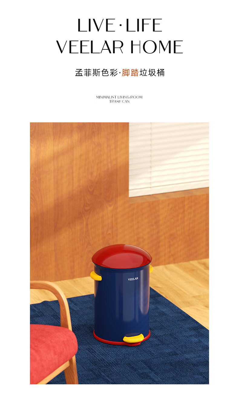 VEELAR Creative Trash Can for Living Room and Household Internet Celebrity 2025 New Dopamine Kitchen and Bathroom High-Looking Pedal with Cover 8L-Capri Blue (Red Cover)