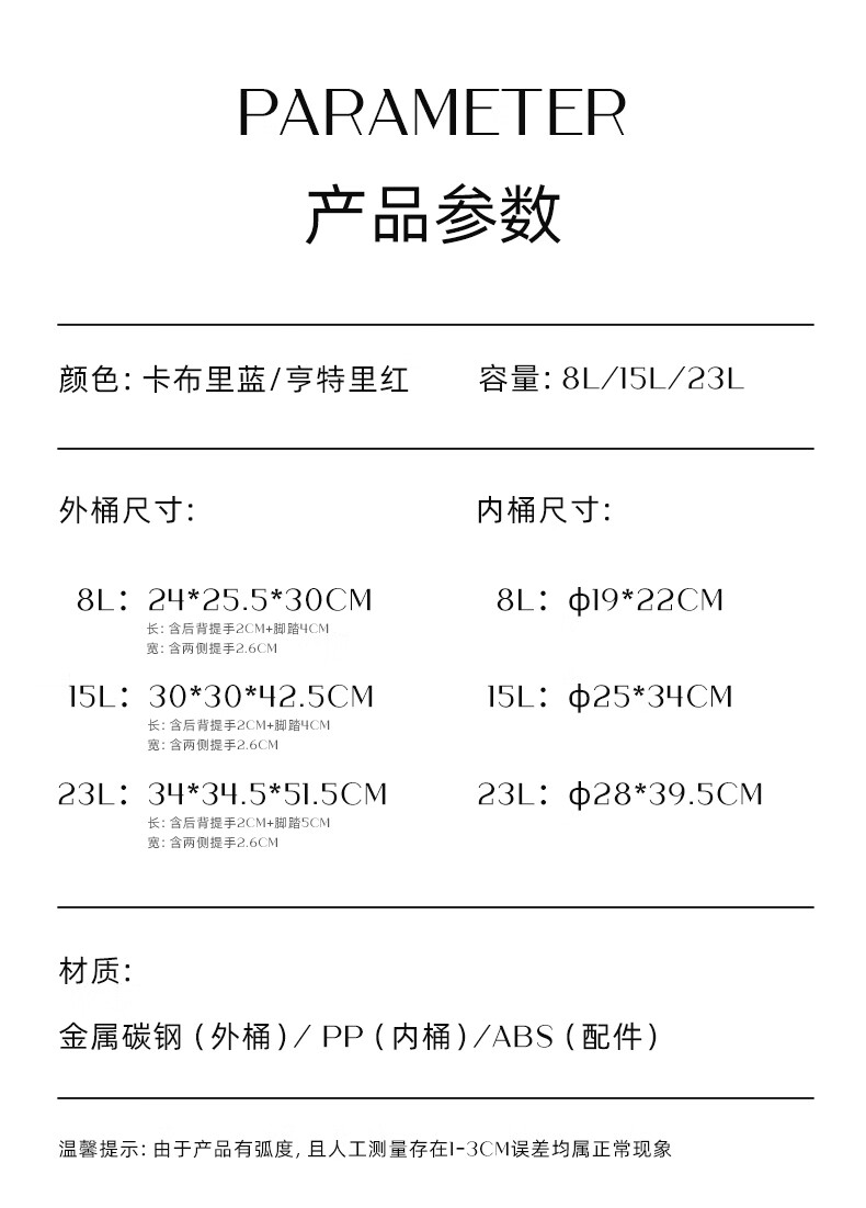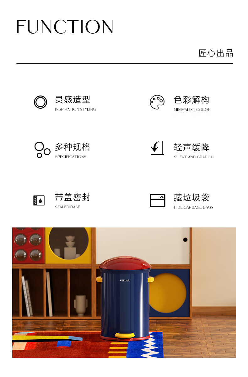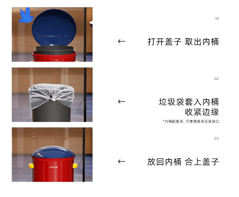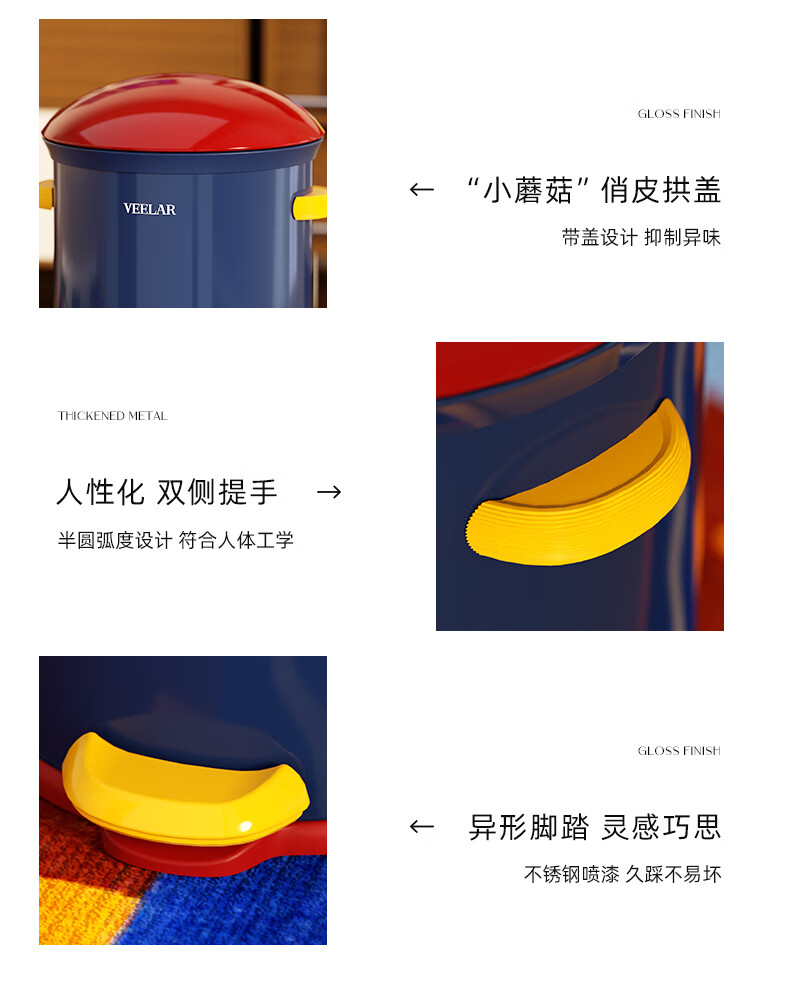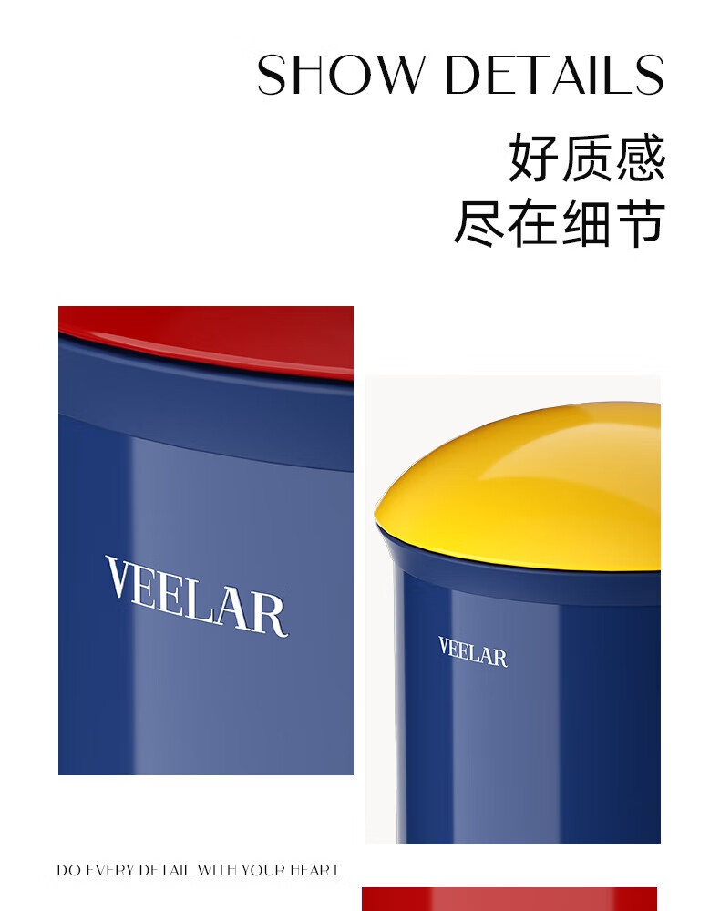 VEELAR Creative Trash Can for Living Room and Household Internet Celebrity 2025 New Dopamine Kitchen and Bathroom High-Looking Pedal with Cover 8L-Capri Blue (Red Cover)